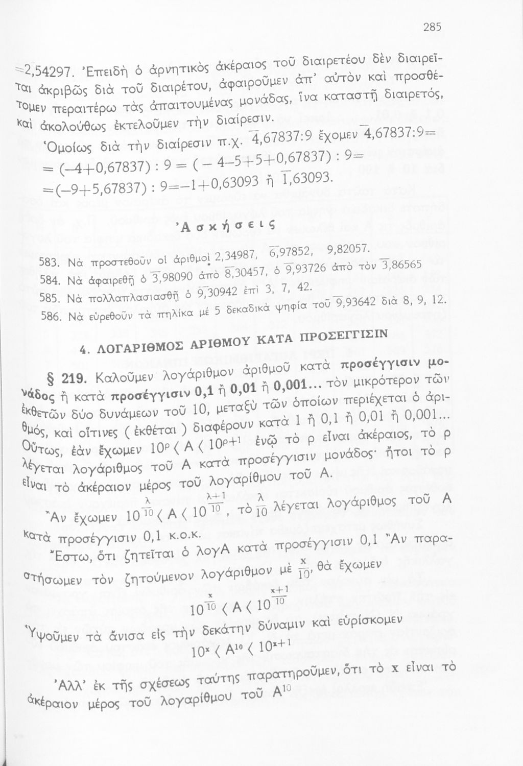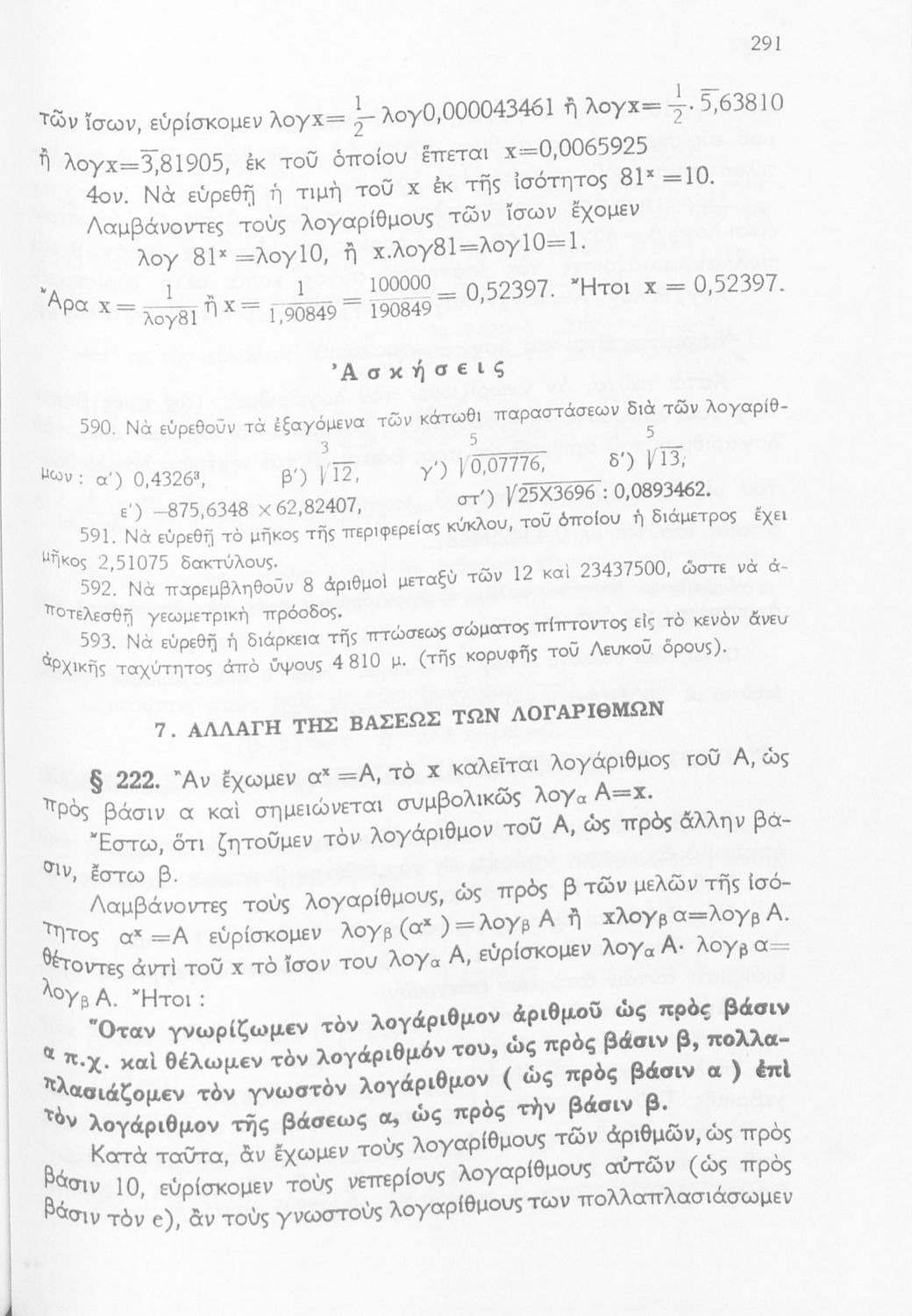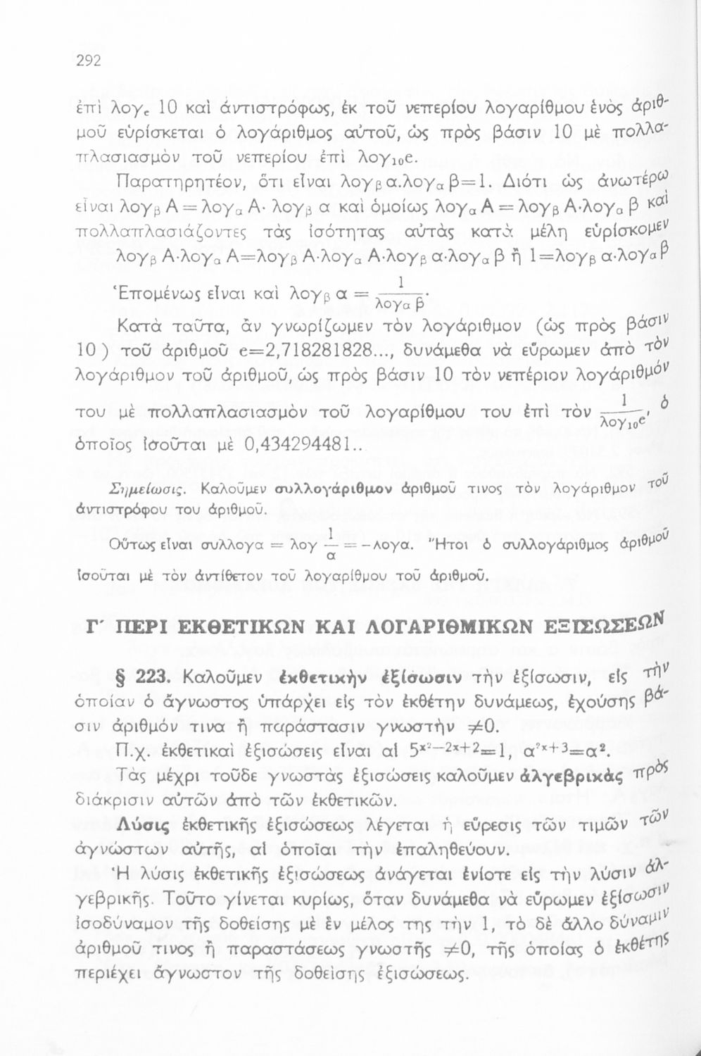 Άλγεβρα Δ΄ Γυμνασίου   [1969, 11η Έκδοση]