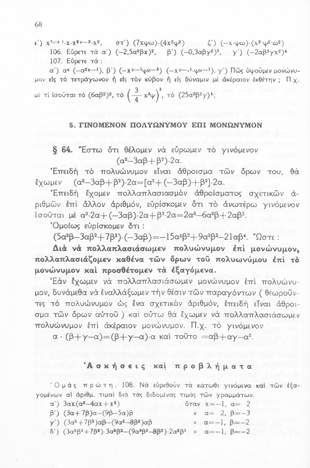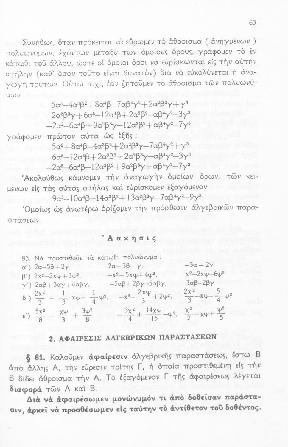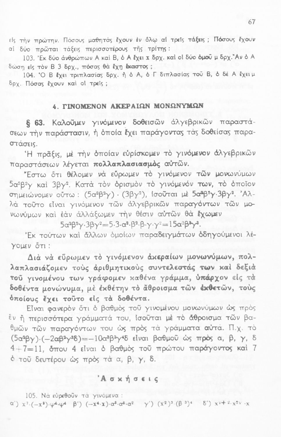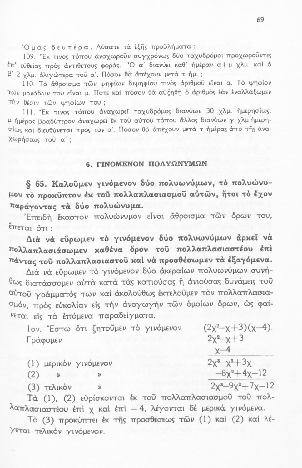 Άλγεβρα Δ΄ Γυμνασίου   [1969, 11η Έκδοση]