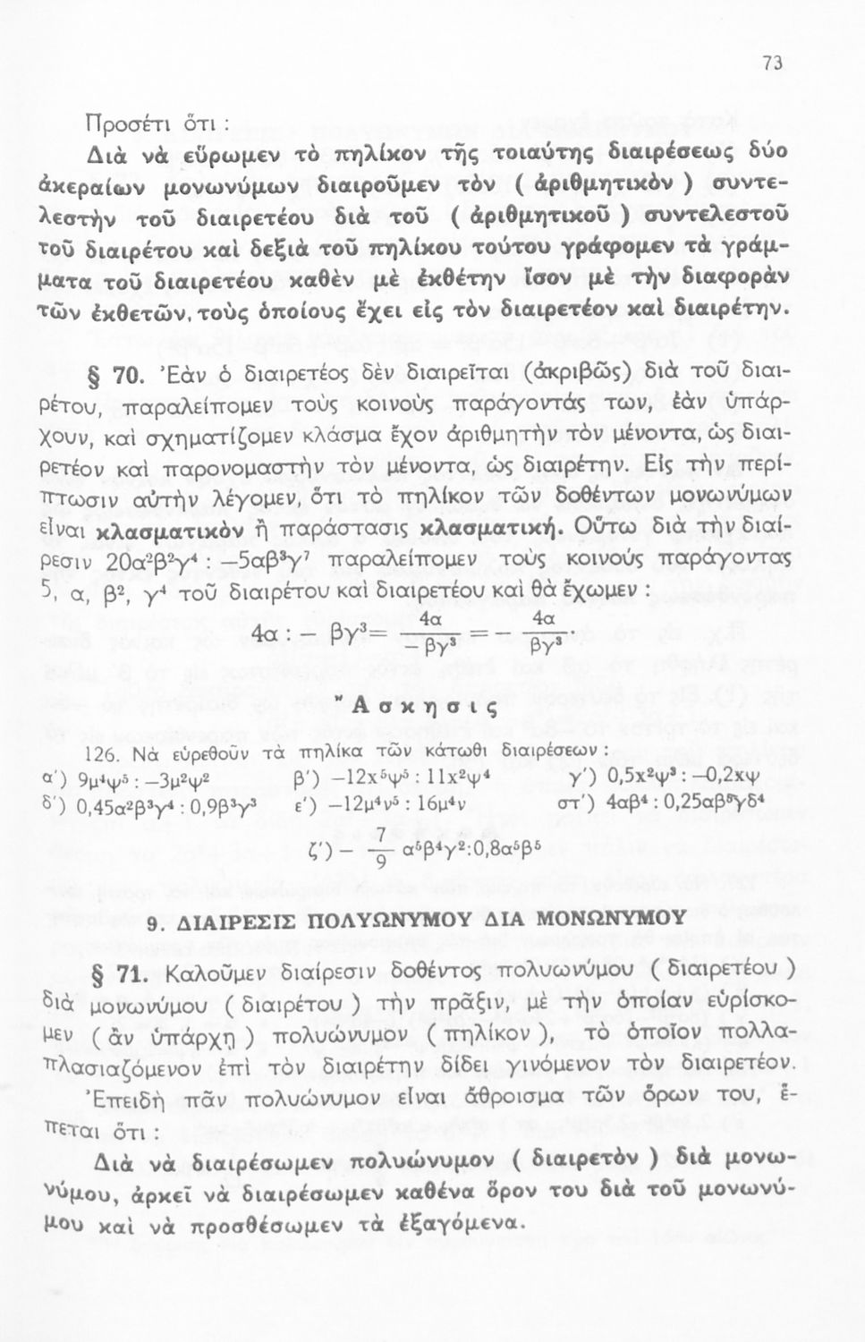 Άλγεβρα Δ΄ Γυμνασίου   [1970, 12η Έκδοση]