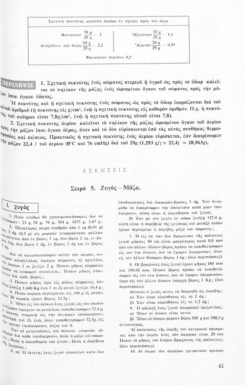 Το σύγγραμμα ήταν σχολικό εγχειρίδιο για το μάθημα της Φυσικής στο Γυμνάσιο. Αναλύει τις ιδιότητες των σωμάτων, τις δυνάμεις, τη μάζα, την πίεση, τη θερμότητα και τις μεταβολές των σωμάτων τήξη, πήξη, ...