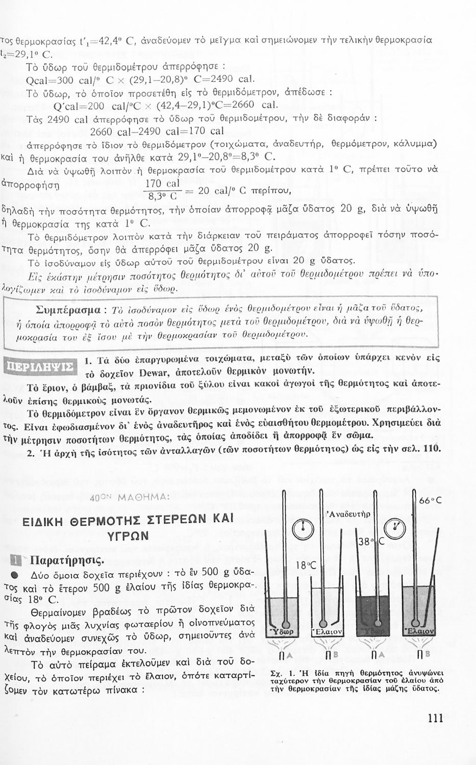 Το σύγγραμμα ήταν σχολικό εγχειρίδιο για το μάθημα της Φυσικής στο Γυμνάσιο. Αναλύει τις ιδιότητες των σωμάτων, τις δυνάμεις, τη μάζα, την πίεση, τη θερμότητα και τις μεταβολές των σωμάτων τήξη, πήξη, ...
