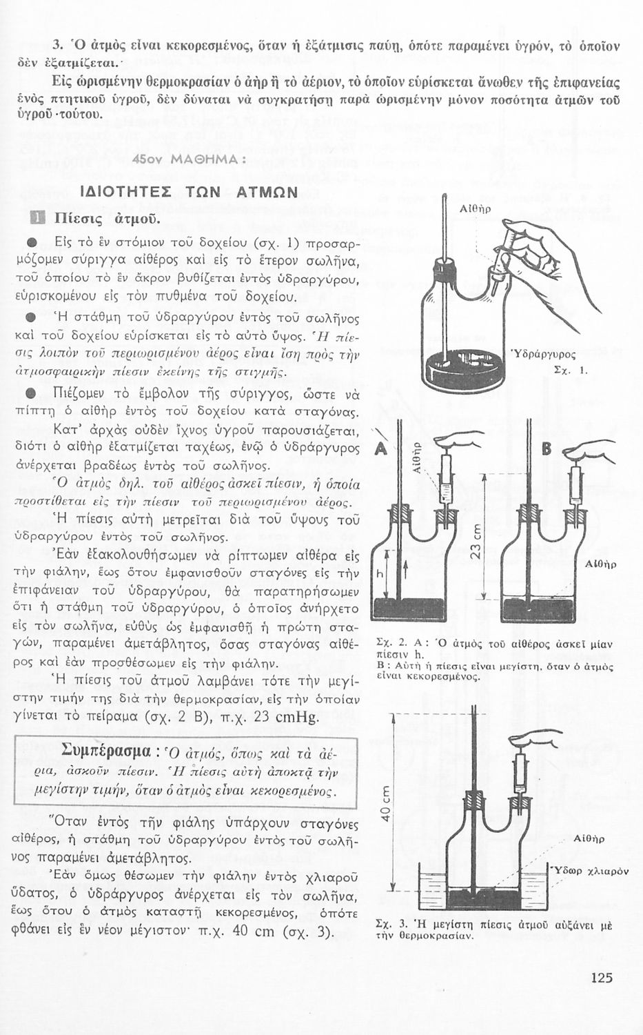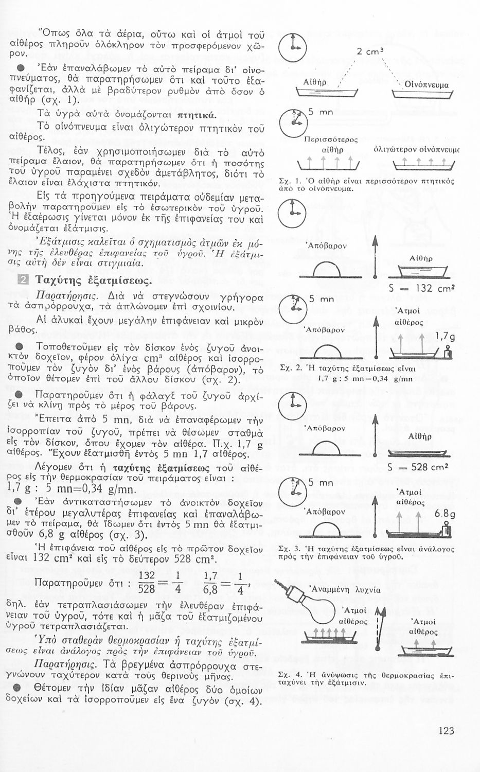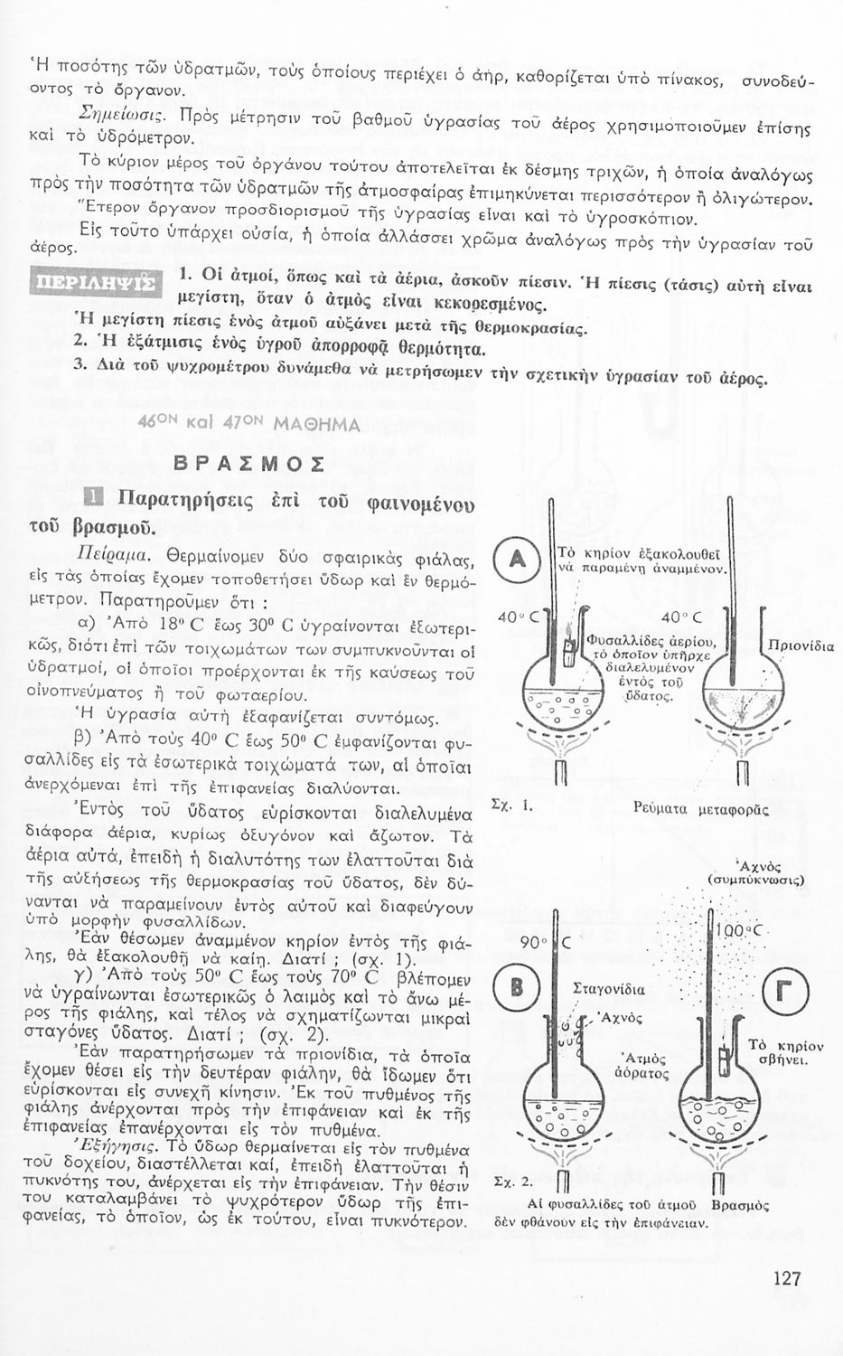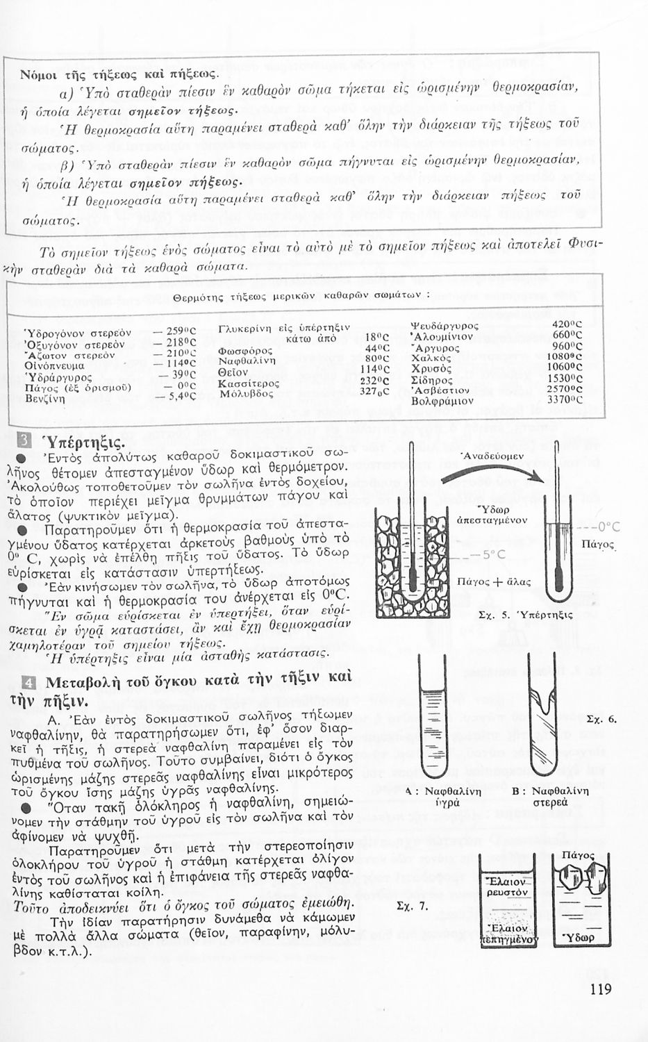 Το σύγγραμμα ήταν σχολικό εγχειρίδιο για το μάθημα της Φυσικής στο Γυμνάσιο. Αναλύει τις ιδιότητες των σωμάτων, τις δυνάμεις, τη μάζα, την πίεση, τη θερμότητα και τις μεταβολές των σωμάτων τήξη, πήξη, ...