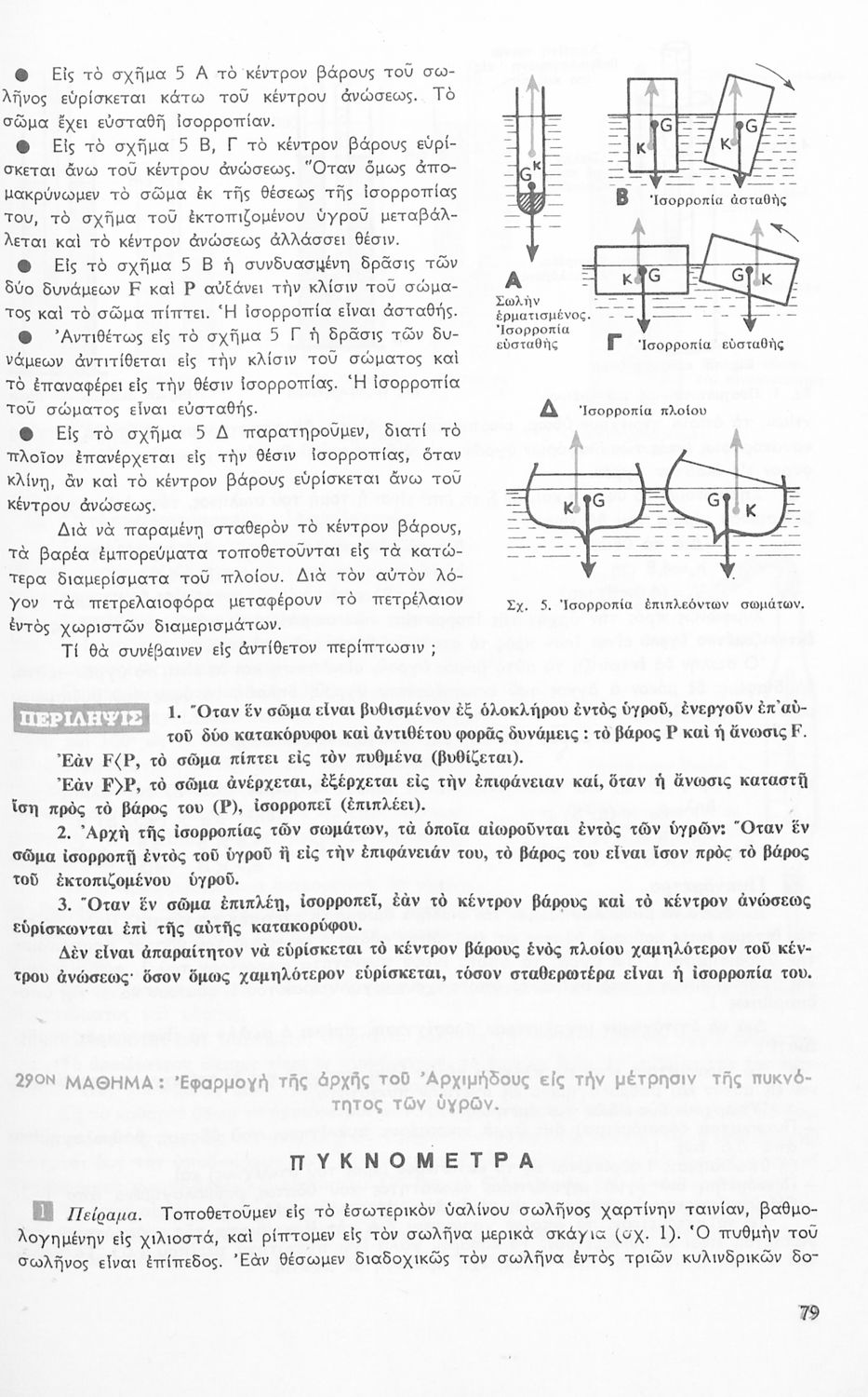 Το σύγγραμμα ήταν σχολικό εγχειρίδιο για το μάθημα της Φυσικής στο Γυμνάσιο. Αναλύει τις ιδιότητες των σωμάτων, τις δυνάμεις, τη μάζα, την πίεση, τη θερμότητα και τις μεταβολές των σωμάτων τήξη, πήξη, εξάτμιση. Κάθε κεφάλαιο περιέχει τη θεωρεία και τις ασκήσεις. Το βιβλίο περιέχει σκίτσα και σχεδιαγράμματα, τα οποία διευκολύνουν τη διδασκαλία και εξυπηρετούν στην καλύτερη κατανόηση της φυσικής επιστήμης.