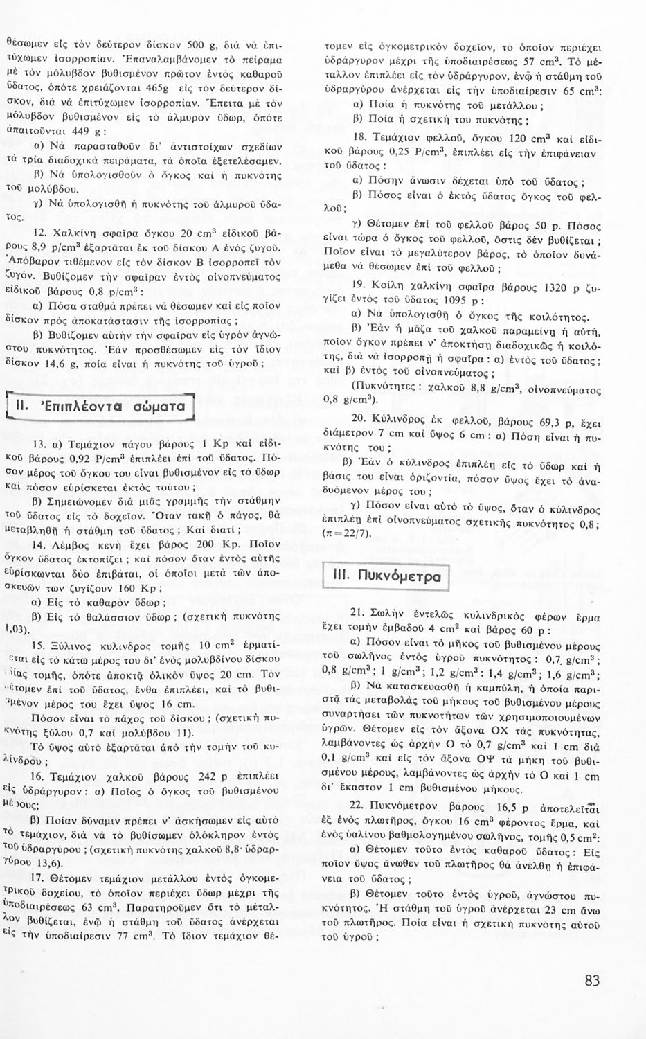 Βαθμίδα εκπαίδευσης: Δευτεροβάθμια Τάξη: Β' Γυμνασίου Μάθημα: Φυσική Γλώσσα: Απλή καθαρεύουσα Παρουσίαση περιεχομένου: Το σύγγραμμα ήταν σχολικό εγχειρίδιο για το μάθημα της Φυσικής στο Γυμνάσιο. Αναλύει τις ιδιότητες των σωμάτων, τις δυνάμεις, τη μάζα, την πίεση, τη θερμότητα και τις μεταβολές των σωμάτων τήξη, πήξη, εξάτμιση. Κάθε κεφάλαιο περιέχει τη θεωρεία και τις ασκήσεις. Το βιβλίο περιέχει σκίτσα και σχεδιαγράμματα, τα οποία διευκολύνουν τη διδασκαλία και εξυπηρετούν στην καλύτερη κατανόηση της φυσικής επιστήμης. |
