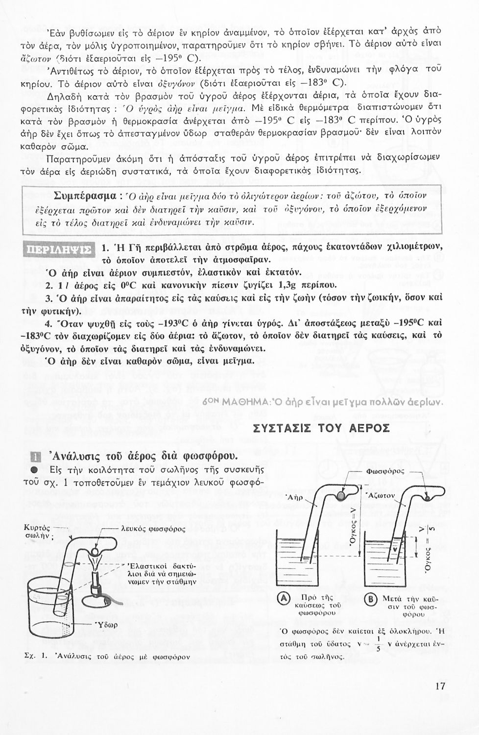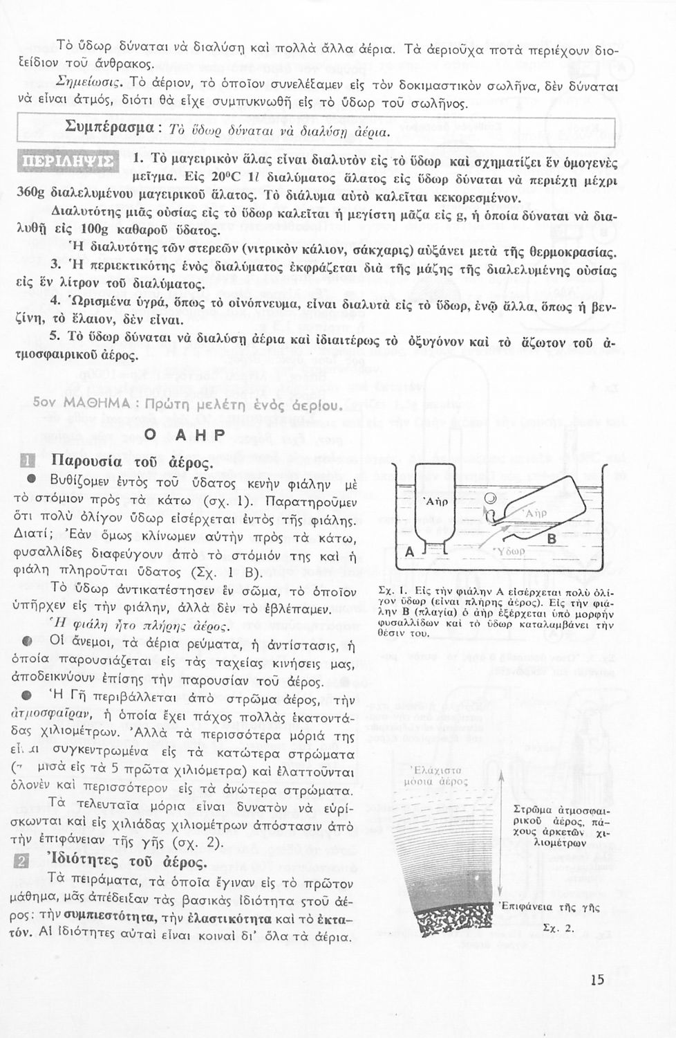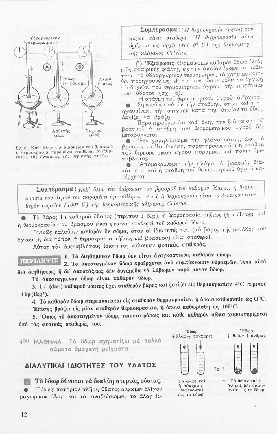 Το σύγγραμμα ήταν σχολικό εγχειρίδιο για το μάθημα της Φυσικής στο Γυμνάσιο. Αναλύει τις ιδιότητες των σωμάτων, τις δυνάμεις, τη μάζα, την πίεση, τη θερμότητα και τις μεταβολές των σωμάτων τήξη, πήξη, εξάτμιση. Κάθε κεφάλαιο περιέχει τη θεωρεία και τις ασκήσεις. Το βιβλίο περιέχει σκίτσα και σχεδιαγράμματα, τα οποία διευκολύνουν τη διδασκαλία και εξυπηρετούν στην καλύτερη κατανόηση της φυσικής επιστήμης.