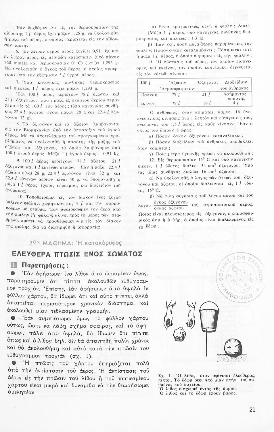 LDR 01709 2200229 4500 035 ## _a03-20557597 040 ## _aΒιβλιοθήκη της Βουλής των Ελλήνων 041 ## _ael 100 ## _aΑ. Godier _aC. Thomas _aM. Moreau _aΓ. Ανδρεάδης (μετάφραση) 110 ## _a20557597 245 0# _aΦυσική Β' Γυμνασίου. 250 ## _a4η Έκδοση 260 ## _aΑθήνα _bΟργανισμός Εκδόσεως Διδακτικών Βιβλίων _c1970 300 ## _a136 _bΕικόνες, σκίτσα και σχεδιαγράμματα (έγχρωμα) 520 ## _aΤο σύγγραμμα ήταν σχολικό εγχειρίδιο για το μάθημα της Φυσικής στο Γυμνάσιο. Αναλύει τις ιδιότητες των σωμάτων, τις δυνάμεις, τη μάζα, την πίεση, τη θερμότητα και τις μεταβολές των σωμάτων τήξη, πήξη, εξάτμιση. Κάθε κεφάλαιο περιέχει τη θεωρεία και τις ασκήσεις. Το βιβλίο περιέχει σκίτσα και σχεδιαγράμματα, τα οποία διευκολύνουν τη διδασκαλία και εξυπηρετούν στην καλύτερη κατανόηση της φυσικής επιστήμης. 521 ## _aΒ' Γυμνασίου 522 ## _aΕλλάδα 546 ## _aΑπλή καθαρεύουσα 563 ## _aΜαλακό Εξώφυλλο 583 ## _a2038/13-4-1970 _c1970 650 #4 _aΒαρόμετρο _aΔυνάμεις _aΜάζα _aΠίεση _aΣώματα _aΤήξη _aΦυσική 700 ## _aΡένα Π. Μάλαμα (εξώφυλλο)