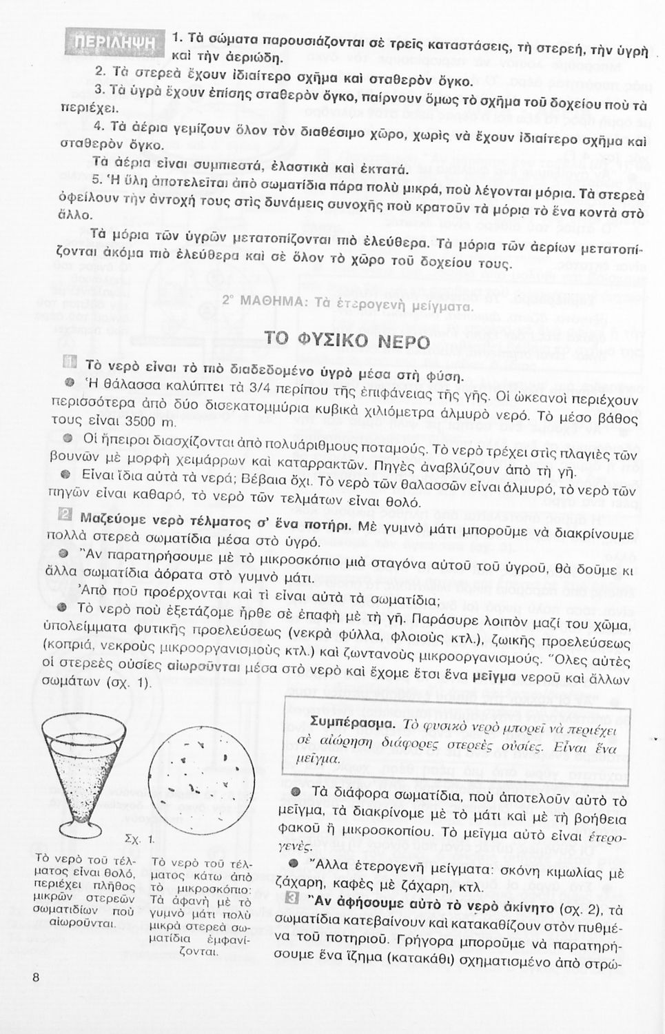 Παρουσίαση περιεχομένου: Σχολικό εγχειρίδιο Φυσικής για τους μαθητές της Β' Γυμνασίου. Το βιβλίο εξετάζει της διάφορες μεταβολές και καταστάσεις της ύλης, την έννοια της δύναμης, της πίεσης και της θερμοκρασίας και τις μεταβολές που αυτά επιφέρουν σε σχέση με την κατάσταση της ύλης.