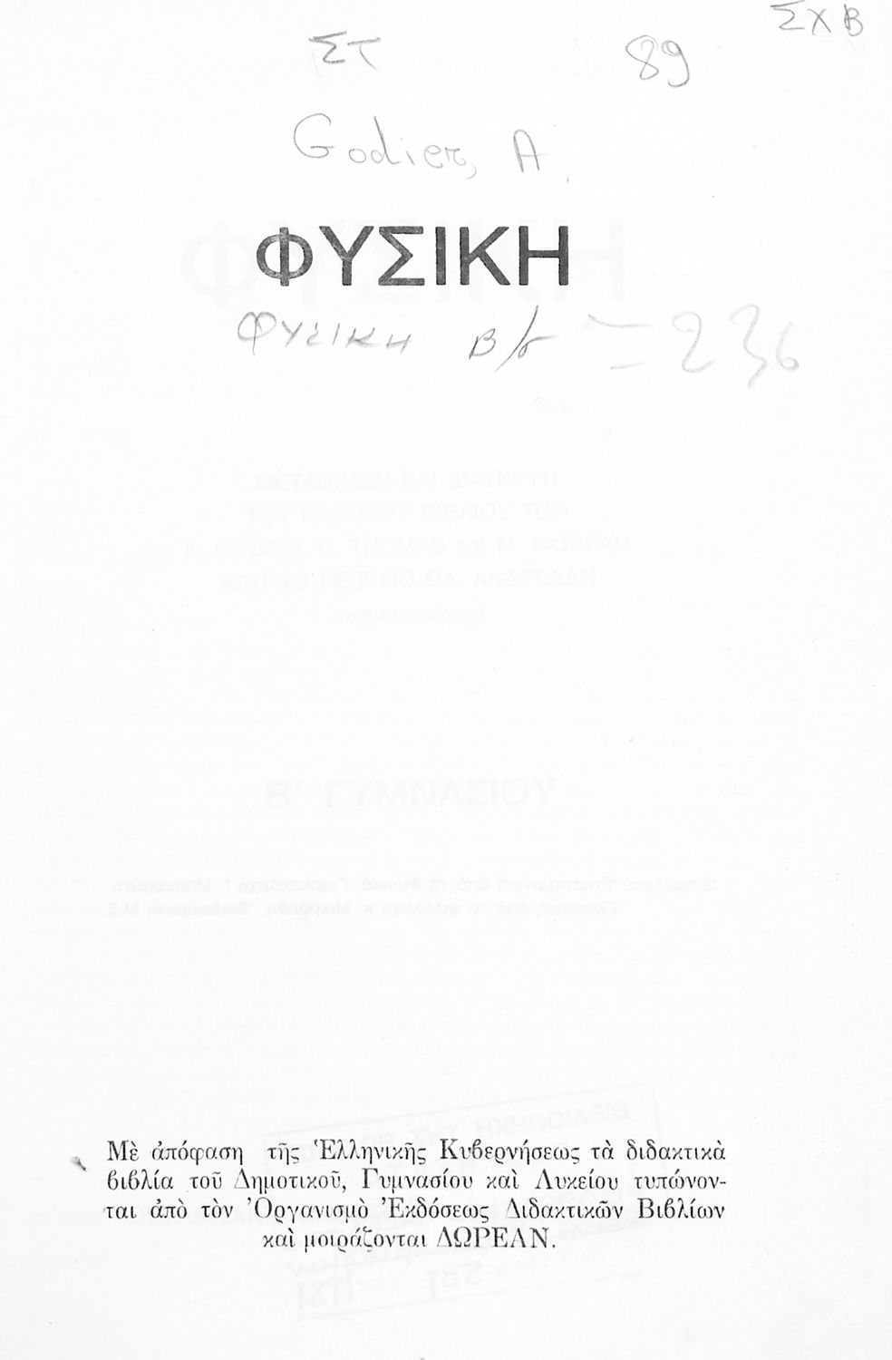 Φυσική Β΄ Γυμνασίου   [1976, 9η Έκδοση]