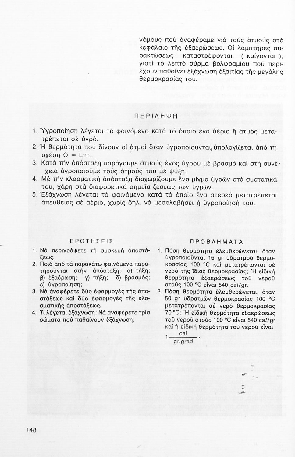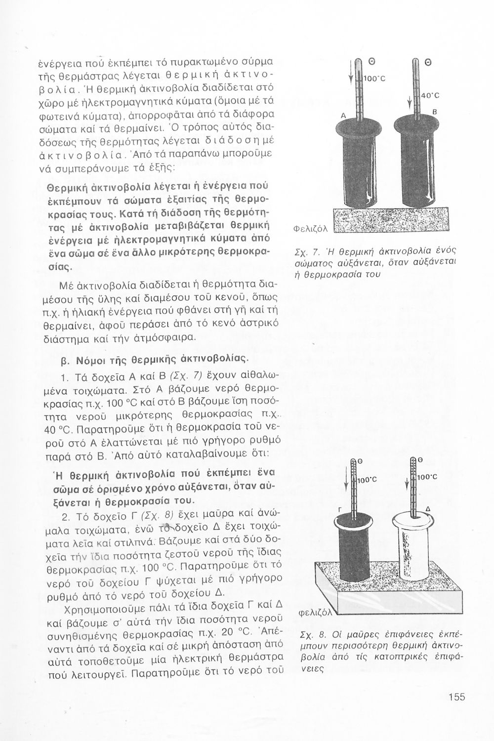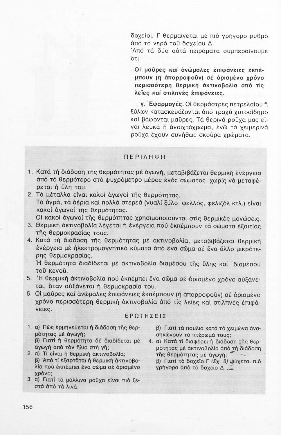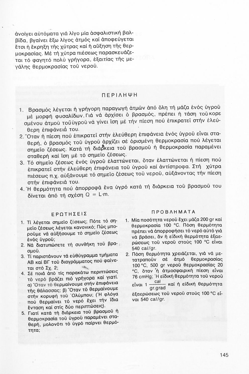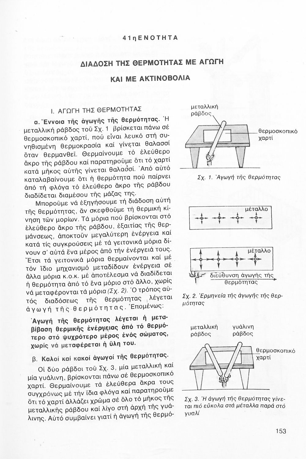 Σχολικό εγχειρίδιο της Β΄ Γυμνασίου για το μάθημα της Φυσικής. Αναφέρεται στα φυσικά φαινόμενα και το σύστημα μονάδων μέτρησης, συνεχίζει με τη μηχανική των στερεών, τις κινήσεις, το έργο, την ισχύς. Μετά αναλύεται η μηχανική στα ρευστά σώματα. Τέλος περιγράφονται τα φαινόμενα της θερμότητας και της οπτικής.