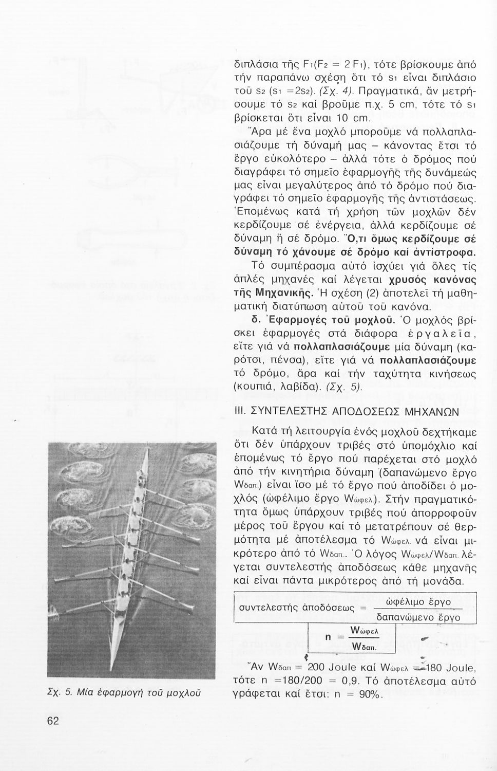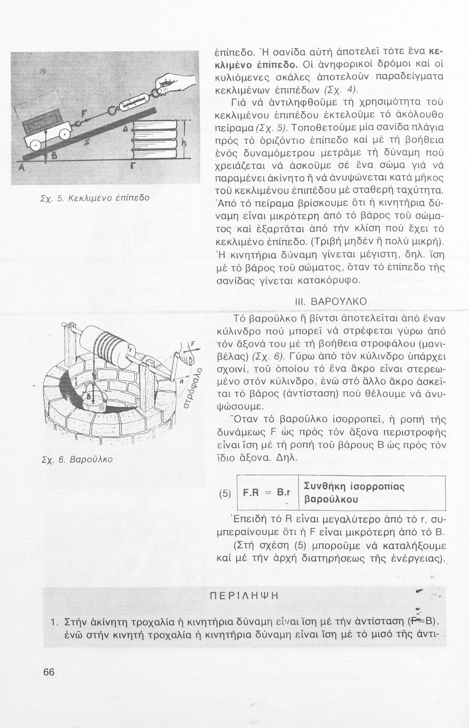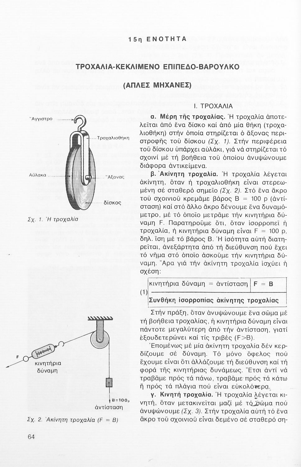 Σχολικό εγχειρίδιο της Β΄ Γυμνασίου για το μάθημα της Φυσικής. Αναφέρεται στα φυσικά φαινόμενα και το σύστημα μονάδων μέτρησης, συνεχίζει με τη μηχανική των στερεών, τις κινήσεις, το έργο, την ισχύς. Μετά αναλύεται η μηχανική στα ρευστά σώματα. Τέλος περιγράφονται τα φαινόμενα της θερμότητας και της οπτικής.