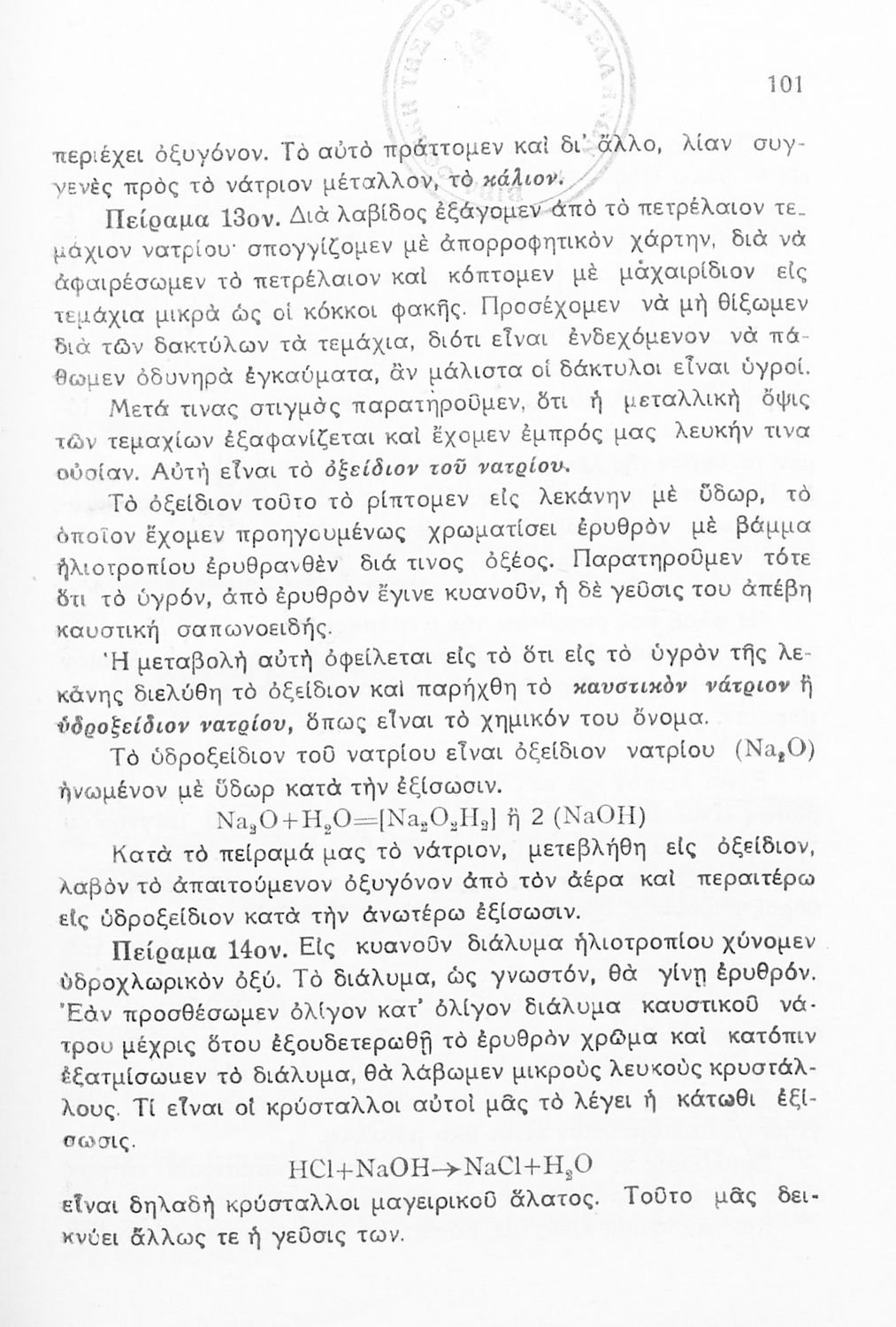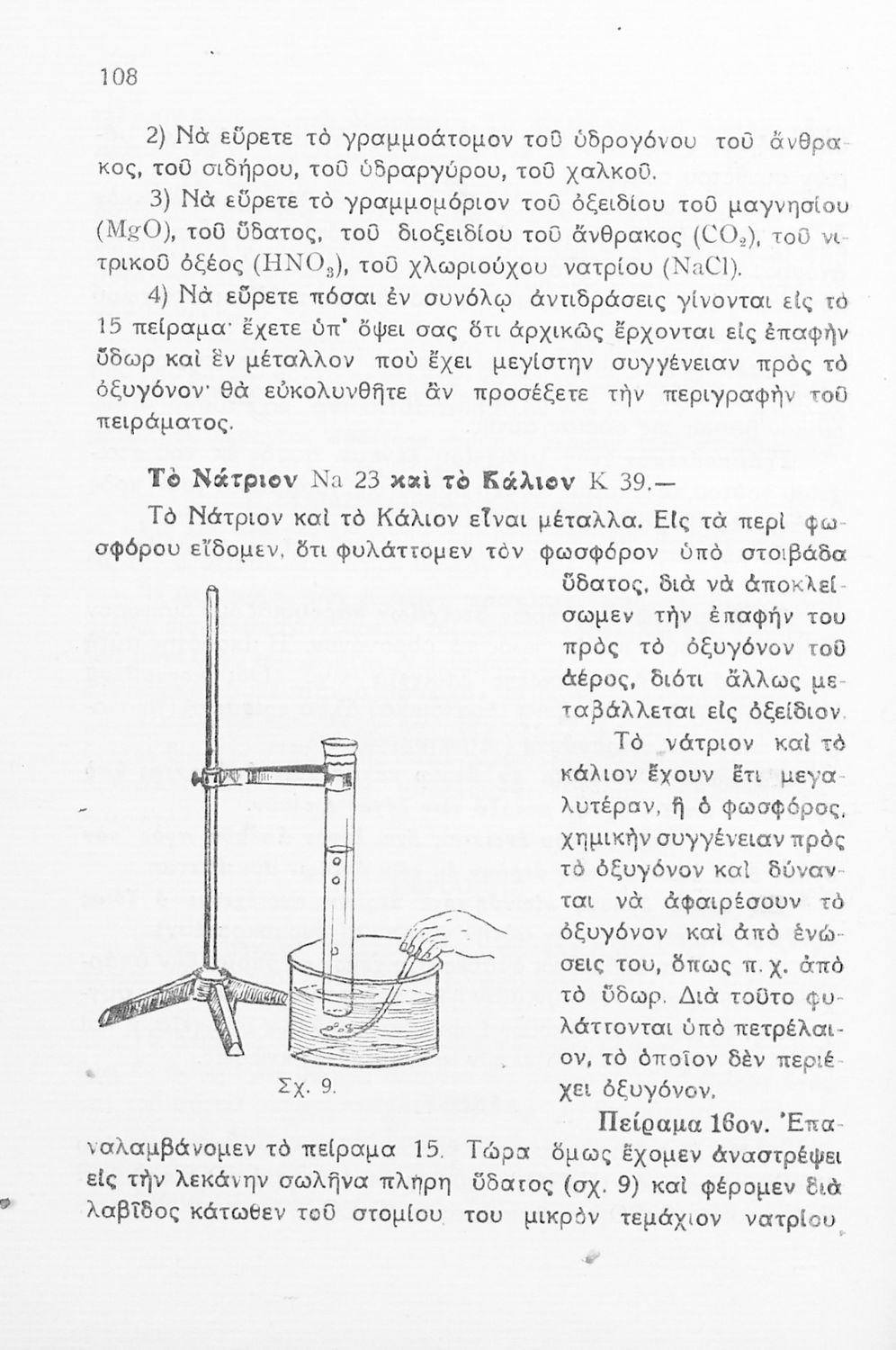 Σχολικό Εγχειρίδιο Φυσικής και Χημείας της Β' Τάξης Αστικών Σχολείων. Το βιβλίο είναι μια εισαγωγή στη φυσική και τη χημεία. Είναι χωρισμένο σε δύο μέρη. Στο πρώτο μέρος, παρουσιάζονται στοιχεία αεροστατικής, οπτικής και ακουστικής. Το δεύτερο μέρος, αφορά τη χημεία και εξετάζει τις ιδιότητες και τα χαρακτηριστικά των μετάλλων. Τέλος, το βιβλίο κάνει αναφορά στα άτομα και μόρια και στους νόμους των χημικών αντιδράσεων.