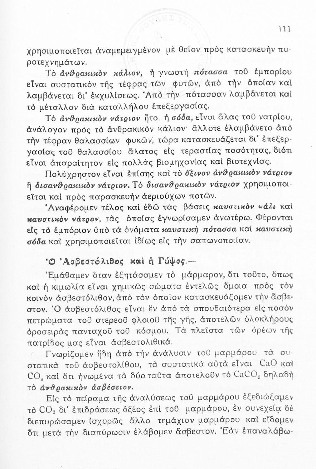Το σύγγραμμα ήταν σχολικό εγχειρίδιο για το μάθημα της Φυσικής στο Γυμνάσιο . Παρέχει βασικές γνώσεις της φυσικής επιστήμης και της χημείας. Αναλύει τις ιδιότητες των σωμάτων, καθώς και της θερμότητας, του ...