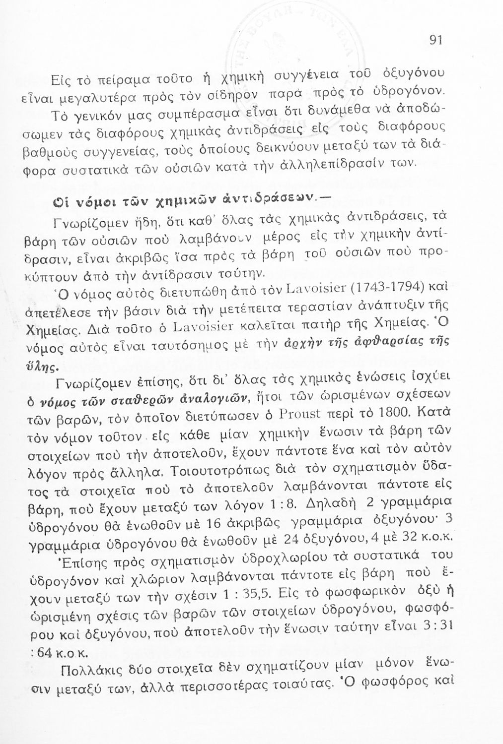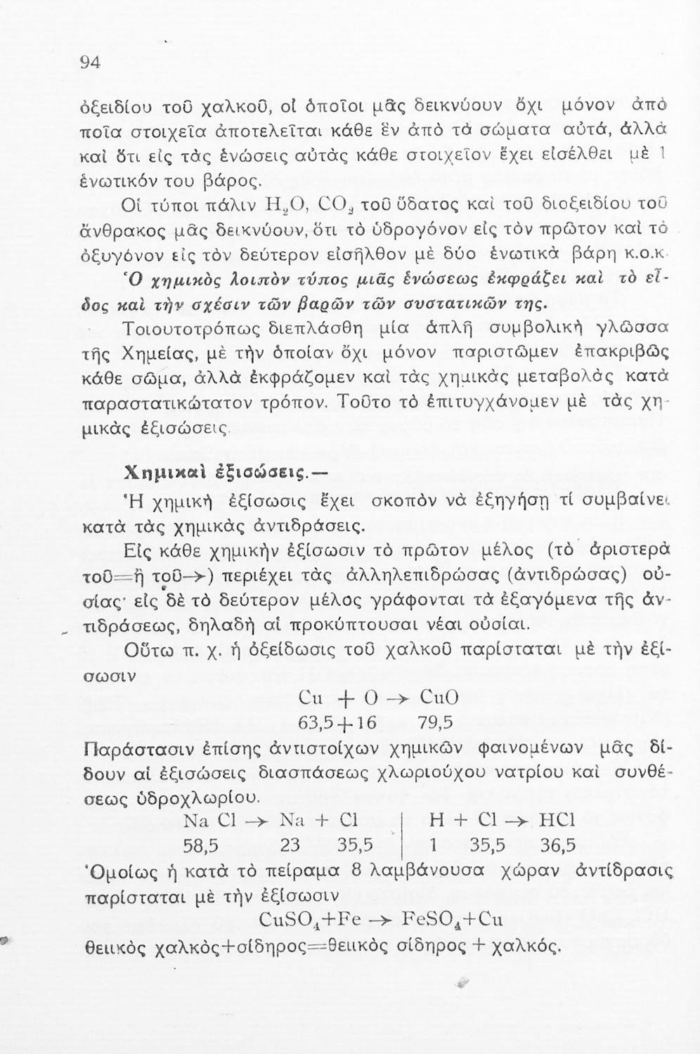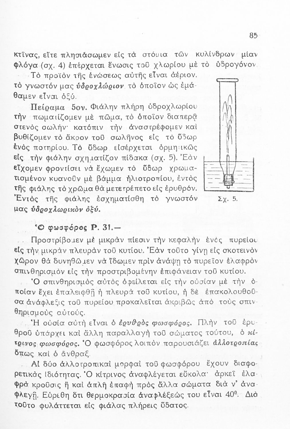 Σχολικό Εγχειρίδιο Φυσικής και Χημείας της Β' Τάξης Αστικών Σχολείων. Το βιβλίο είναι μια εισαγωγή στη φυσική και τη χημεία. Είναι χωρισμένο σε δύο μέρη. Στο πρώτο μέρος, παρουσιάζονται στοιχεία αεροστατικής, οπτικής και ακουστικής. Το δεύτερο μέρος, αφορά τη χημεία και εξετάζει τις ιδιότητες και τα χαρακτηριστικά των μετάλλων. Τέλος, το βιβλίο κάνει αναφορά στα άτομα και μόρια και στους νόμους των χημικών αντιδράσεων.