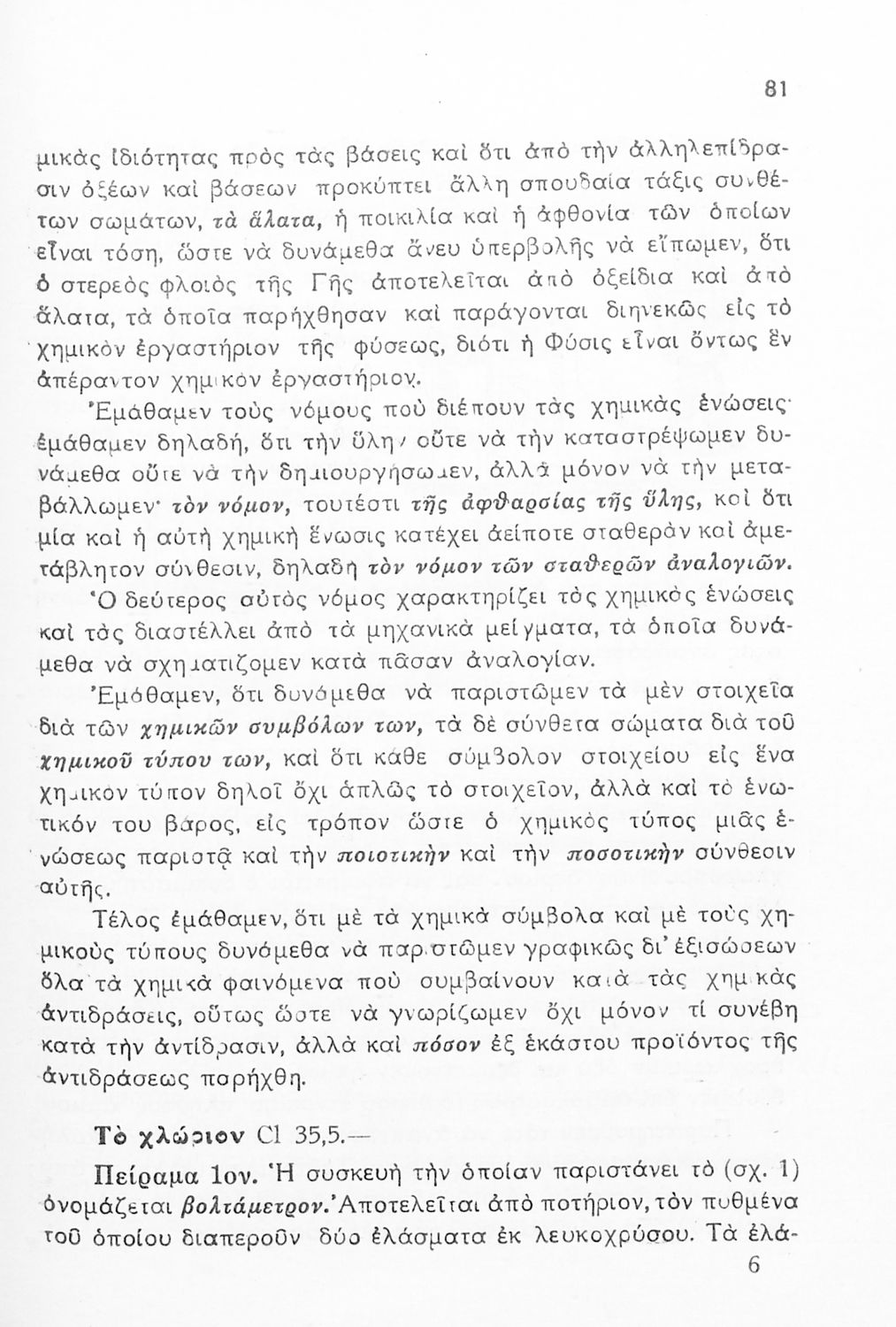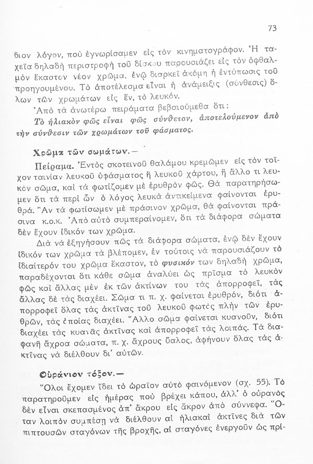 Το σύγγραμμα ήταν σχολικό εγχειρίδιο για το μάθημα της Φυσικής στο Γυμνάσιο . Παρέχει βασικές γνώσεις της φυσικής επιστήμης και της χημείας. Αναλύει τις ιδιότητες των σωμάτων, καθώς και της θερμότητας, του ...