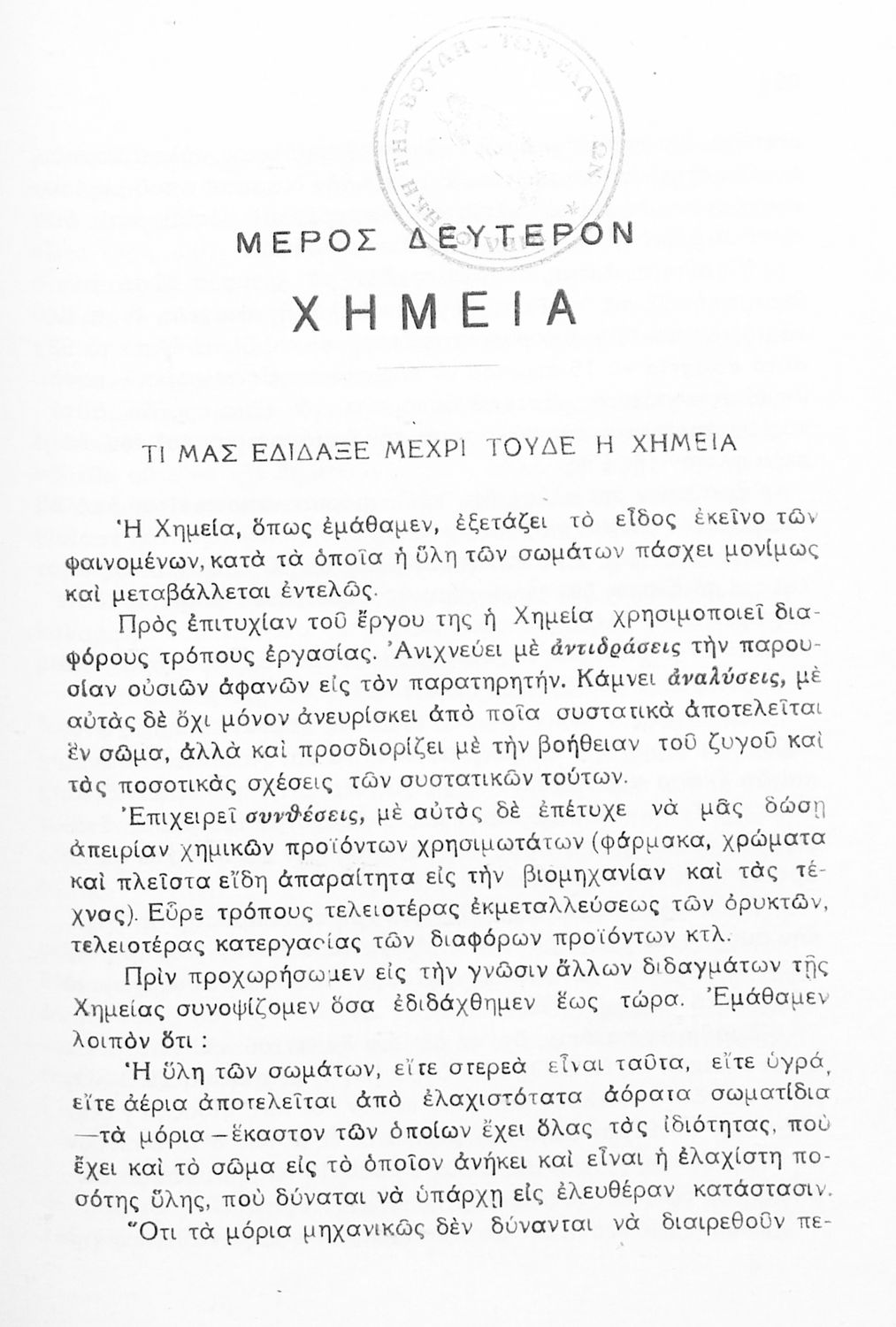 Τίτλος: Στοιχεία Φυσικής και Χημείας δια την Β' τάξιν των Αστικών Σχολείων