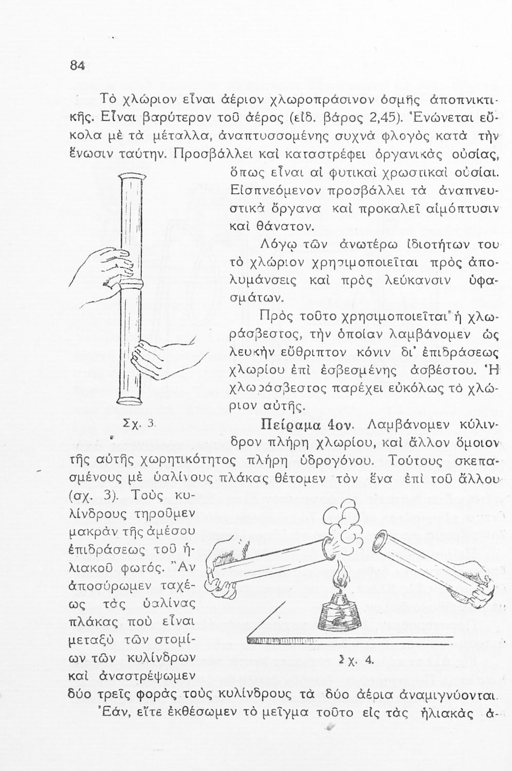 Παρουσίαση περιεχομένου: Σχολικό Εγχειρίδιο Φυσικής και Χημείας της Β' Τάξης Αστικών Σχολείων. Το βιβλίο είναι μια εισαγωγή στη φυσική και τη χημεία. Είναι χωρισμένο σε δύο μέρη. Στο πρώτο μέρος, παρουσιάζονται στοιχεία αεροστατικής, οπτικής και ακουστικής. Το δεύτερο μέρος, αφορά τη χημεία και εξετάζει τις ιδιότητες και τα χαρακτηριστικά των μετάλλων. Τέλος, το βιβλίο κάνει αναφορά στα άτομα και μόρια και στους νόμους των χημικών αντιδράσεων.