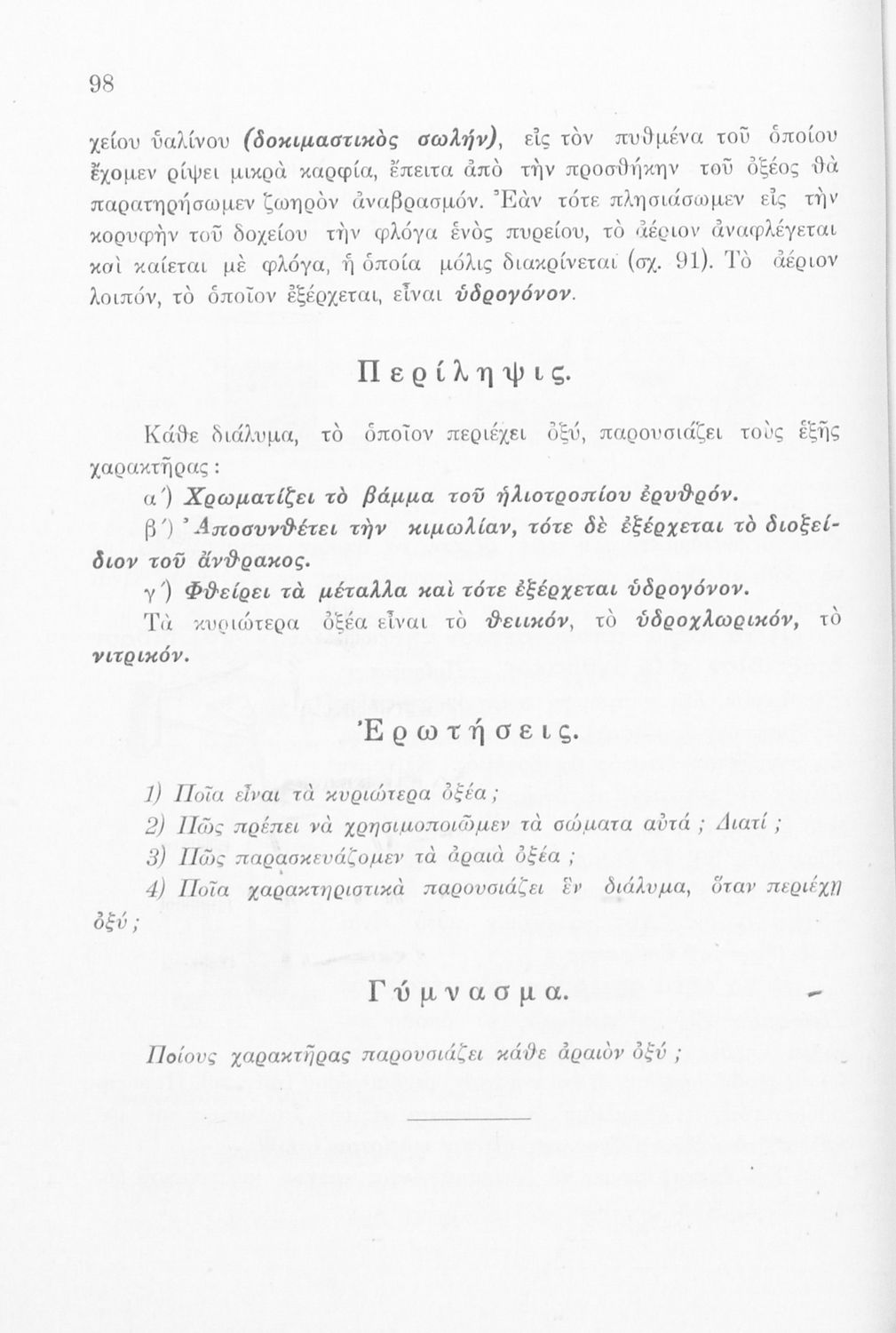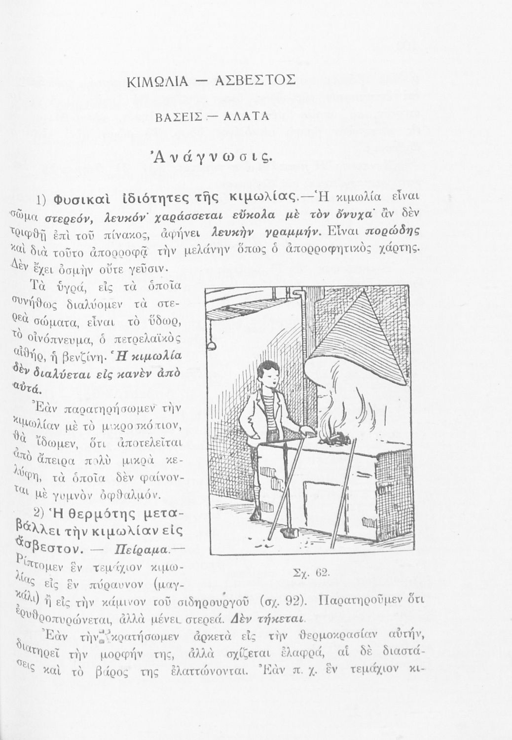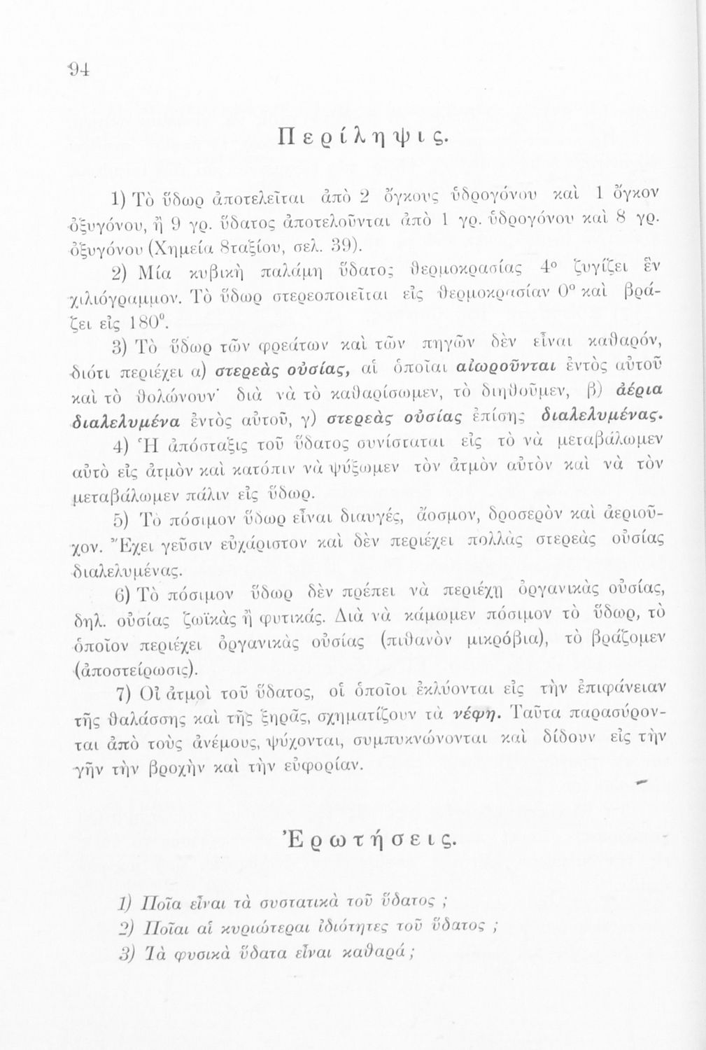 Σχολικό εγχειρίδιο Φυσικής και Χημείας που προσδιορίζει τη μηχανική στερεών σωμάτων, αναφέρει τις ιδιότητες ποικίλων στοιχείων της φύσης (οξυγόνο, υδρογόνο, αέρα, νερό) περιγράφοντας τις χημικές ενώσεις που ...