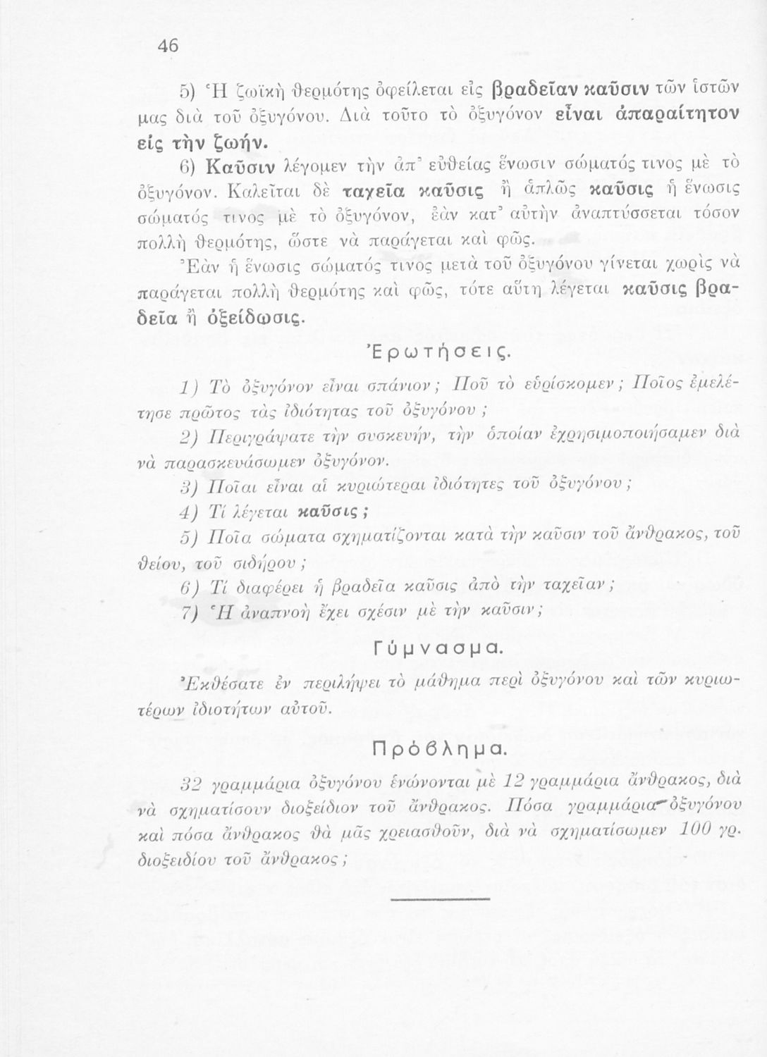 Βαθμίδα εκπαίδευσης: Δευτεροβάθμια Τάξη: Α' Γυμνασίου Γλώσσα: Καθαρεύουσα Παρουσίαση περιεχομένου: Σχολικό εγχειρίδιο για την Α΄ Γυμνασίου για το μάθημα της Φυσικής και Χημείας. Το εγχειρίδιο περιλαμβάνει γενικές πληροφορίες για τις ιδιότητες των φυσικών σωμάτων, τις θεμελιώδεις αρχές της επιστήμης της φυσικής, τα φυσικά στοιχεία της γης, τα οξέα, τον άνθρακα, τα κάτοπτρα, τον ηλεκτρισμό, τον ήχο, τα ηλεκτρομαγνητικά πεδία κ.α. |