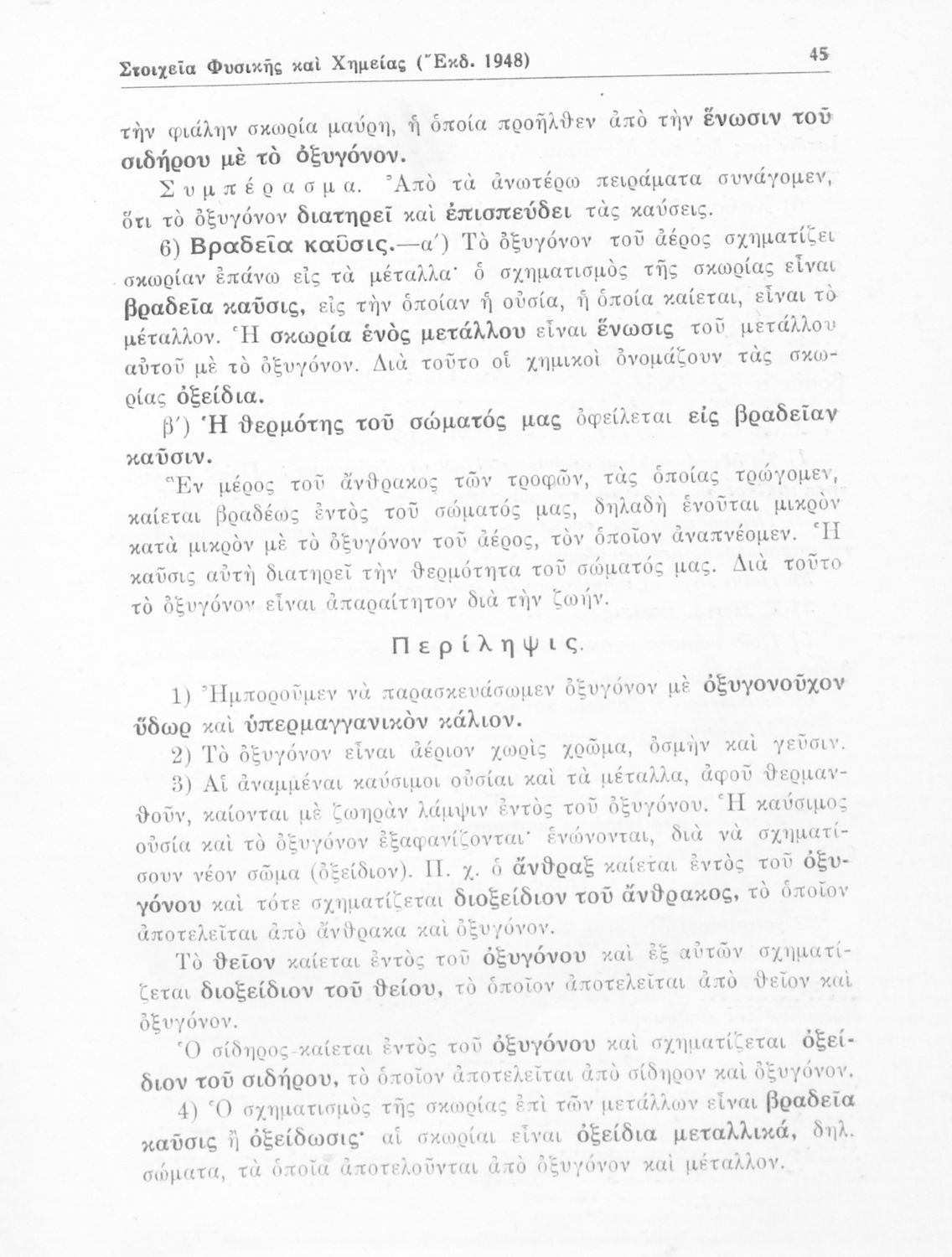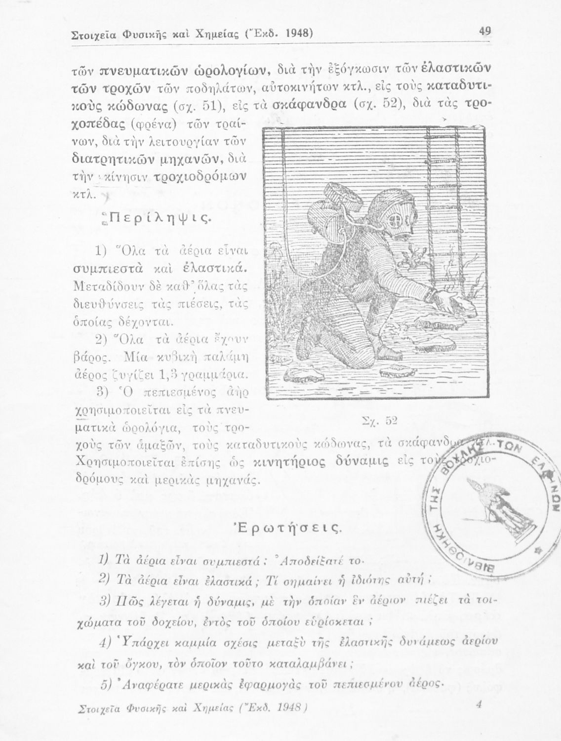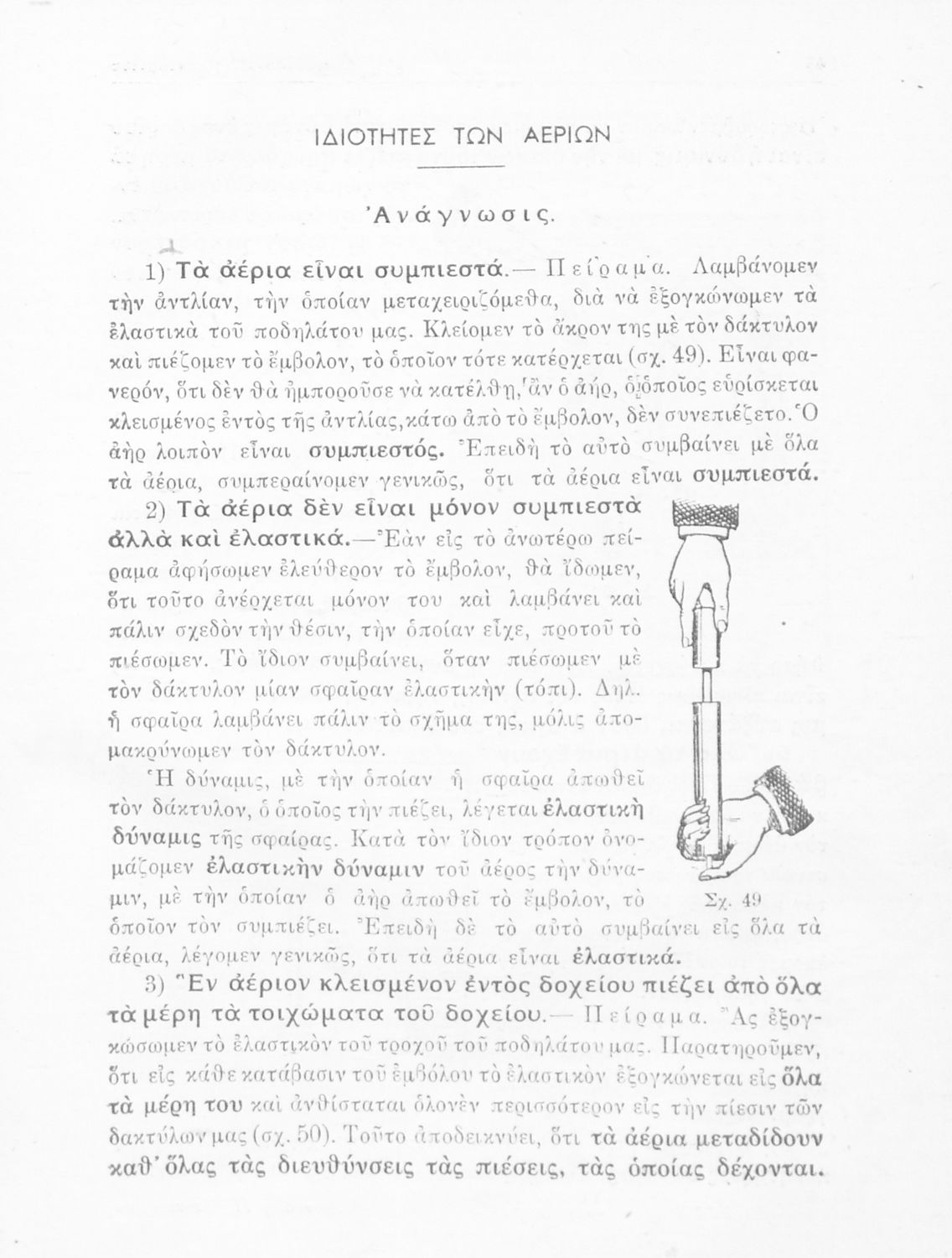 Σχολικό εγχειρίδιο Φυσικής και Χημείας που προσδιορίζει τη μηχανική στερεών σωμάτων, αναφέρει τις ιδιότητες ποικίλων στοιχείων της φύσης (οξυγόνο, υδρογόνο, αέρα, νερό) περιγράφοντας τις χημικές ενώσεις που ...