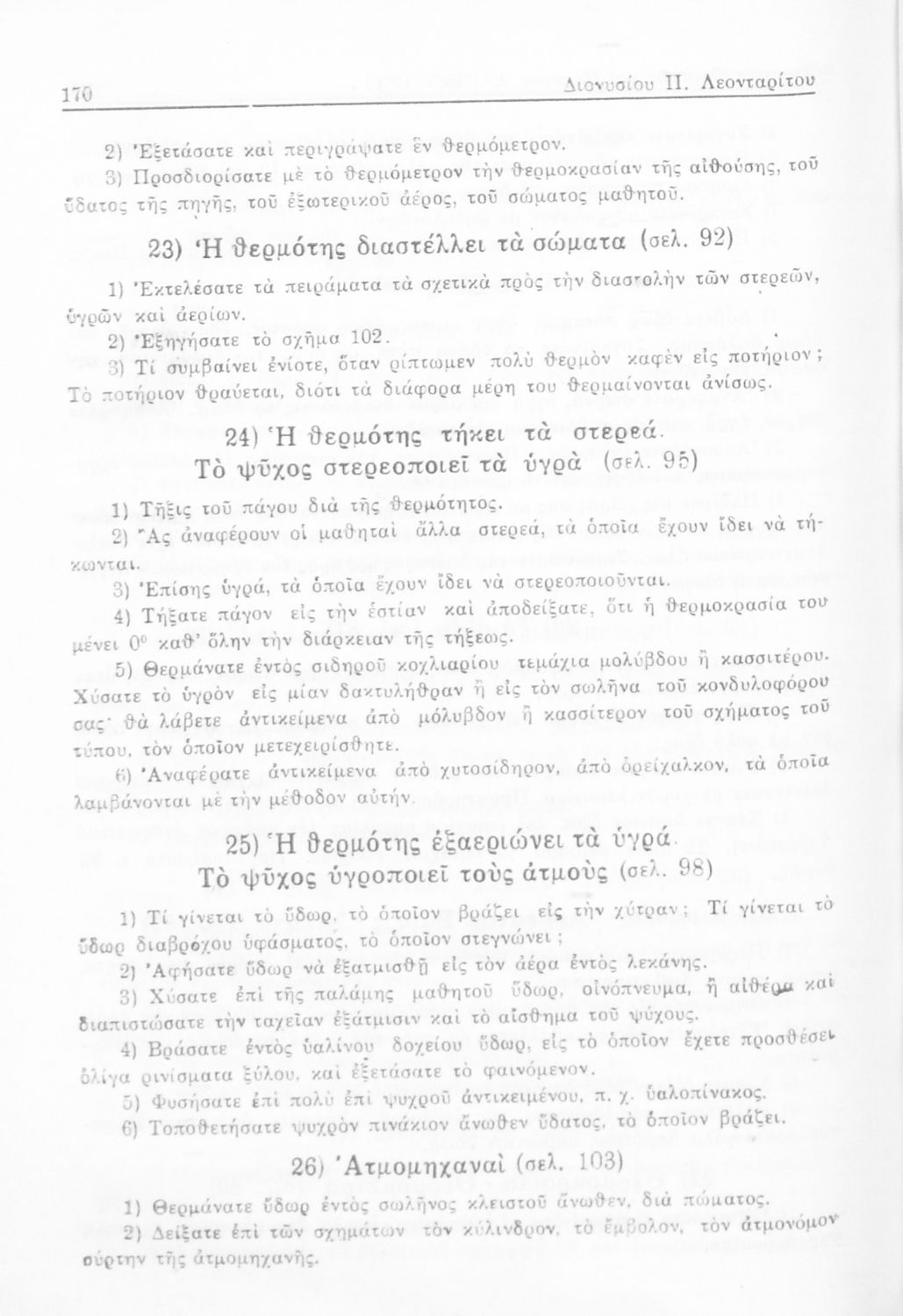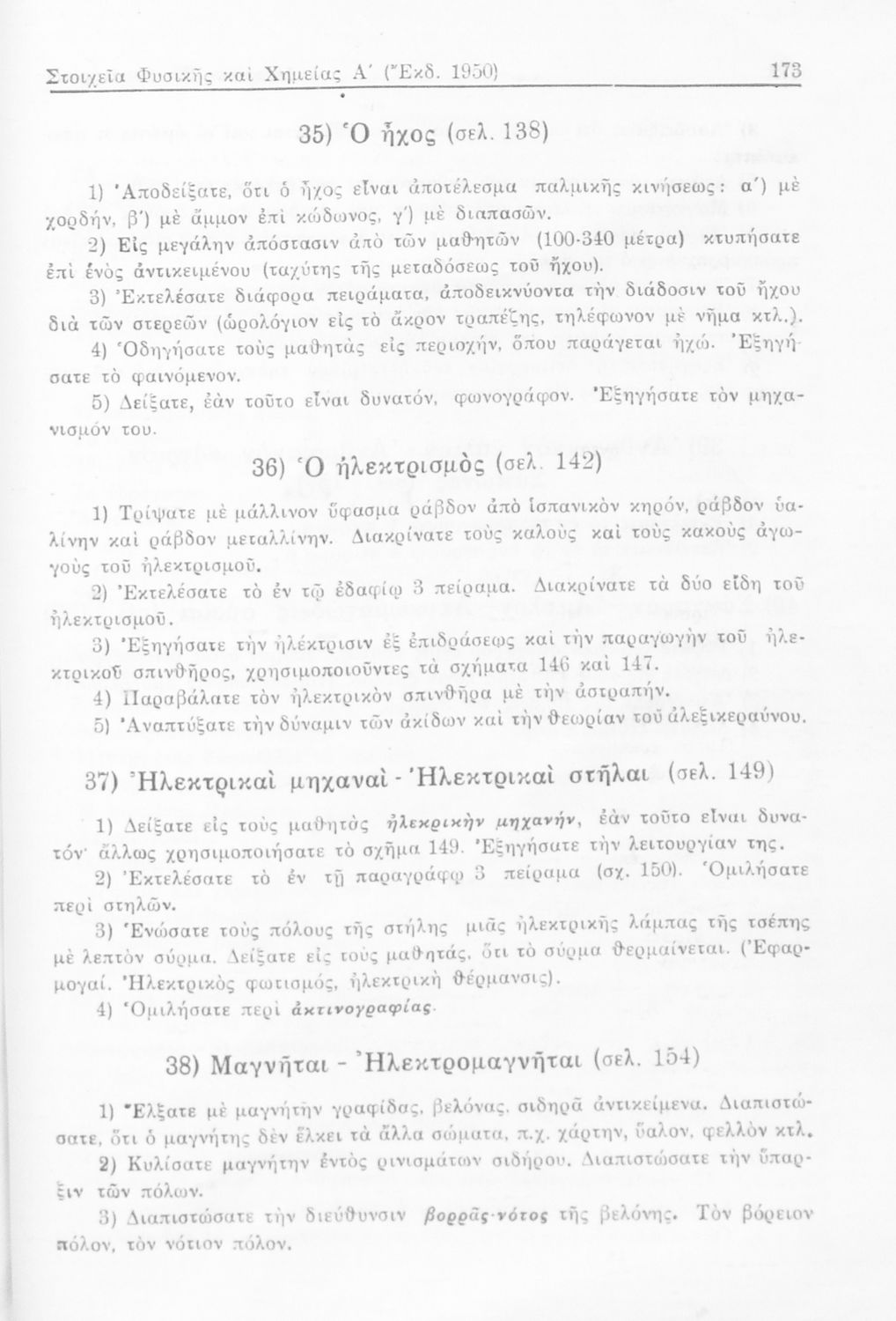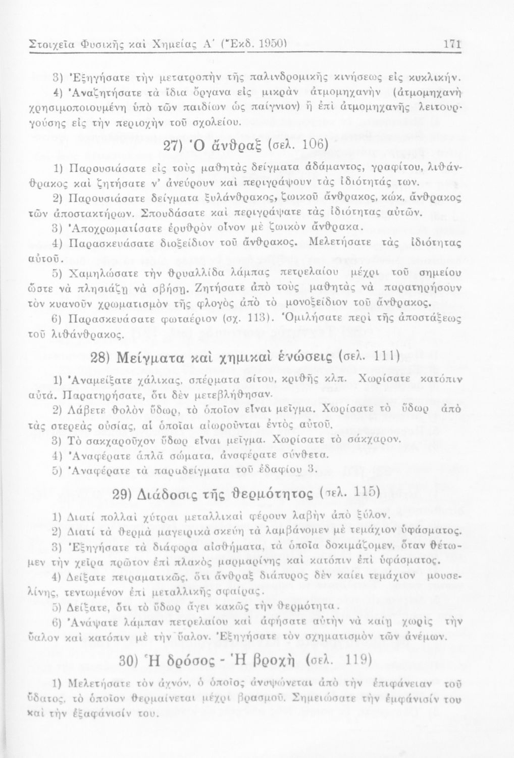 Βαθμίδα εκπαίδευσης: Δευτεροβάθμια Τάξη: Α' Γυμνασίου Γλώσσα: Καθαρεύουσα Παρουσίαση περιεχομένου: Σχολικό εγχειρίδιο Χημείας και Φυσικής της Α΄ Γυμνασίου. Ασχολείται με τις ιδιότητες των υγρών και των αερίων, την επίδραση που έχει η θερμοκρασία στα στερεά και τα υγρά, τη μετάδοση του ήχου, και τις ιδιότητες του φωτός. Τέλος, το βιβλίο ολοκληρώνει εστιάζοντας σε ζητήματα ηλεκτρισμού και ηλεκτρομαγνητισμού |