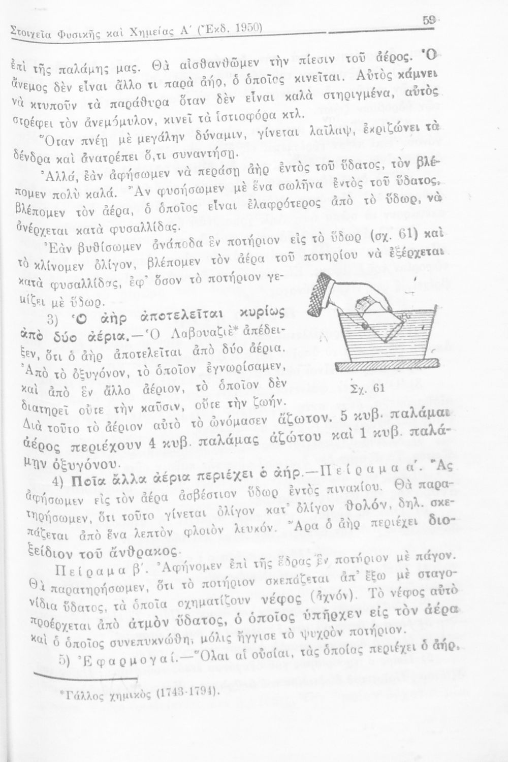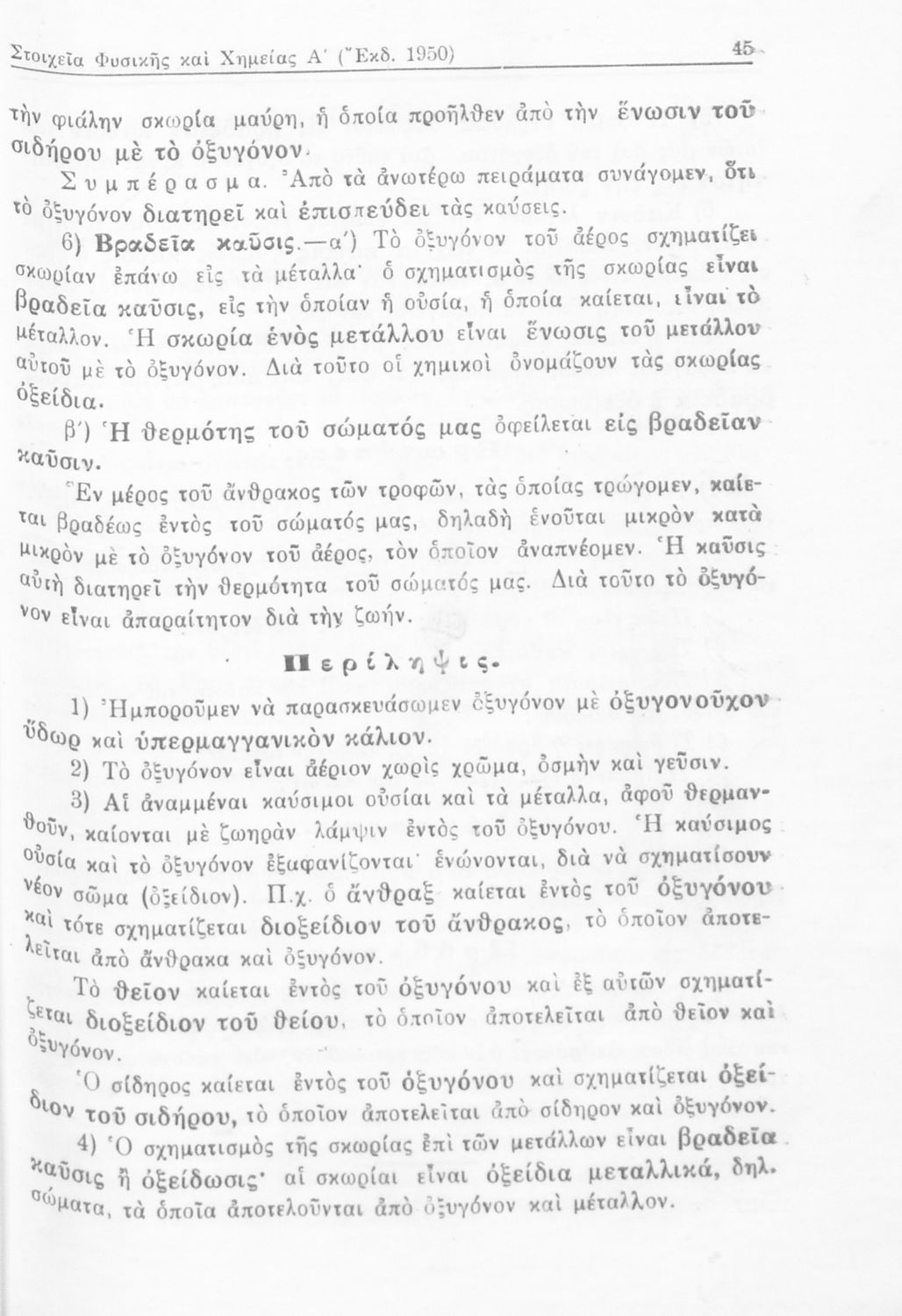Σχολικό εγχειρίδιο Φυσικής και Χημείας που προσδιορίζει τη μηχανική στερεών σωμάτων, αναφέρει τις ιδιότητες ποικίλων στοιχείων της φύσης (οξυγόνο, υδρογόνο, αέρα, νερό) περιγράφοντας τις χημικές ενώσεις που ...