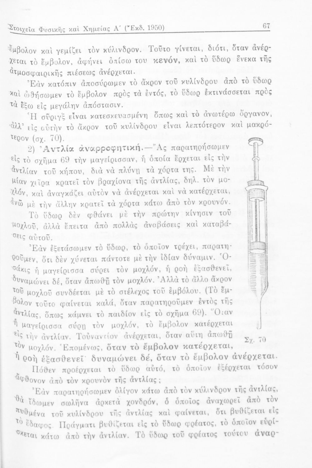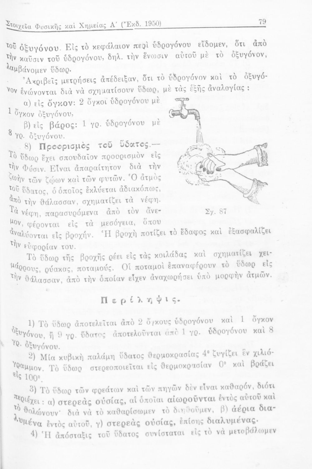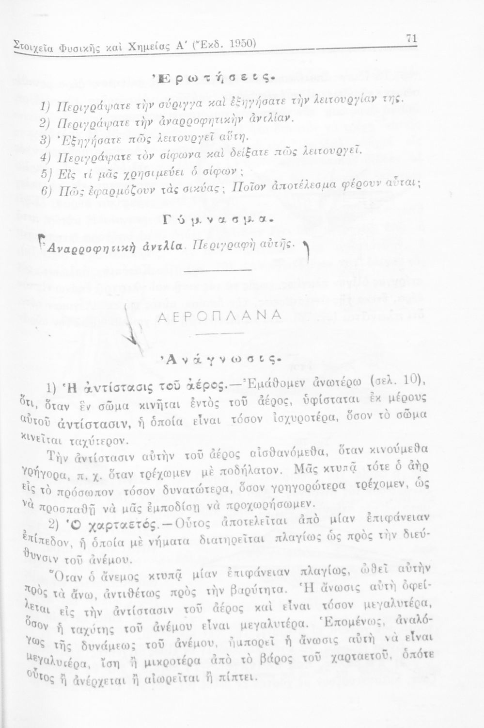 Σχολικό εγχειρίδιο Φυσικής και Χημείας που προσδιορίζει τη μηχανική στερεών σωμάτων, αναφέρει τις ιδιότητες ποικίλων στοιχείων της φύσης (οξυγόνο, υδρογόνο, αέρα, νερό) περιγράφοντας τις χημικές ενώσεις που ...