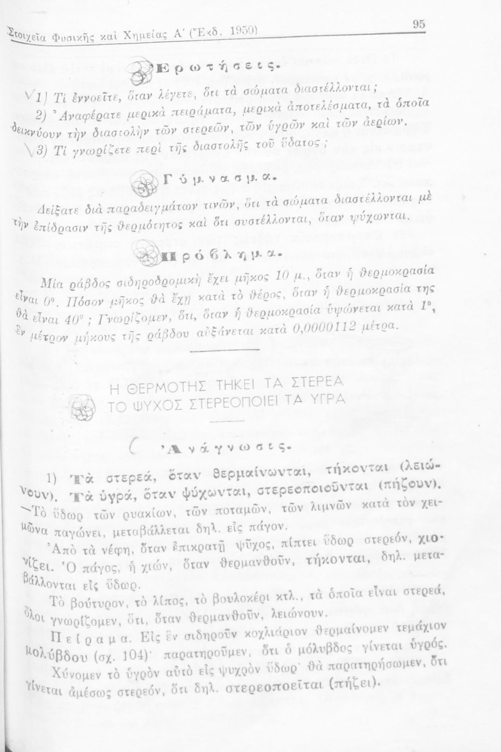 Σχολικό εγχειρίδιο Χημείας και Φυσικής της Α΄ Γυμνασίου. Ασχολείται με τις ιδιότητες των υγρών και των αερίων, την επίδραση που έχει η θερμοκρασία στα στερεά και τα υγρά, τη μετάδοση του ήχου, και τις ιδιότητες του φωτός. Τέλος, το βιβλίο ολοκληρώνει εστιάζοντας σε ζητήματα ηλεκτρισμού και ηλεκτρομαγνητισμού