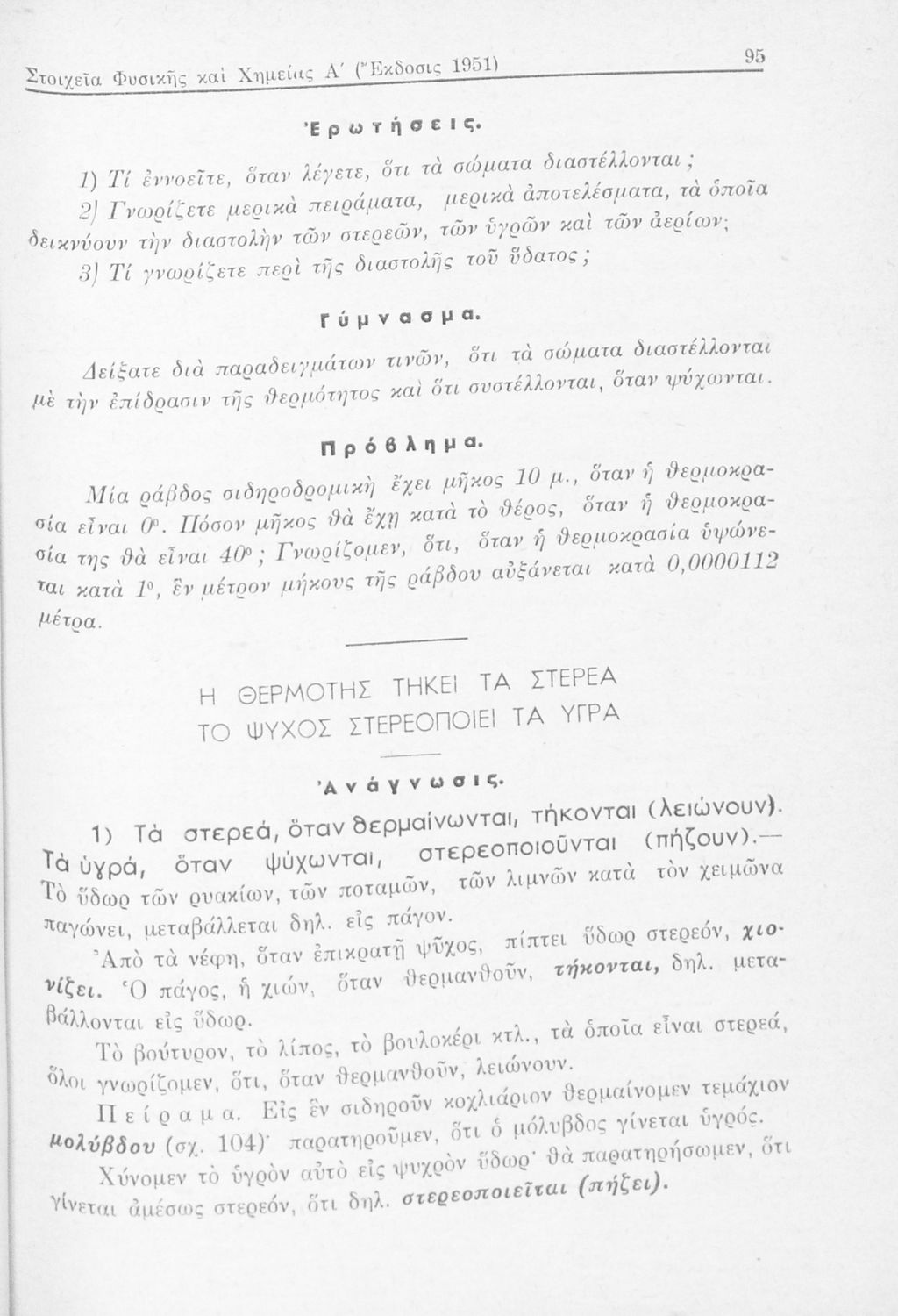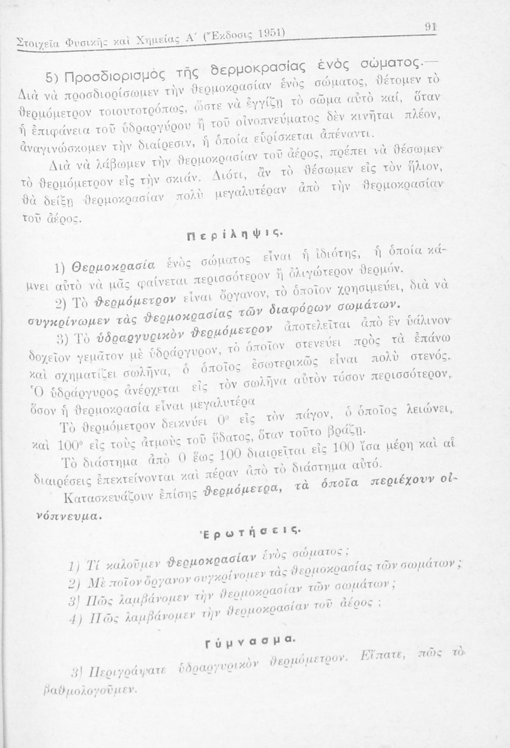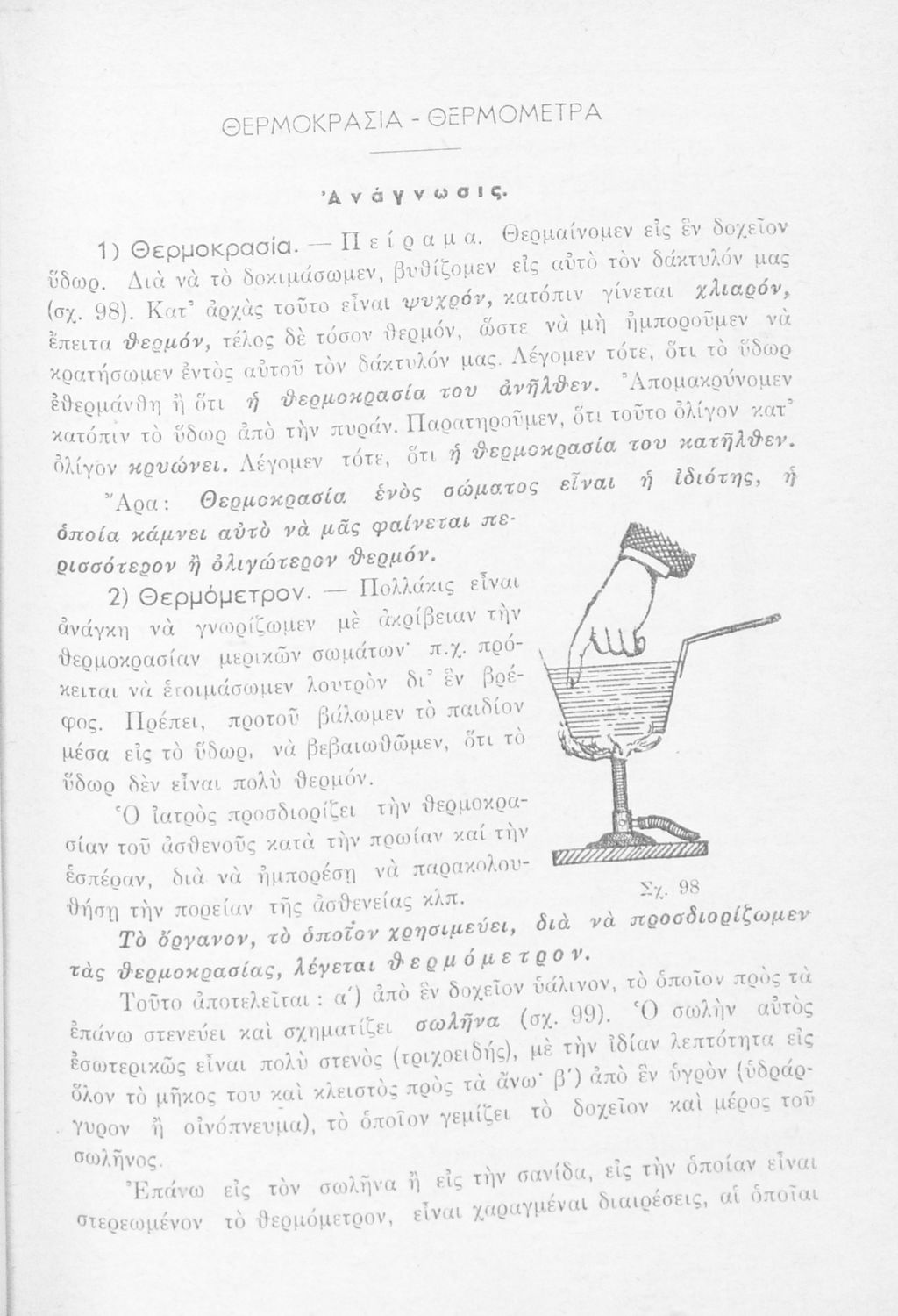 Βαθμίδα εκπαίδευσης: Δευτεροβάθμια Τάξη: Α' Γυμνασίου Μάθημα: Φυσική Γλώσσα: Απλή καθαρεύουσα Παρουσίαση περιεχομένου: Σχολικό εγχειρίδιο της Α΄ Γυμνασίου για το μάθημα της Φυσικής. Αναφέρεται στις ιδιότητες των σωμάτων, την αδράνεια, τη βαρύτητα, τη θερμότητα και τις κινήσεις. Συνεχίζει με το φως, τον ήχο και τον ηλεκτρισμό . Διαθέτει εικόνες και σχήματα, τα οποία εξυπηρετούν στην κατανόηση των φυσικών εννοιών. Στη Χημεία αναφέρονται ενώσεις και η χρήση τους στην καθημερινή ζωή. |