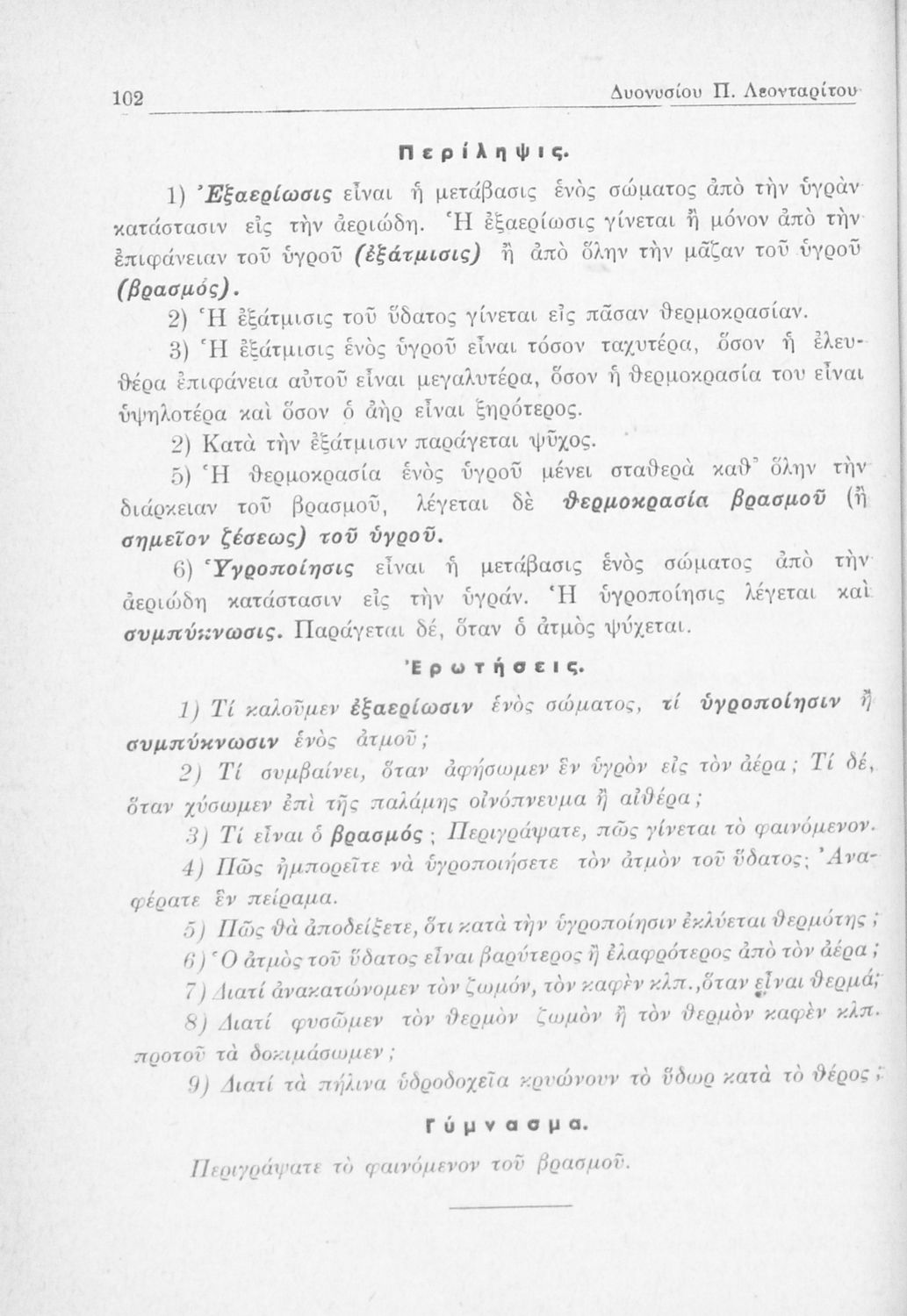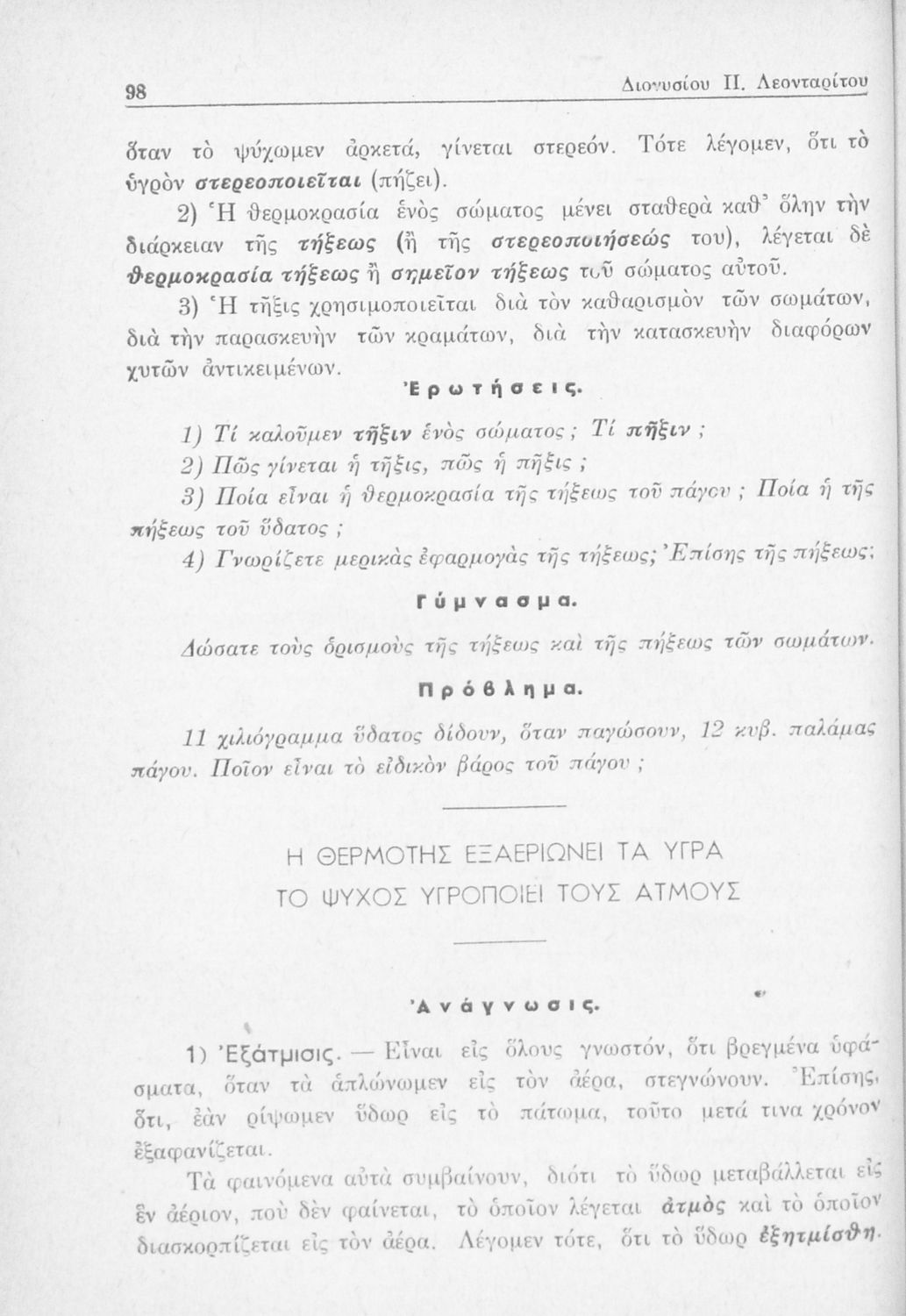 Κωδικός αναγνώρισης: 03-20557622 Τίτλος: Στοιχεία Φυσικής και Χημείας δια την Α΄ τάξιν των Γυμνασίων Συγγραφέας: Διον. Π. Λεονταρίτης Μέγεθος και υπόστρωμα: Σχολικό εγχειρίδιο, μαλακό εξώφυλλο, 176 σελίδες. Σκίτσα, εικόνες (ασπρόμαυρα). |