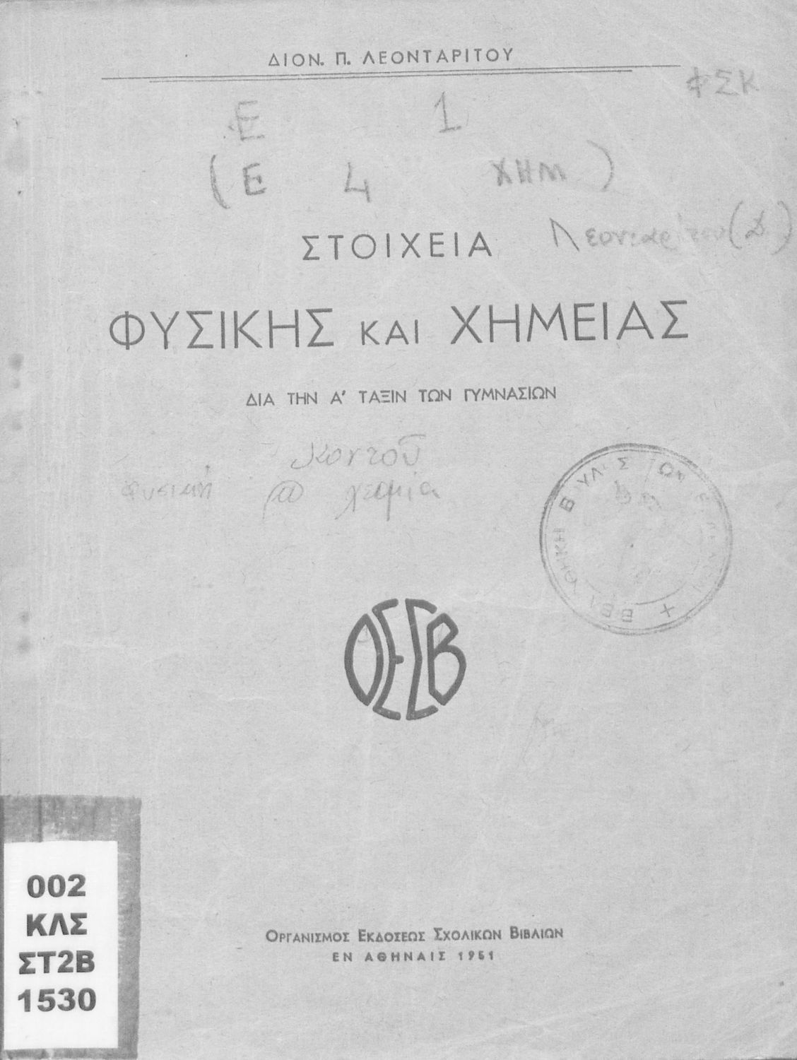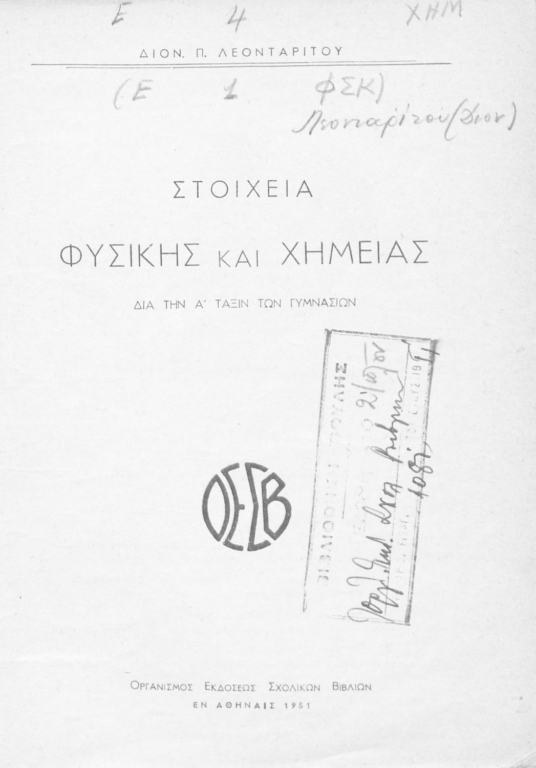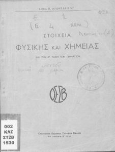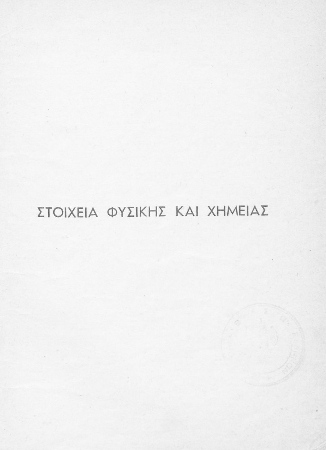 Τίτλος: Στοιχεία Φυσικής και Χημείας δια την Α΄ τάξιν των Γυμνασίων