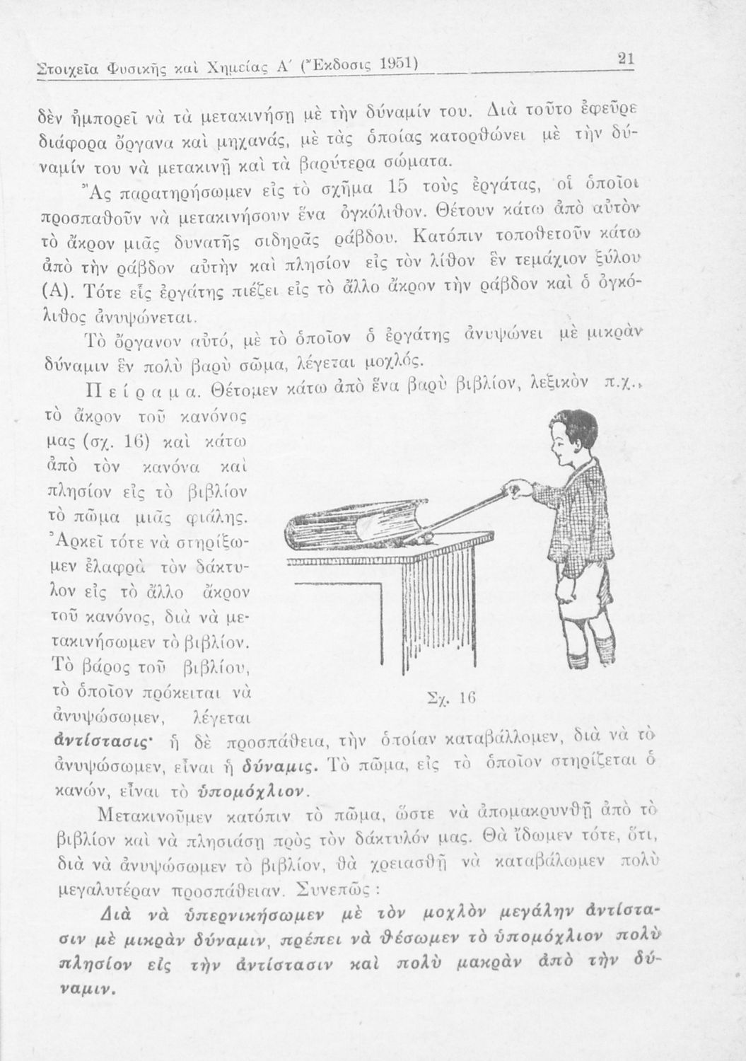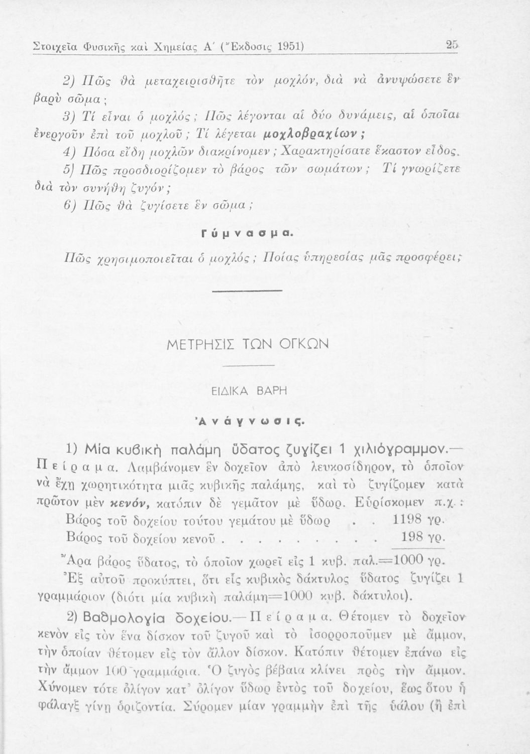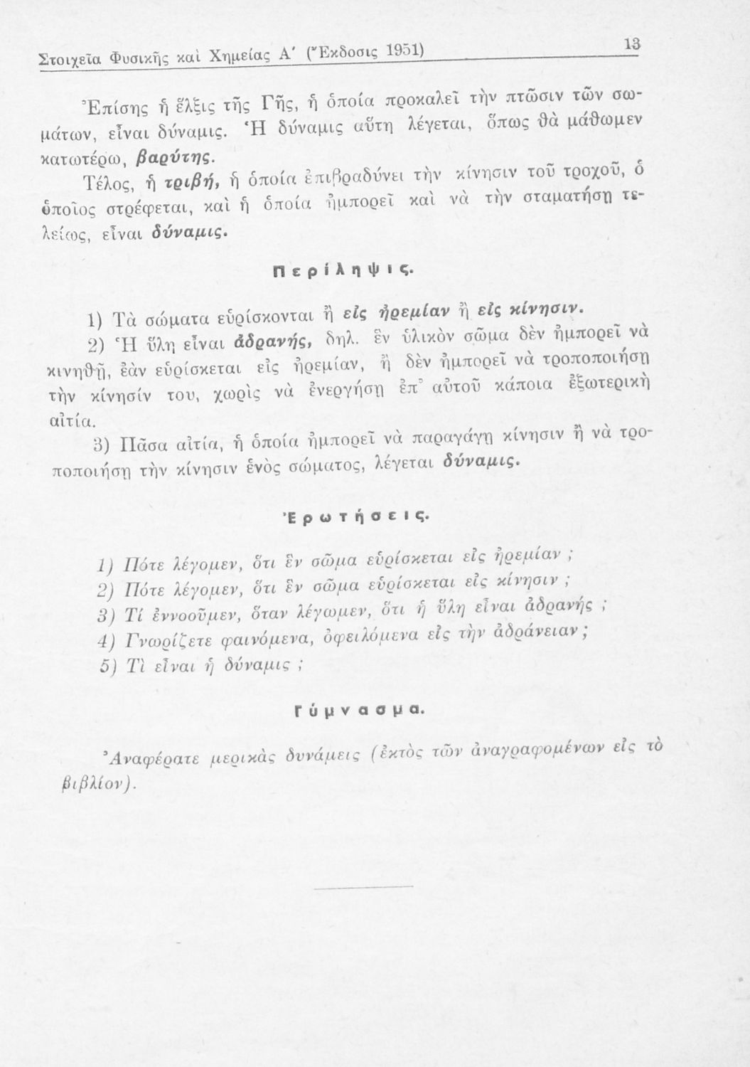 Σχολικό εγχειρίδιο Φυσικής και Χημείας που προσδιορίζει τη μηχανική στερεών σωμάτων, αναφέρει τις ιδιότητες ποικίλων στοιχείων της φύσης (οξυγόνο, υδρογόνο, αέρα, νερό) περιγράφοντας τις χημικές ενώσεις που ...