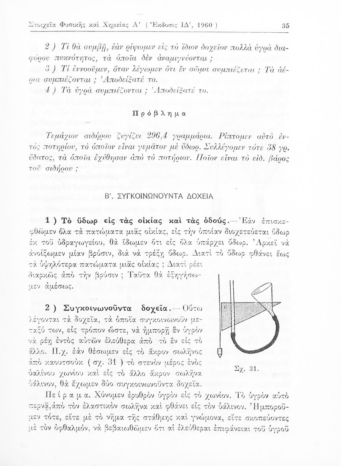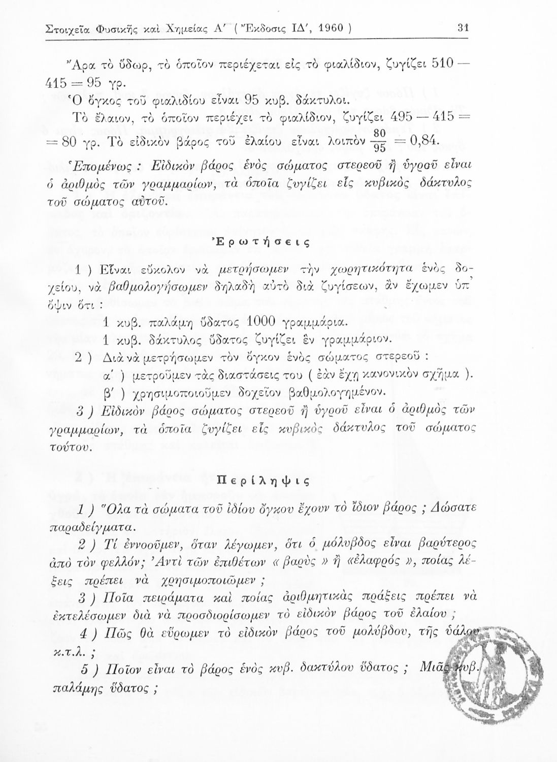 Σχολικό εγχειρίδιο Φυσικής και Χημείας που προσδιορίζει τη μηχανική στερεών σωμάτων, αναφέρει τις ιδιότητες ποικίλων στοιχείων της φύσης (οξυγόνο, υδρογόνο, αέρα, νερό) περιγράφοντας τις χημικές ενώσεις που ...
