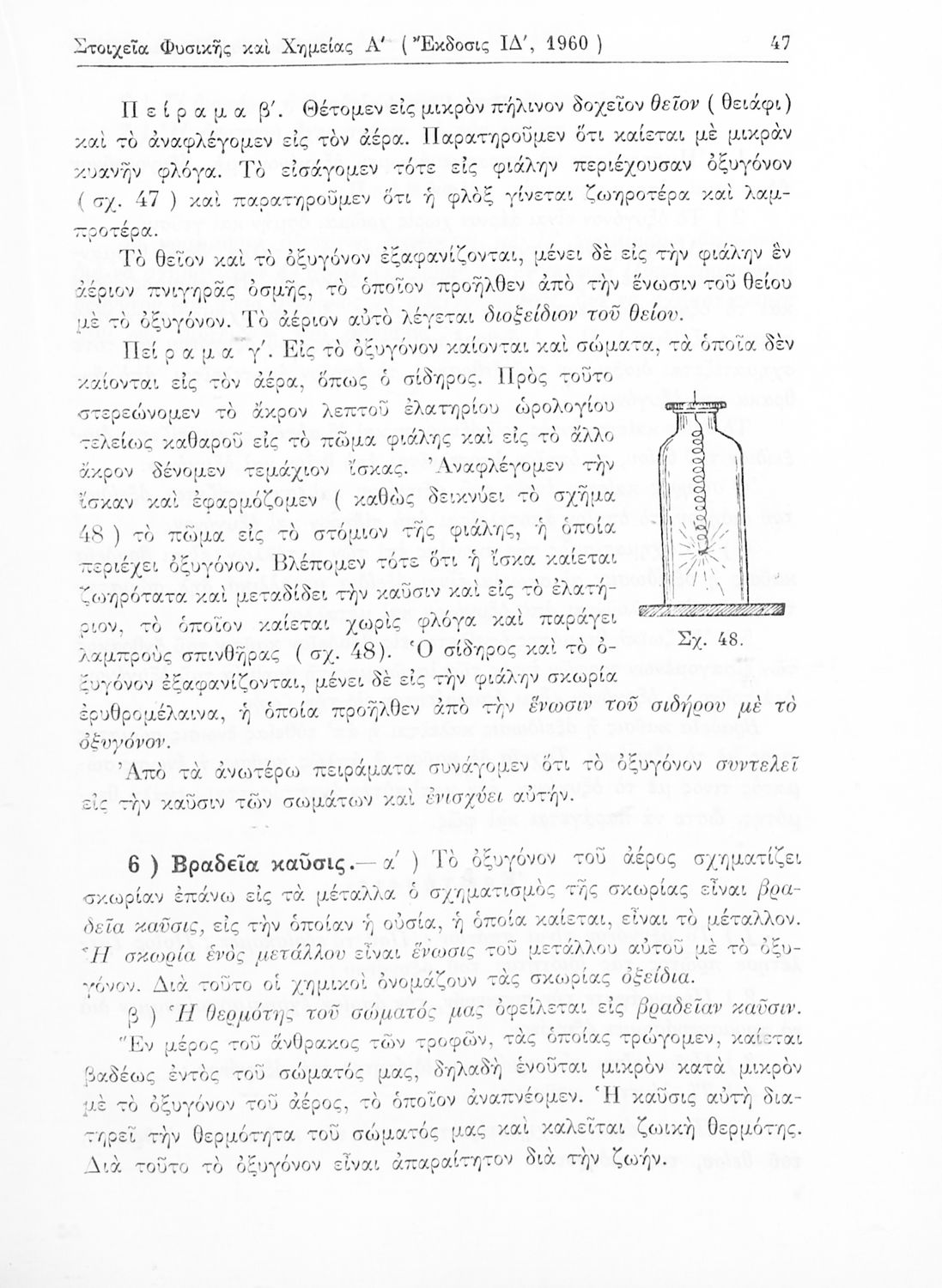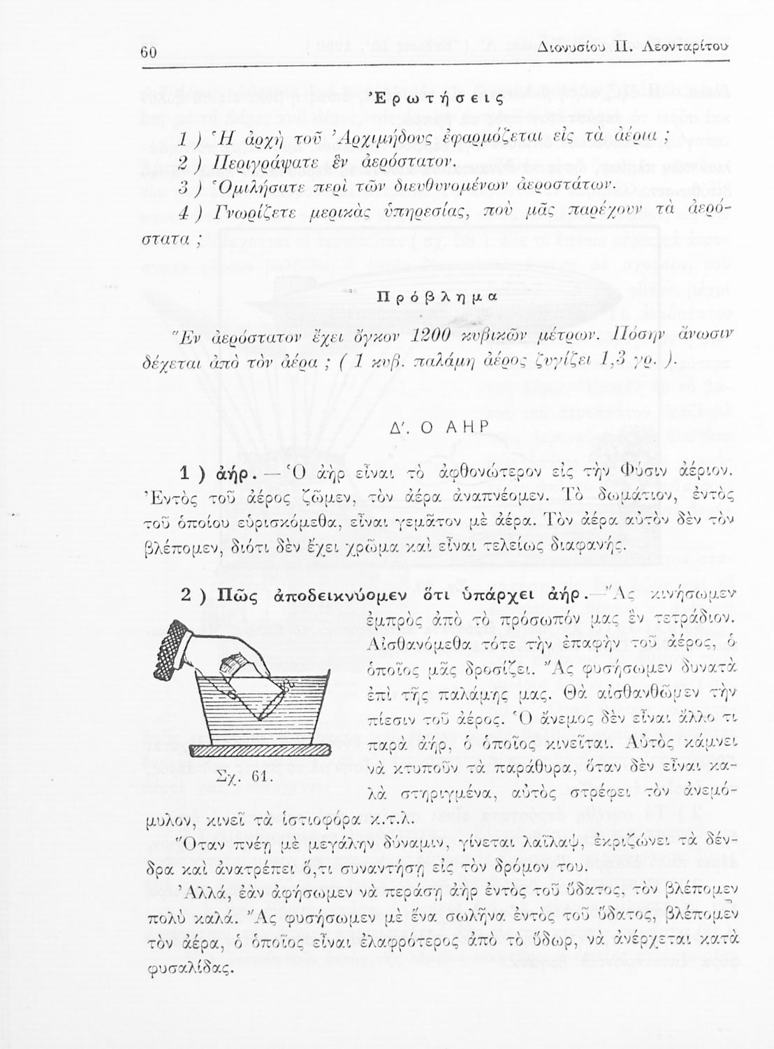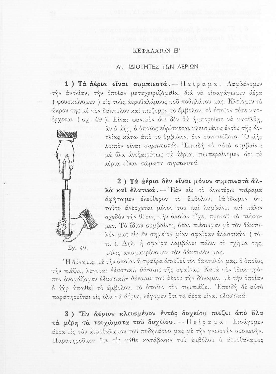 Σχολικό εγχειρίδιο Φυσικής και Χημείας που προσδιορίζει τη μηχανική στερεών σωμάτων, αναφέρει τις ιδιότητες ποικίλων στοιχείων της φύσης (οξυγόνο, υδρογόνο, αέρα, νερό) περιγράφοντας τις χημικές ενώσεις που ...