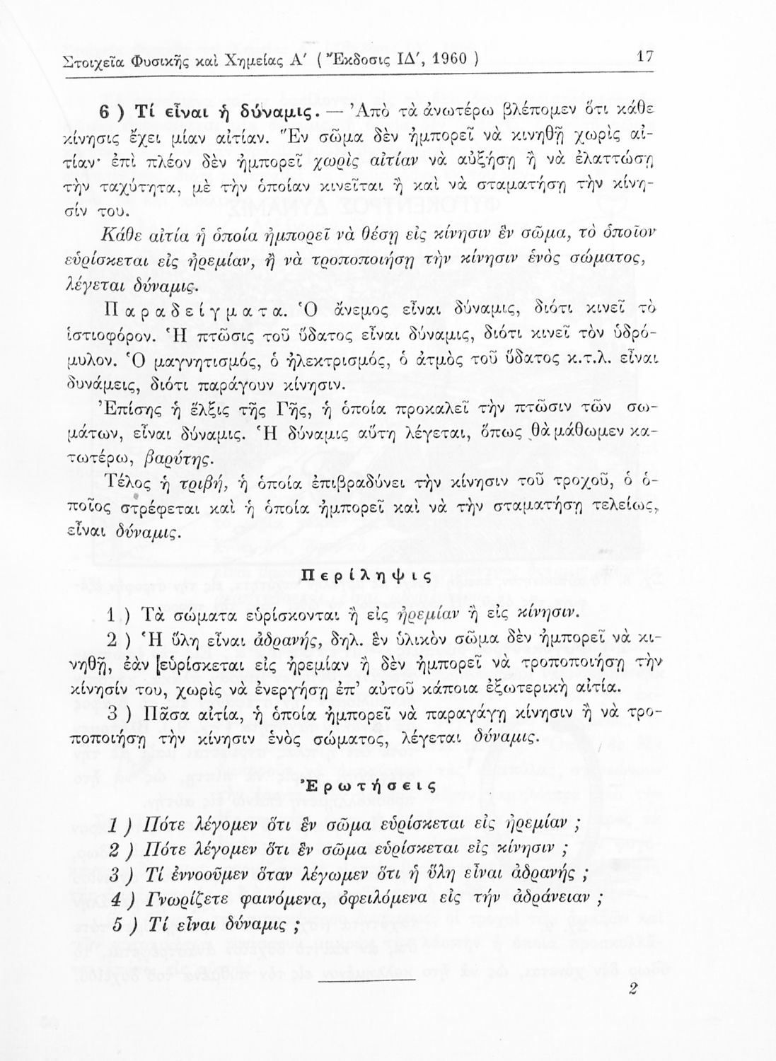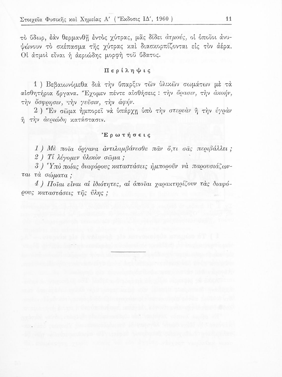 Σχολικό εγχειρίδιο Φυσικής και Χημείας της Α' Γυμνασίου. Το βιβλίο ξεκινάει με την κίνηση των σωμάτων, την επίδραση που έχει η θερμότητα πάνω τους, εξετάζει ζητήματα φωτός, ήχου και ηλεκτρισμού.
