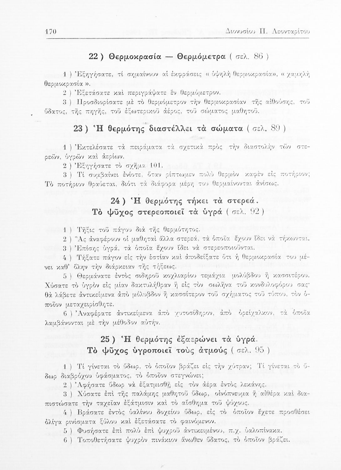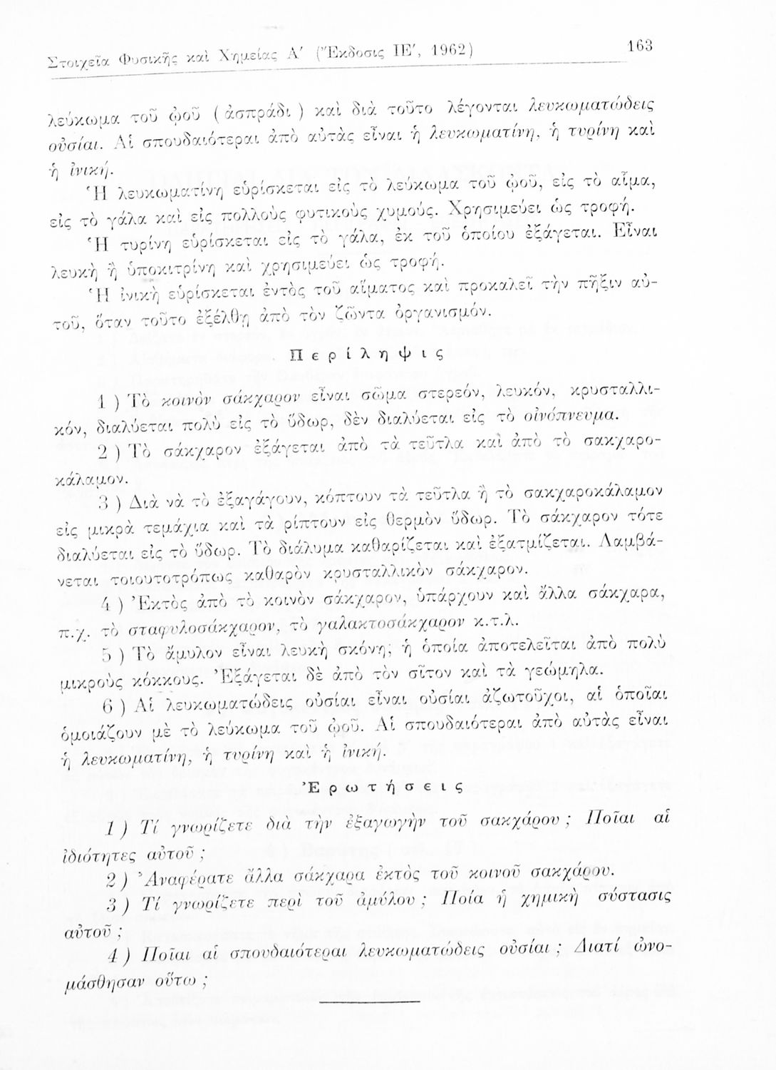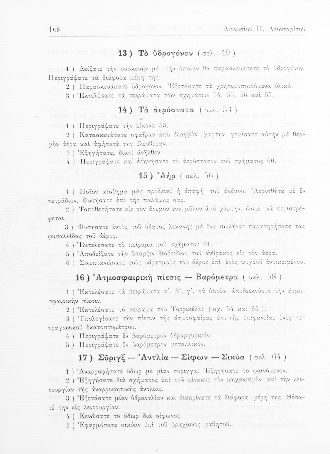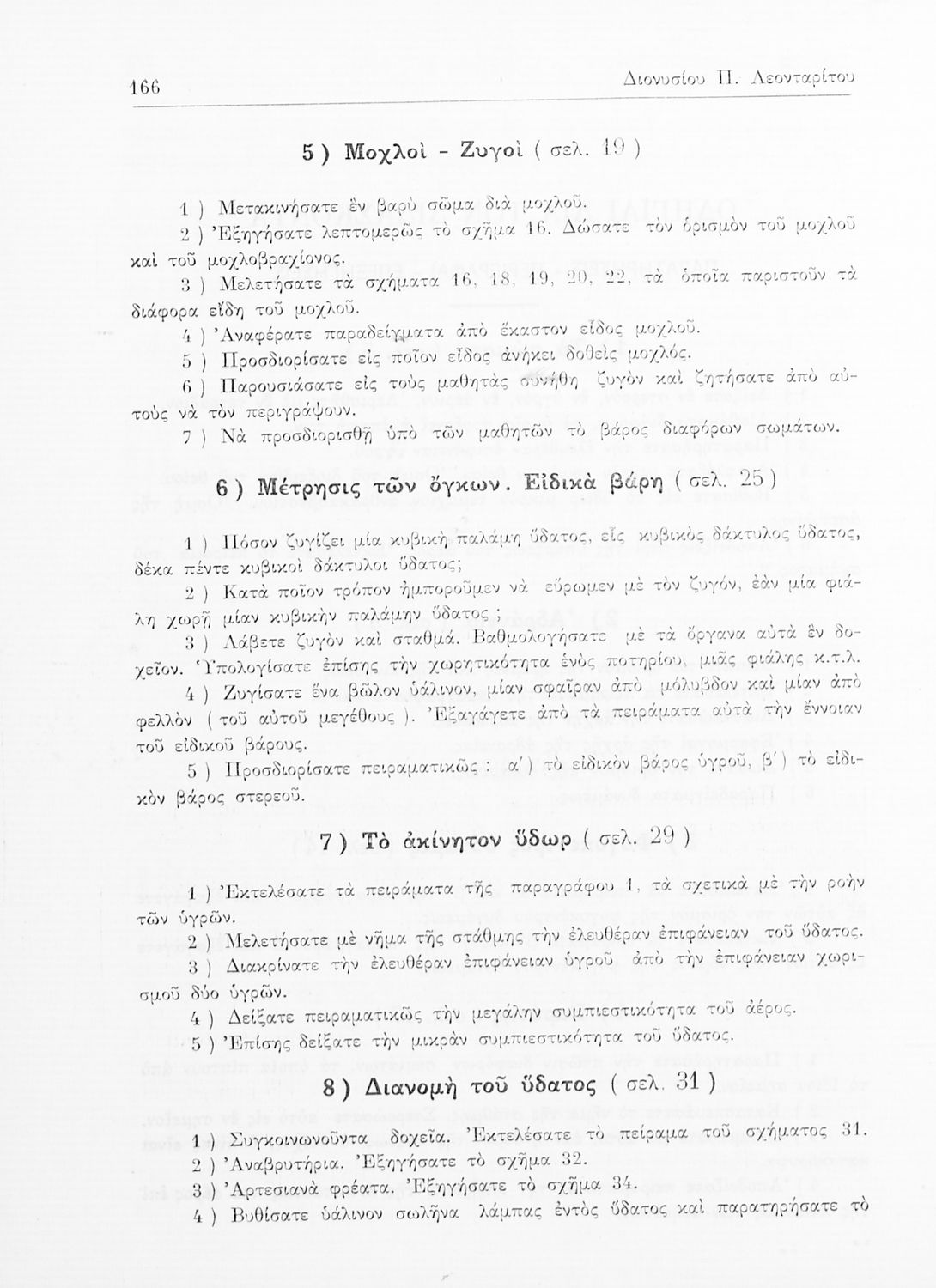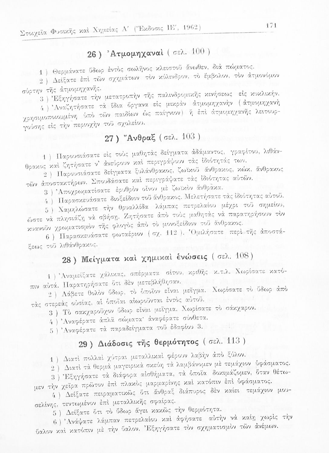 520 ## _aΣχολικό εγχειρίδιο Φυσικής και Χημείας της Α' Γυμνασίου. Το βιβλίο ξεκινάει με την κίνηση των σωμάτων, την επίδραση που έχει η θερμότητα πάνω τους, εξετάζει ζητήματα φωτός, ήχου και ηλεκτρισμού.