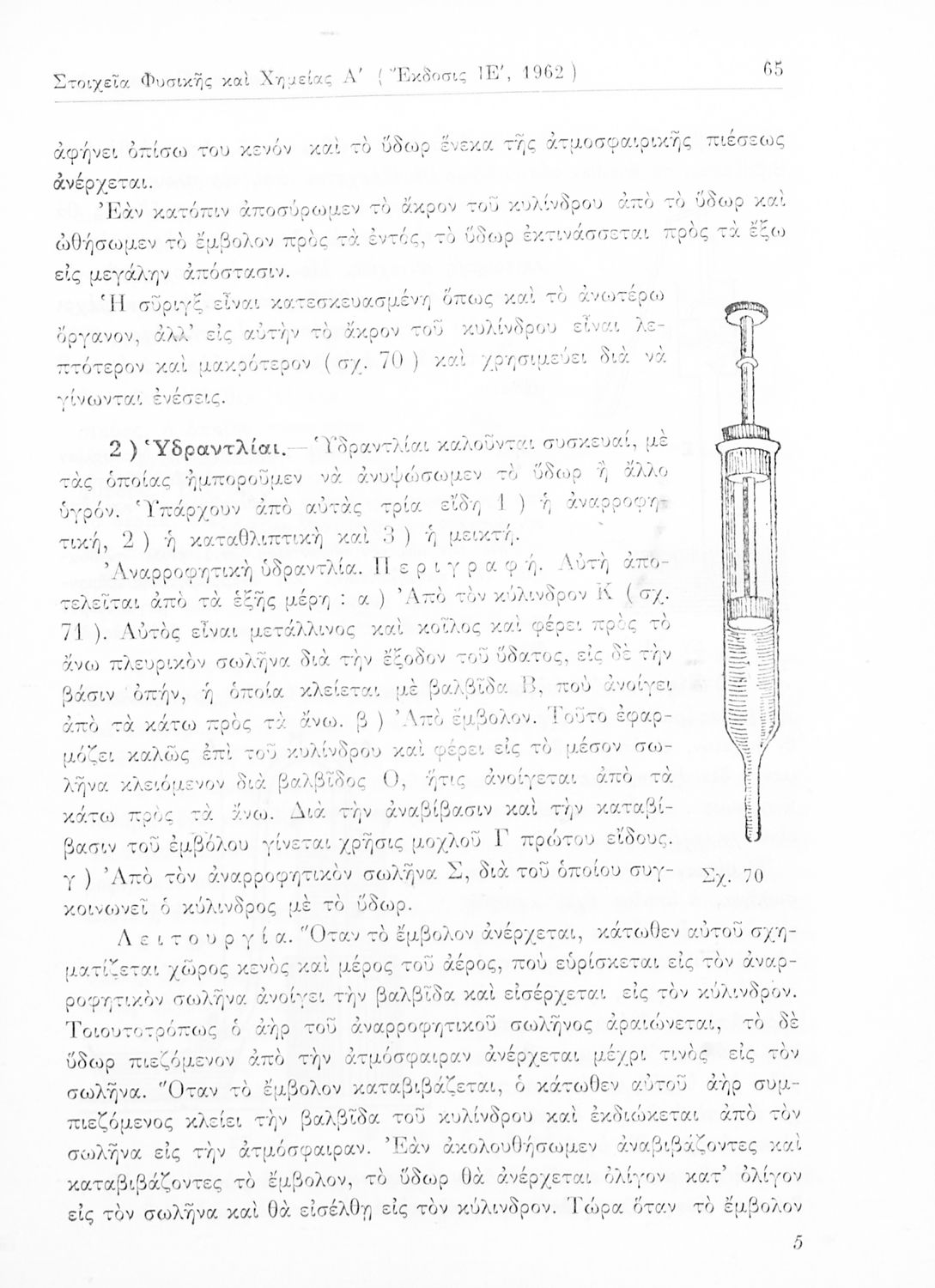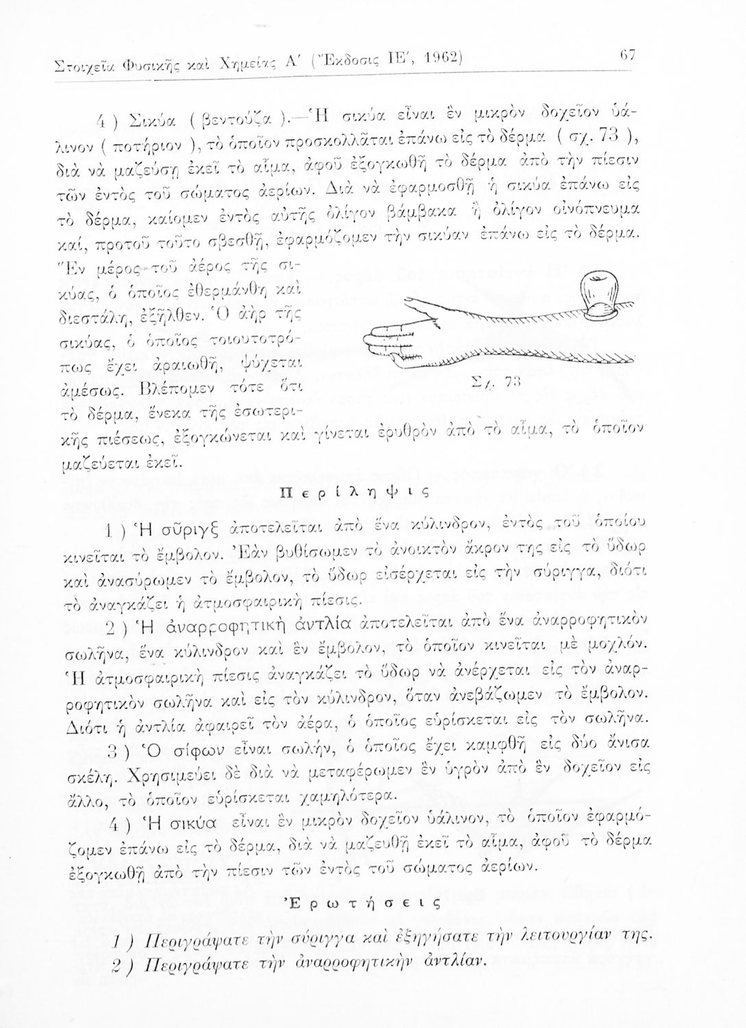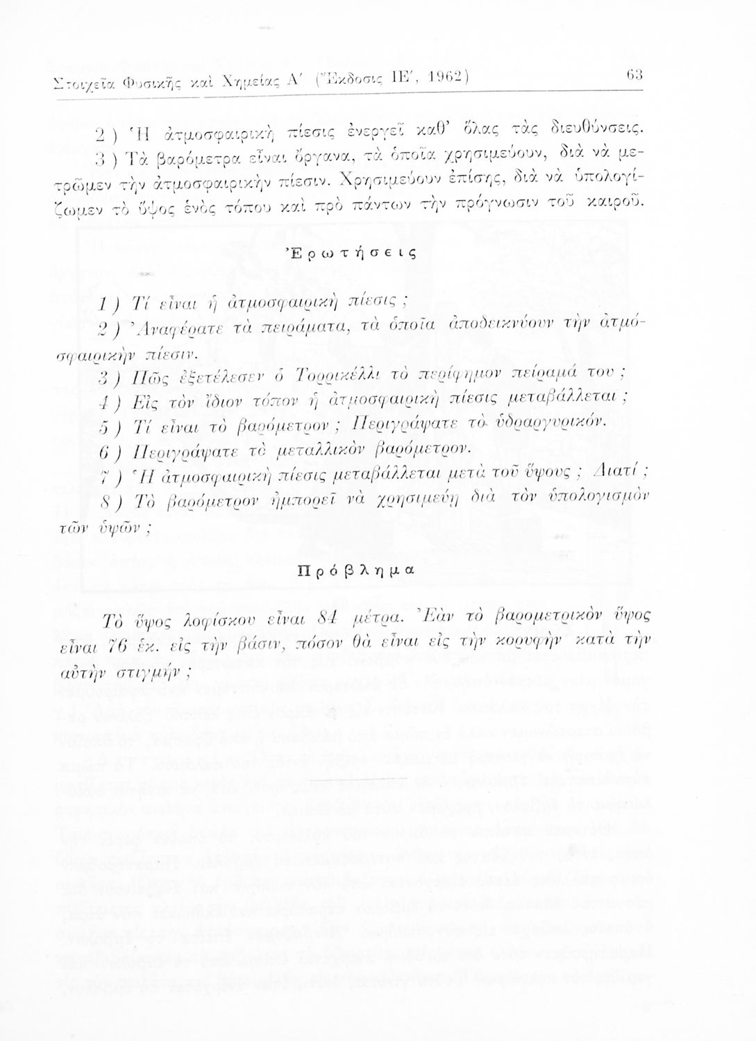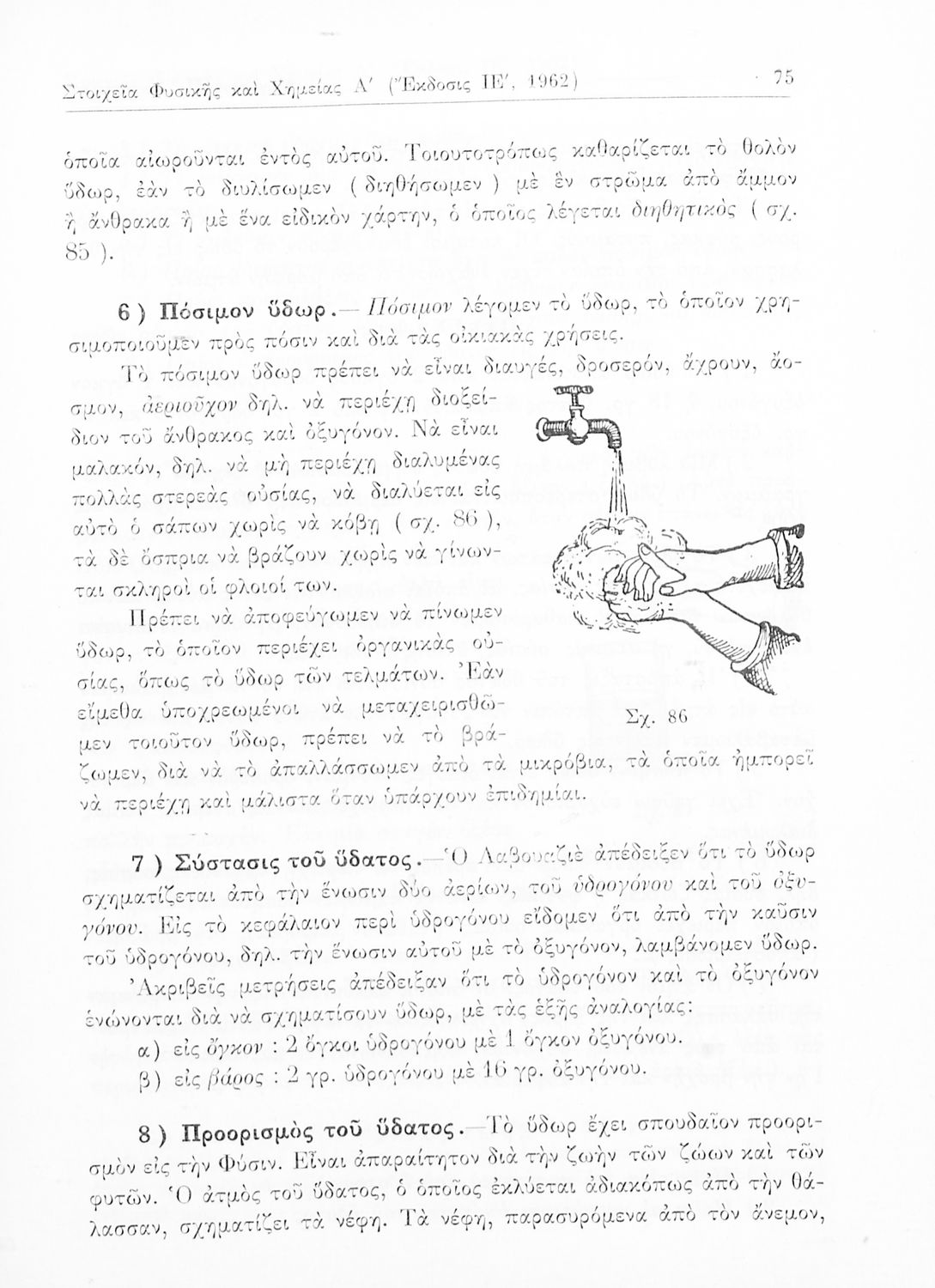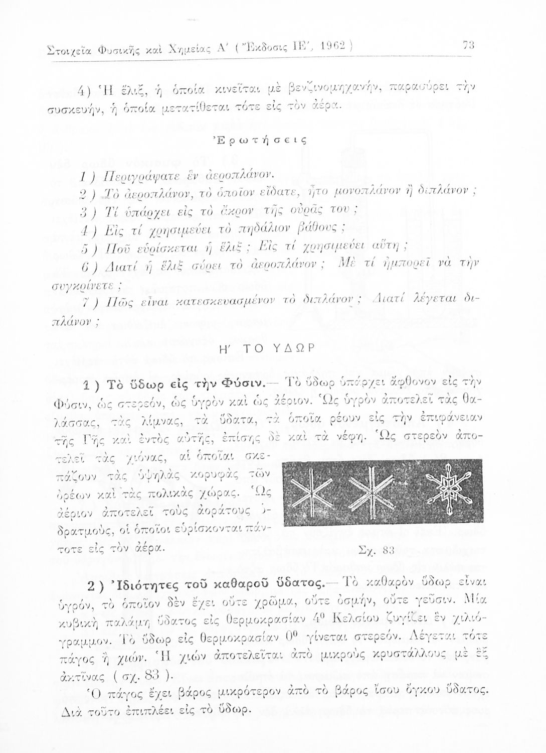 Σχολικό εγχειρίδιο Φυσικής και Χημείας που προσδιορίζει τη μηχανική στερεών σωμάτων, αναφέρει τις ιδιότητες ποικίλων στοιχείων της φύσης (οξυγόνο, υδρογόνο, αέρα, νερό) περιγράφοντας τις χημικές ενώσεις που ...