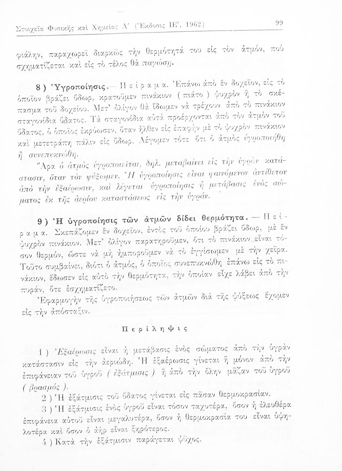 Σχολικό εγχειρίδιο Χημείας και Φυσικής της Α΄ Γυμνασίου. Ασχολείται με τις ιδιότητες των υγρών και των αερίων, την επίδραση που έχει η θερμοκρασία στα στερεά και τα υγρά, τη μετάδοση του ήχου, και τις ...