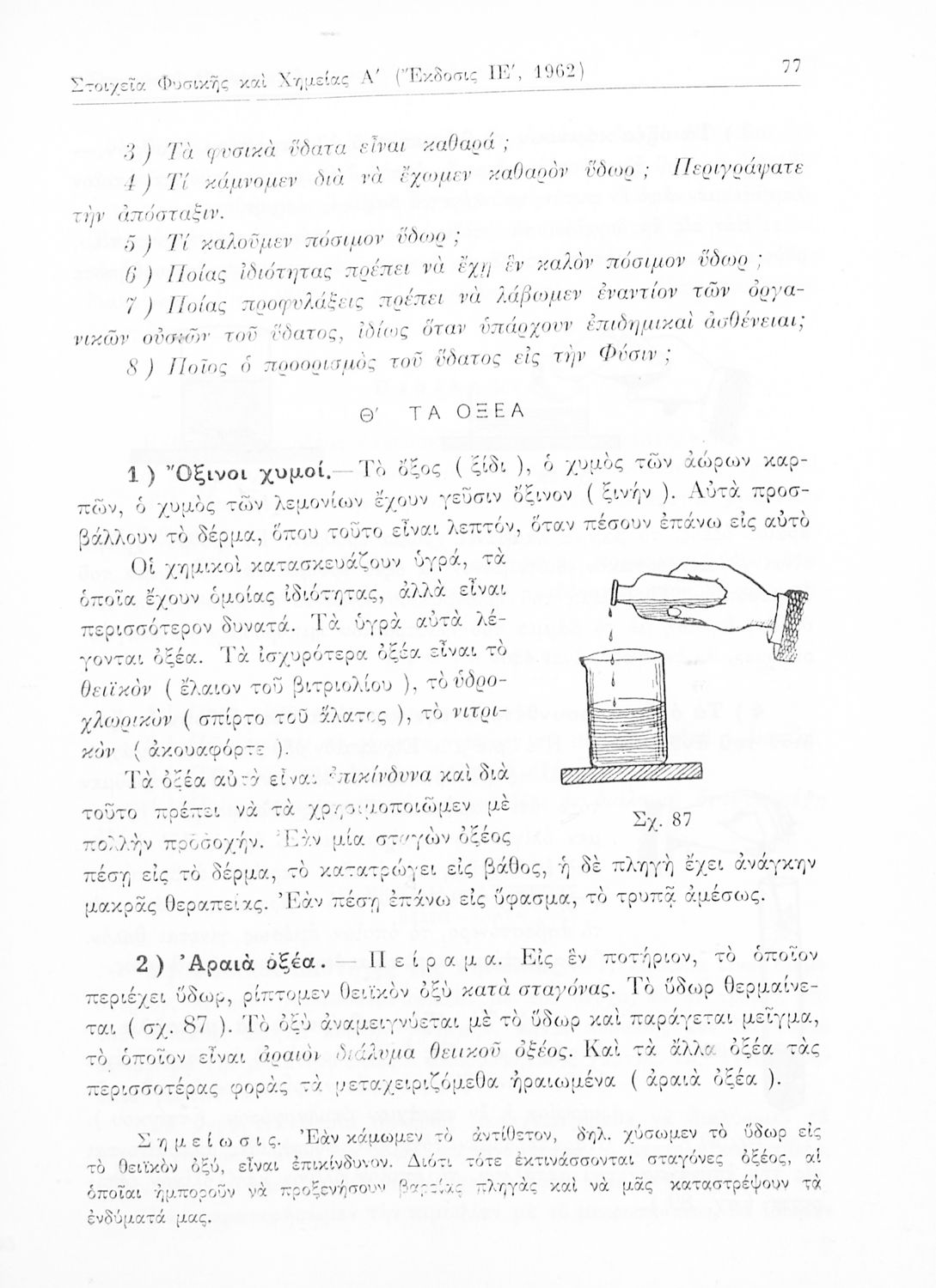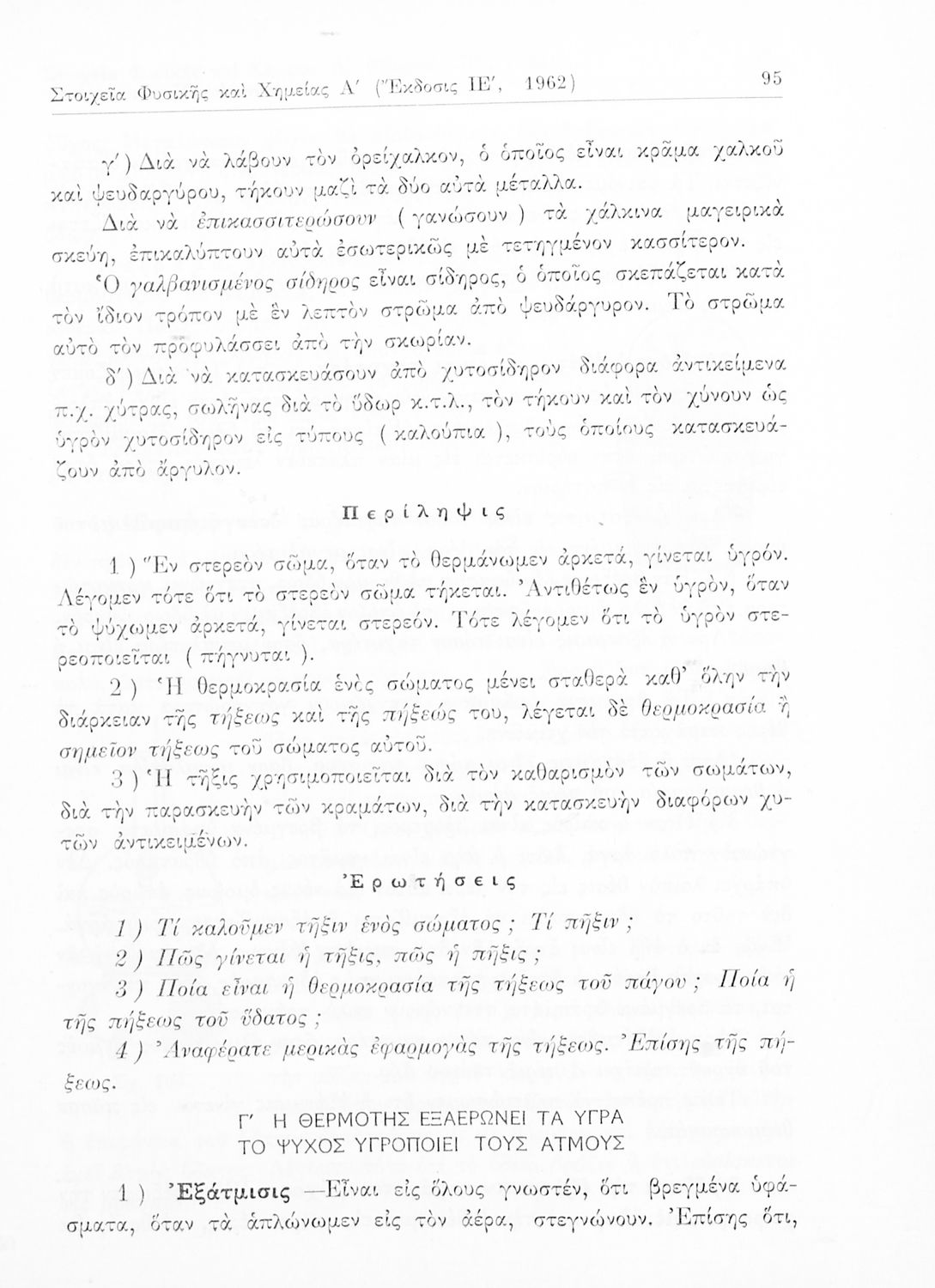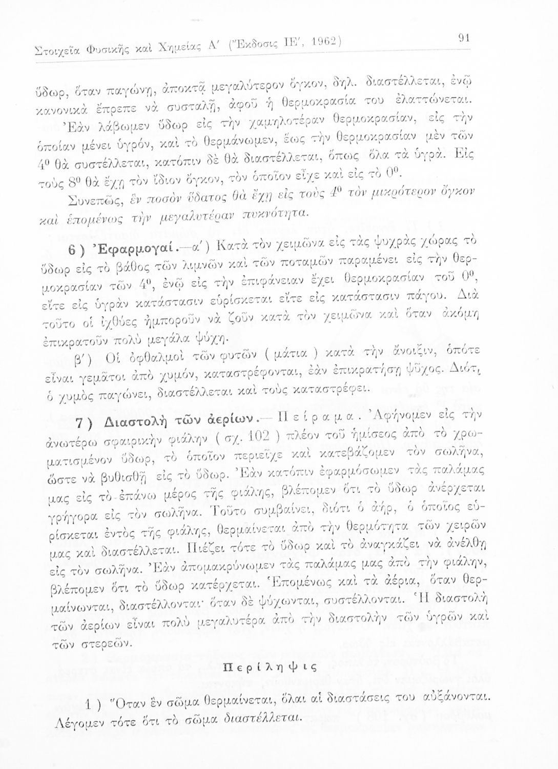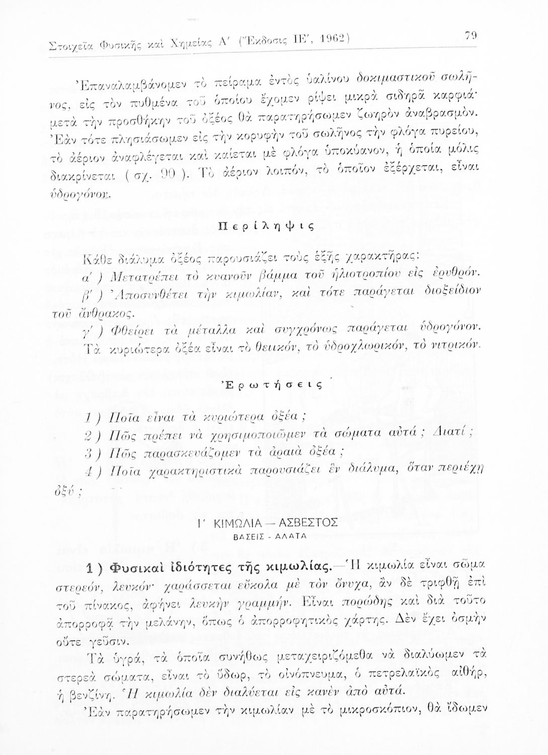 Σχολικό εγχειρίδιο Φυσικής και Χημείας που προσδιορίζει τη μηχανική στερεών σωμάτων, αναφέρει τις ιδιότητες ποικίλων στοιχείων της φύσης (οξυγόνο, υδρογόνο, αέρα, νερό) περιγράφοντας τις χημικές ενώσεις που ...