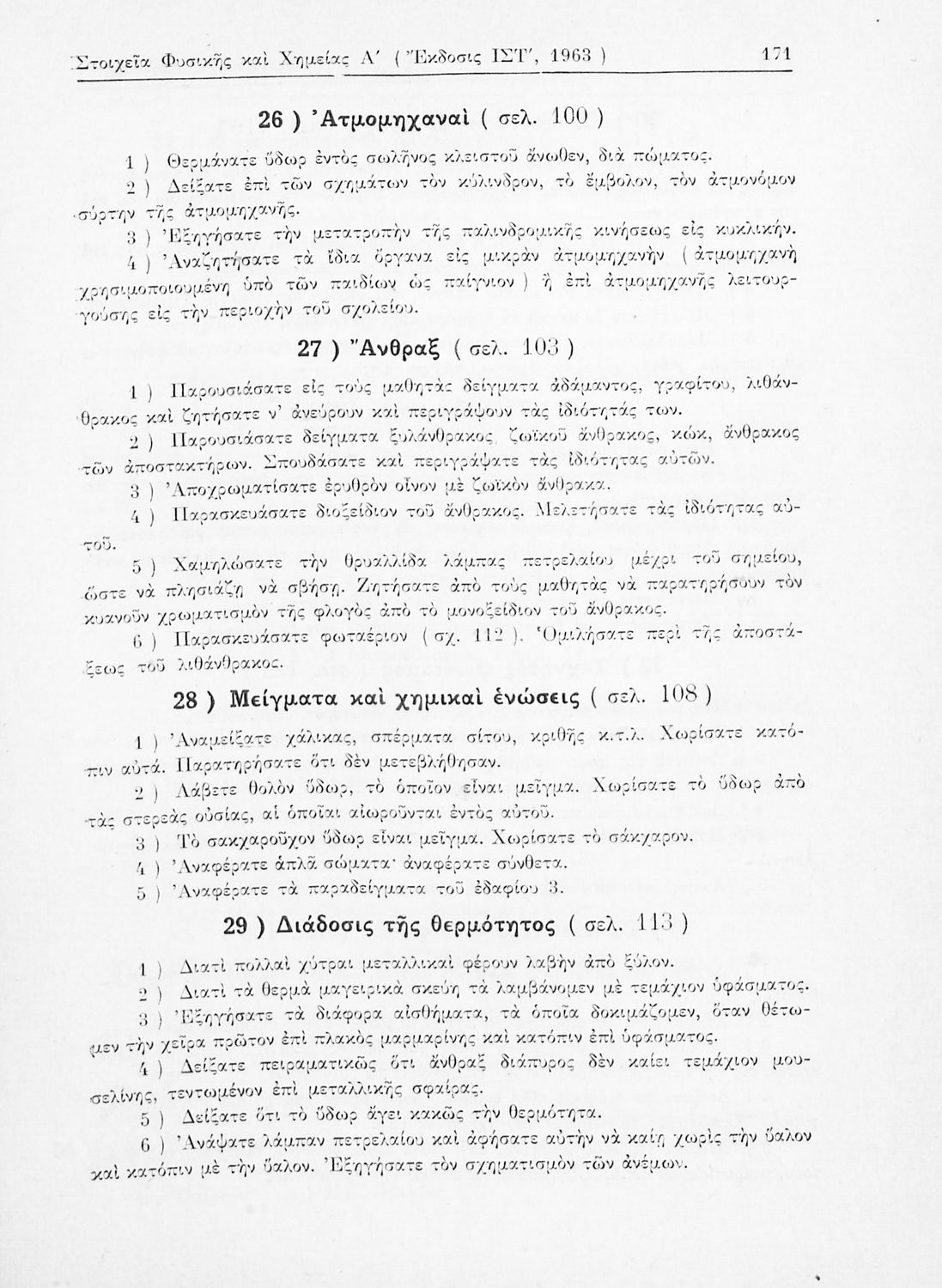 Σχολικό εγχειρίδιο Φυσικής και Χημείας που προσδιορίζει τη μηχανική στερεών σωμάτων, αναφέρει τις ιδιότητες ποικίλων στοιχείων της φύσης (οξυγόνο, υδρογόνο, αέρα, νερό) περιγράφοντας τις χημικές ενώσεις που ...