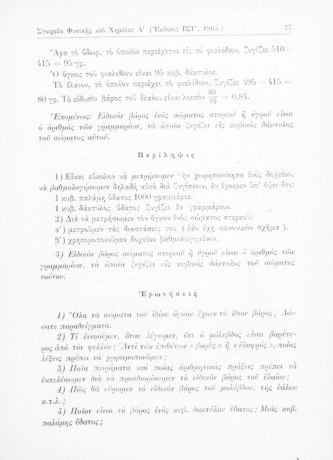 Σχολικό εγχειρίδιο Φυσικής και Χημείας που προσδιορίζει τη μηχανική στερεών σωμάτων, αναφέρει τις ιδιότητες ποικίλων στοιχείων της φύσης (οξυγόνο, υδρογόνο, αέρα, νερό) περιγράφοντας τις χημικές ενώσεις που ...
