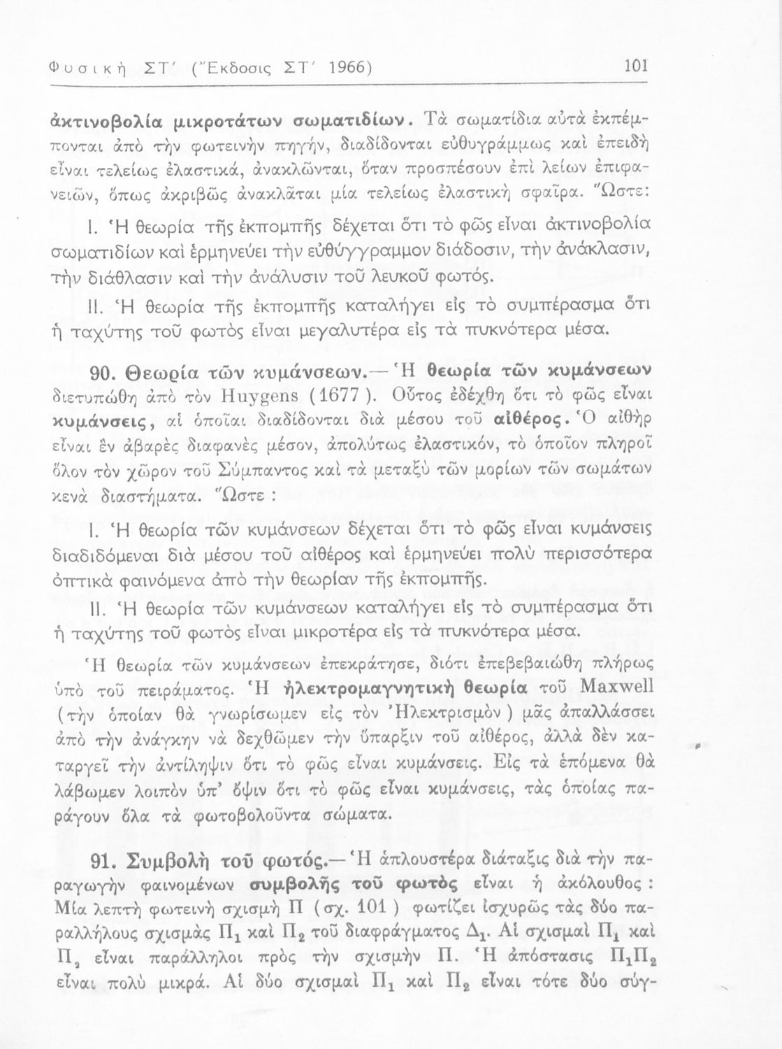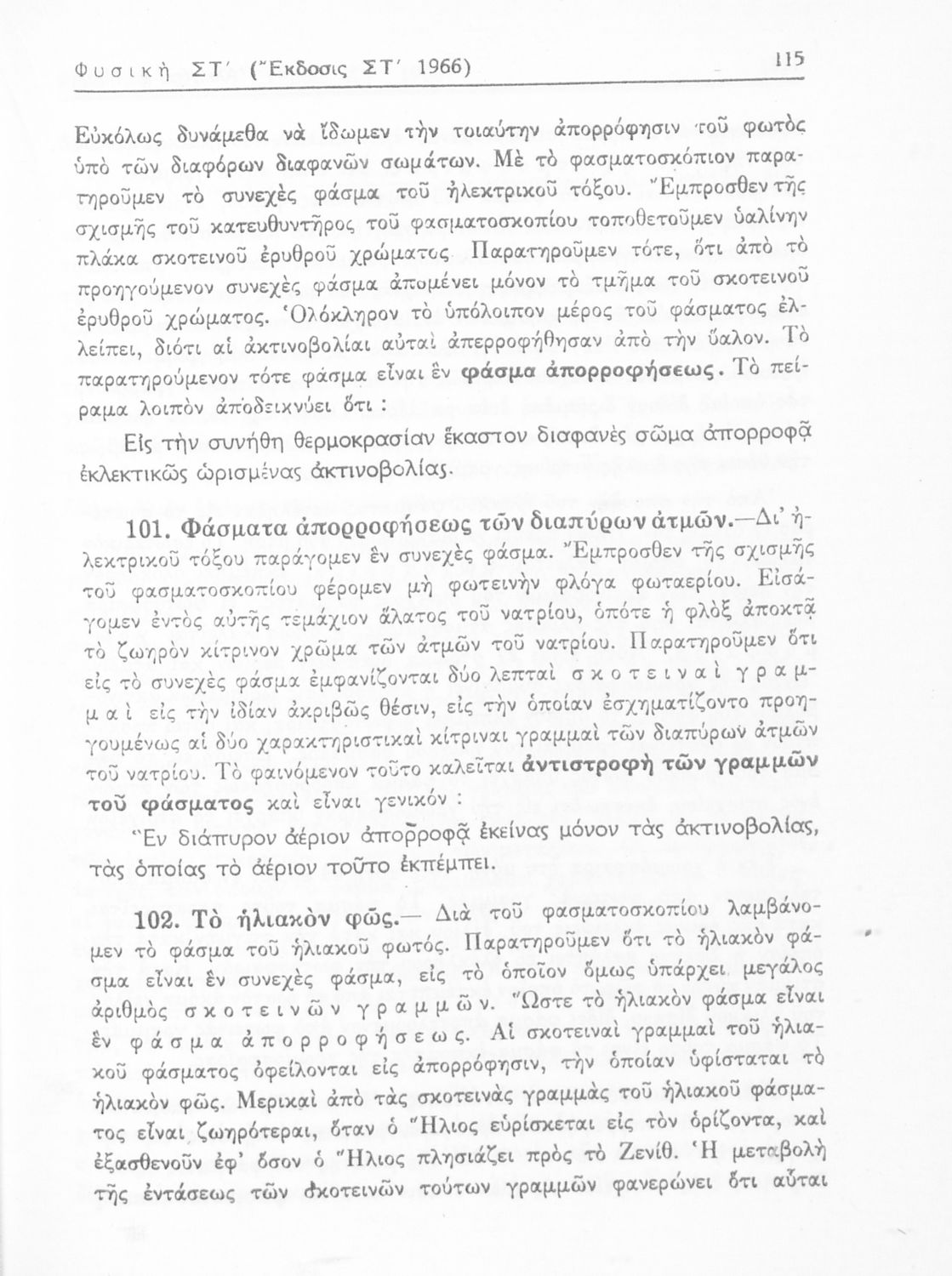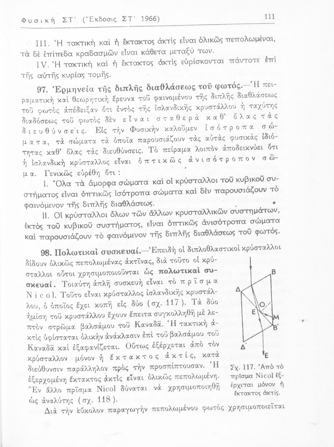 Σχολικό εγχειρίδιο Φυσικής. Το βιβλίο χωρίζεται σε τέσσερα μέρη καθένα από τα οποία περιγράφει συγκεκριμένο πεδίο της φυσικής (οπτική, μαγνητισμός, ηλεκτρισμός κλπ.). Ερμηνεύονται τα φυσικά μεγέθη, δίνονται οι