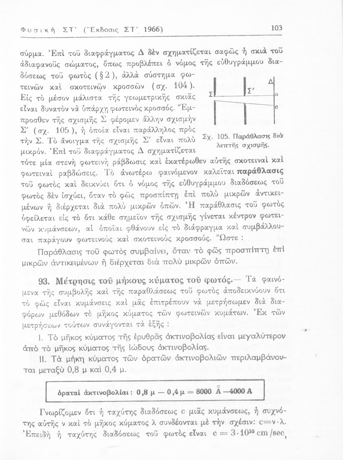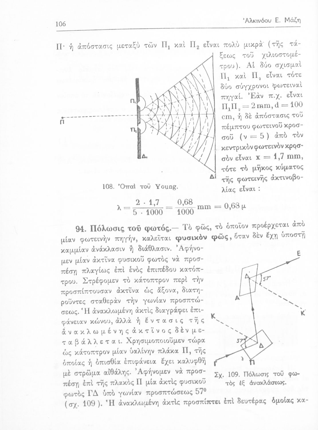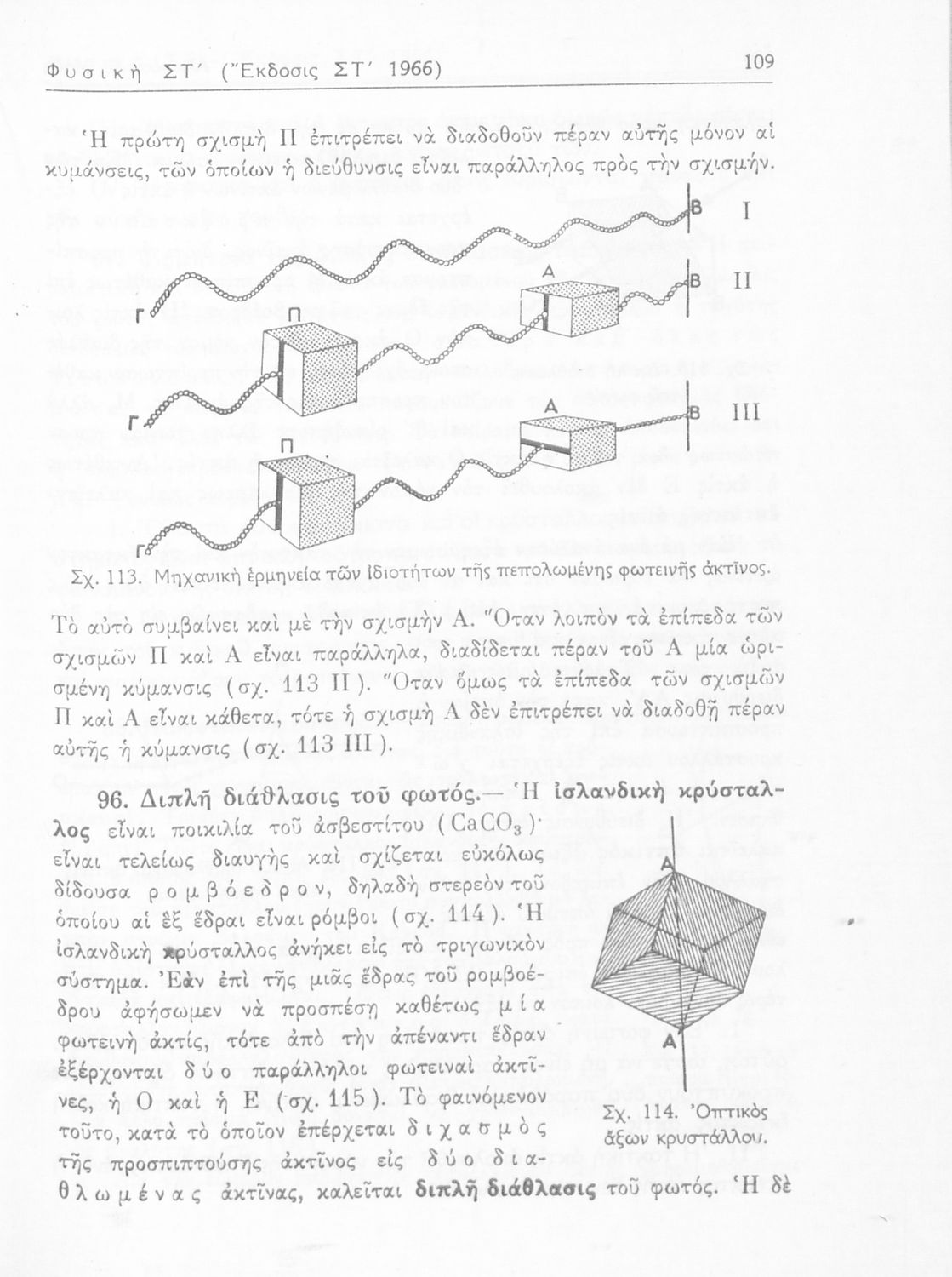 Σχολικό εγχειρίδιο Φυσικής. Το βιβλίο χωρίζεται σε τέσσερα μέρη καθένα από τα οποία περιγράφει συγκεκριμένο πεδίο της φυσικής (οπτική, μαγνητισμός, ηλεκτρισμός κλπ.). Ερμηνεύονται τα φυσικά μεγέθη, δίνονται οι