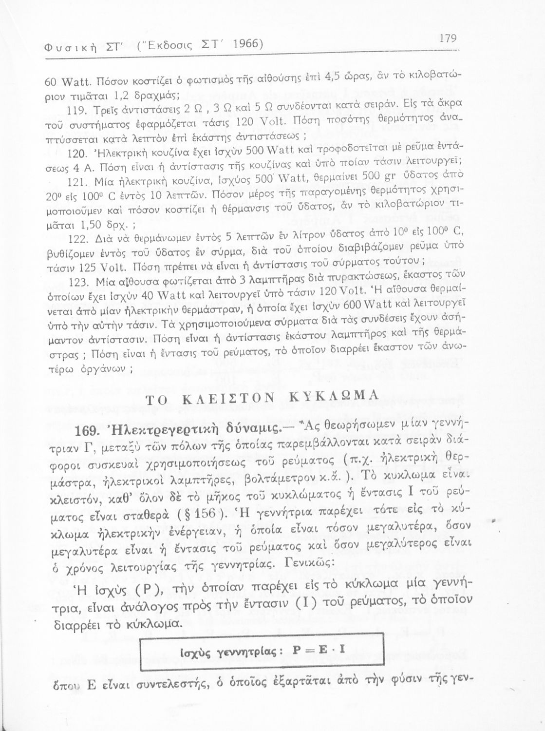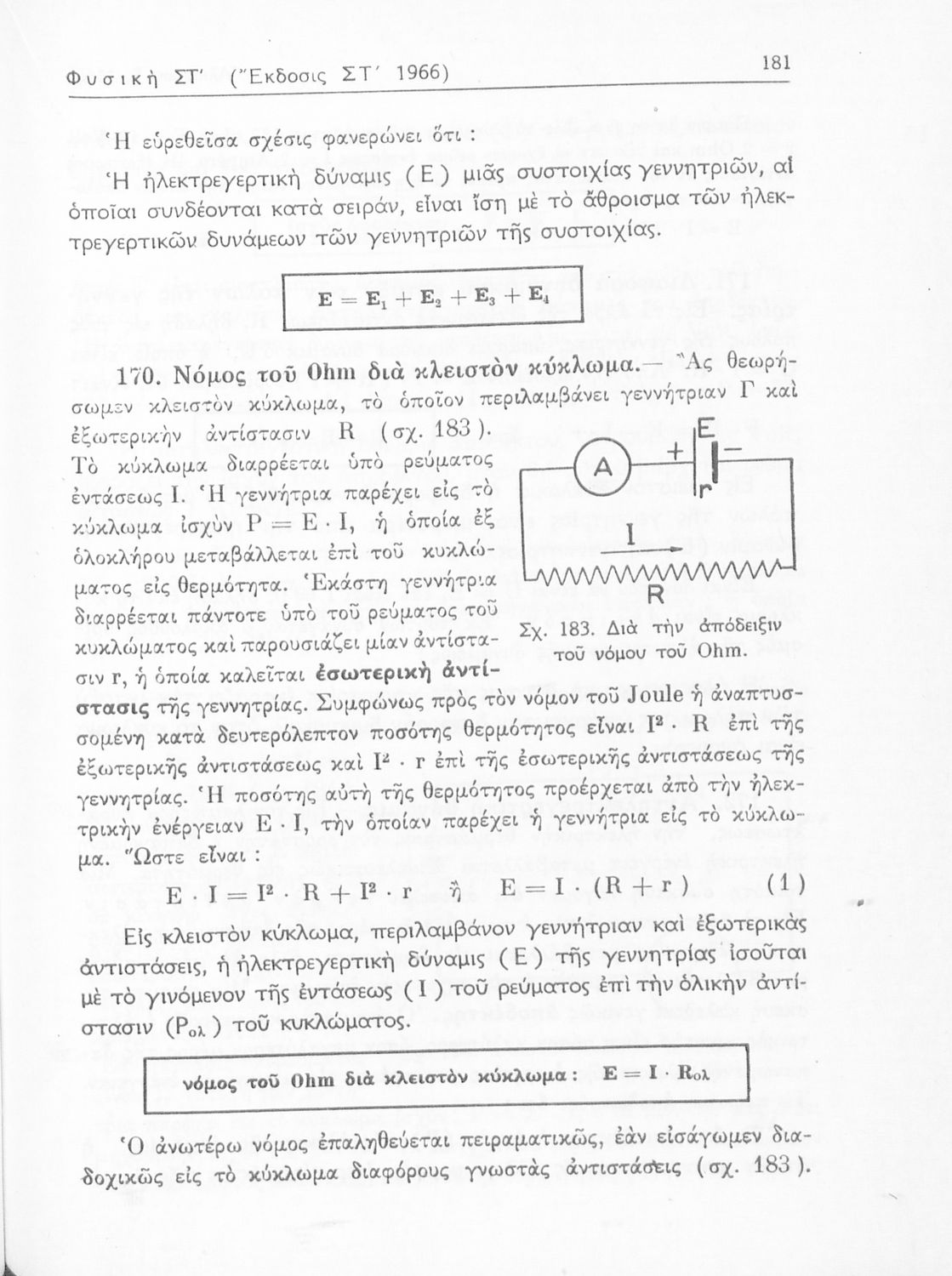 Σχολικό εγχειρίδιο Φυσικής. Το βιβλίο χωρίζεται σε τέσσερα μέρη καθένα από τα οποία περιγράφει συγκεκριμένο πεδίο της φυσικής (οπτική, μαγνητισμός, ηλεκτρισμός κλπ.). Ερμηνεύονται τα φυσικά μεγέθη, δίνονται οι