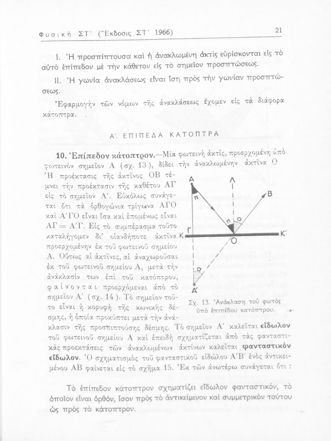 Σχολικό εγχειρίδιο Φυσικής. Το βιβλίο χωρίζεται σε τέσσερα μέρη καθένα από τα οποία περιγράφει συγκεκριμένο πεδίο της φυσικής (οπτική, μαγνητισμός, ηλεκτρισμός κλπ.). Ερμηνεύονται τα φυσικά μεγέθη, δίνονται οι