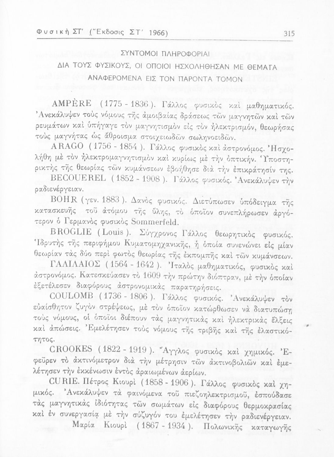 520 ## _aΣχολικό εγχειρίδιο για την ΣΤ΄ Γυμνασίου για το μάθημα της Φυσικής. Το εγχειρίδιο περιλαμβάνει τις θεματικές της οπτικής, του μαγνητισμού, του ηλεκτρισμού και των ιδιοτήτων τους, την ατομική και πυρηνική φυσική.