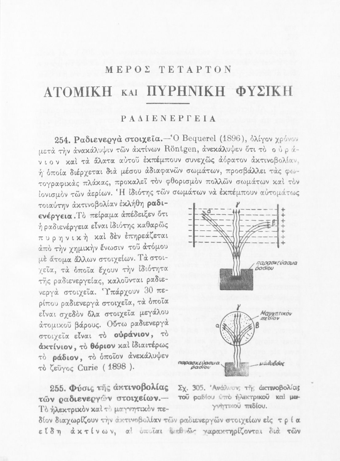 Βαθμίδα εκπαίδευσης: Δευτεροβάθμια Τάξη: Ε' Γυμνασίου / ΣΤ' Γυμνασίου Μάθημα: Φυσική Γλώσσα: Καθαρεύουσα Παρουσίαση περιεχομένου: Σχολικό εγχειρίδιο Φυσικής Πειραματικής Ε΄ και ΣΤ΄ Γυμνασίου που εστιάζει στα φυσικά φαινόμενα της οπτικής, του μαγνητισμού, του ηλεκτρισμού, και της πυρηνικής φυσικής. Φέρει το σύμβολο της δικτατορίας. |