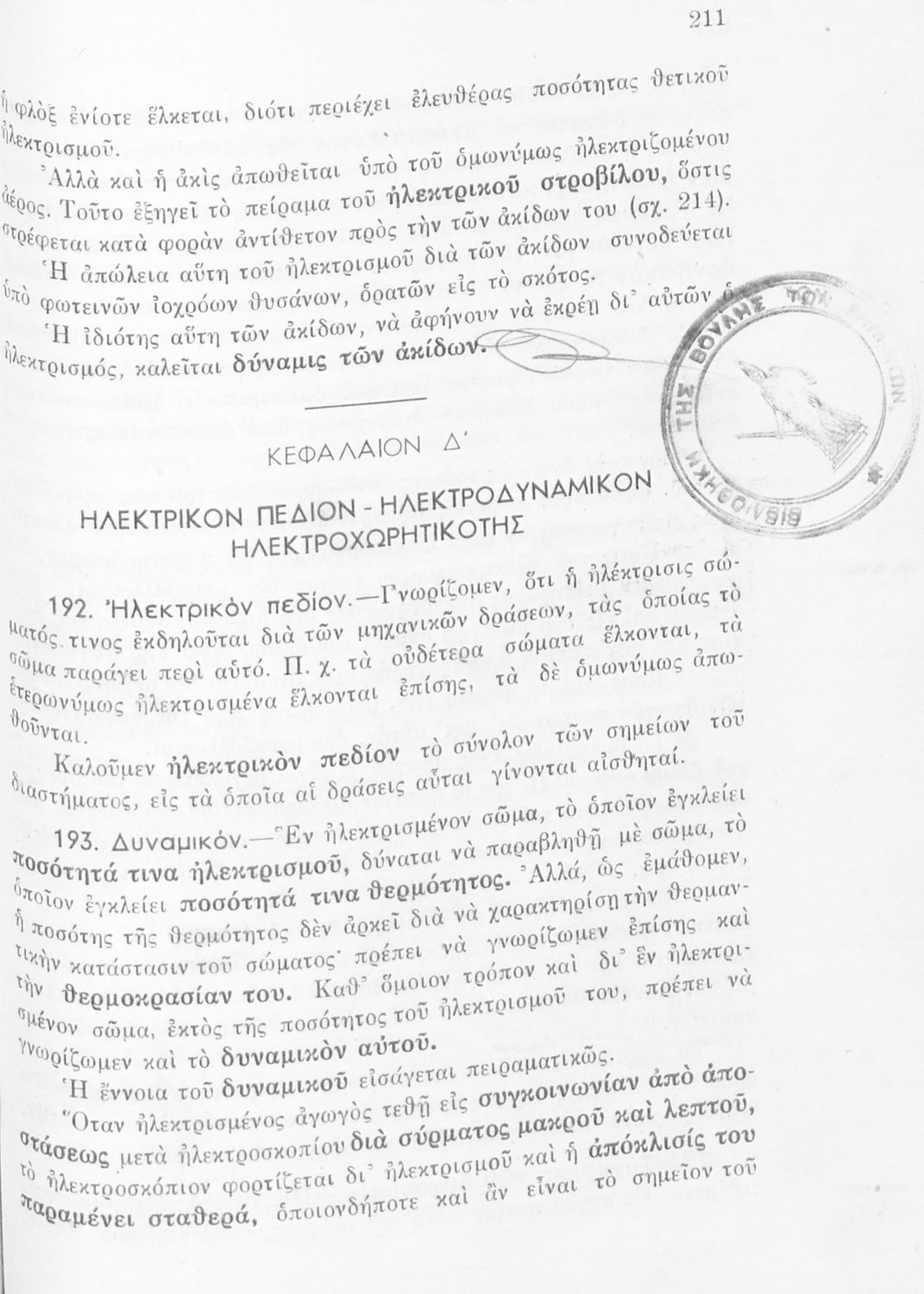 Βαθμίδα εκπαίδευσης: Δευτεροβάθμια Τάξη: ΣΤ' Γυμνασίου Μάθημα: Φυσική Γλώσσα: Καθαρεύουσα Παρουσίαση περιεχομένου: Σχολικό εγχειρίδιο της ΣΤ΄ Γυμνασίου για το μάθημα της Φυσικής. Το εγχειρίδιο περιλαμβάνει τα βασικά στοιχεία της οπτικής (ταχύτητα του φωτός, φωτομετρία, ανάκλαση του φωτός, κάτοπτρα, όραση, φωτεινά κύματα), την θεματική του ηλεκτρισμού (ηλεκτρική ενέργεια, αντιστάσεις, μαγνητικό πεδίο, επαγωγή, εναλλασσόμενα ρεύματα) και τέλος, το κεφάλαιο της ηλεκτροστατικής (ηλεκτροδυναμική, πυκνότητα, ηλεκτρικό πεδίο, αγωγοί, μονωτές). |