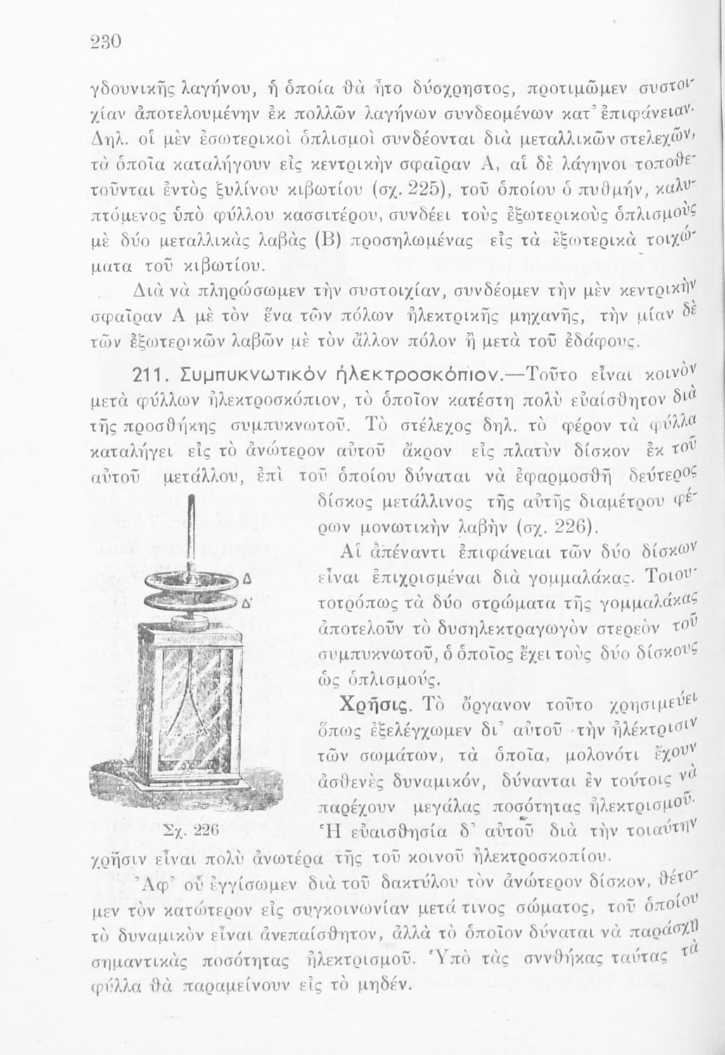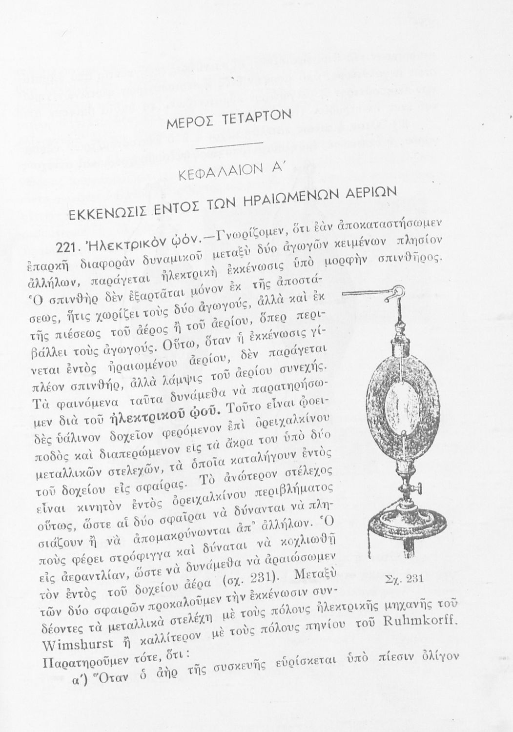 Βαθμίδα εκπαίδευσης: Δευτεροβάθμια Τάξη: ΣΤ' Γυμνασίου Μάθημα: Φυσική Γλώσσα: Καθαρεύουσα Παρουσίαση περιεχομένου: Σχολικό εγχειρίδιο της ΣΤ΄ Γυμνασίου για το μάθημα της Φυσικής. Το εγχειρίδιο περιλαμβάνει τα βασικά στοιχεία της οπτικής (ταχύτητα του φωτός, φωτομετρία, ανάκλαση του φωτός, κάτοπτρα, όραση, φωτεινά κύματα), την θεματική του ηλεκτρισμού (ηλεκτρική ενέργεια, αντιστάσεις, μαγνητικό πεδίο, επαγωγή, εναλλασσόμενα ρεύματα) και τέλος, το κεφάλαιο της ηλεκτροστατικής (ηλεκτροδυναμική, πυκνότητα, ηλεκτρικό πεδίο, αγωγοί, μονωτές). |