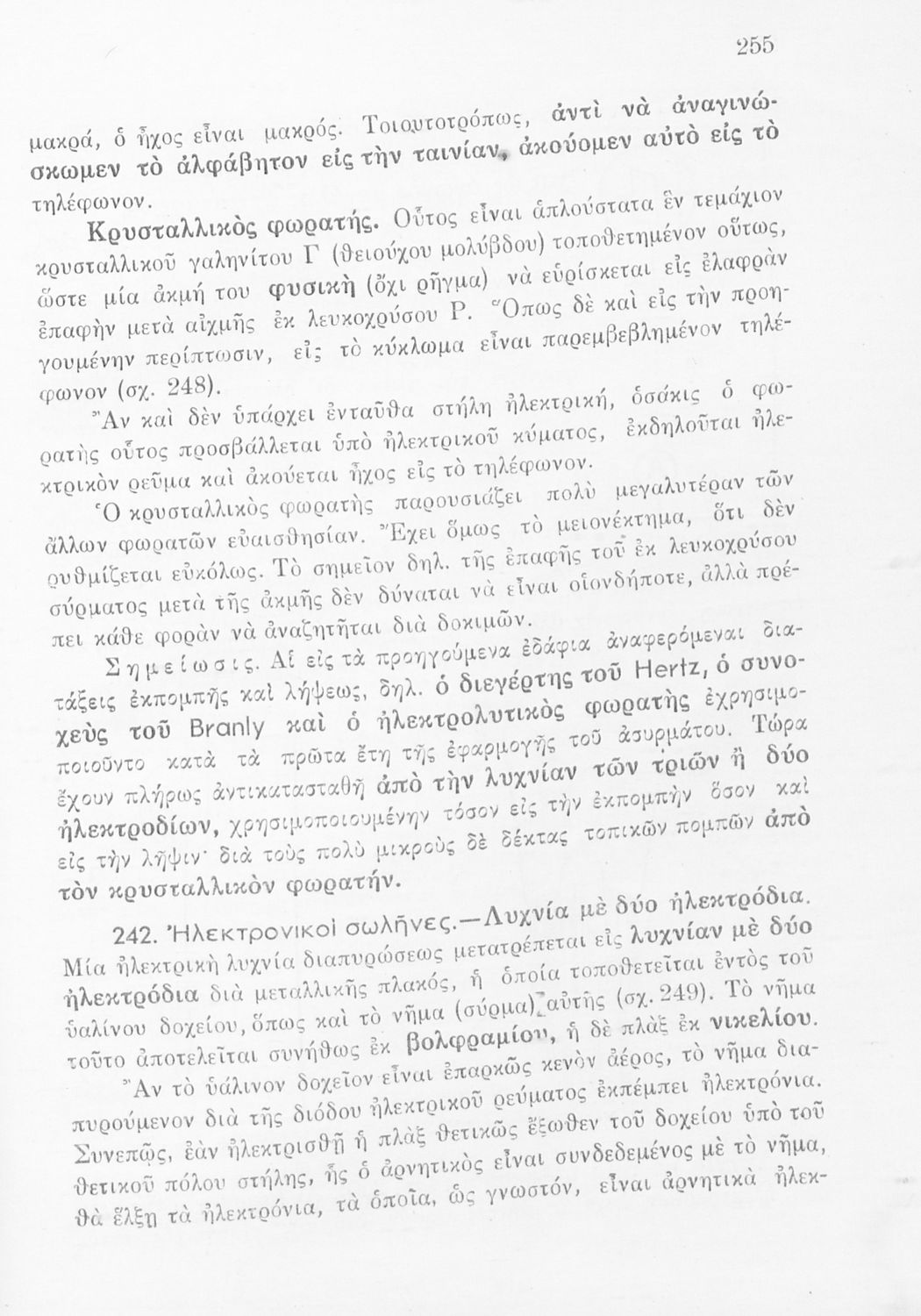 Βαθμίδα εκπαίδευσης: Δευτεροβάθμια Τάξη: ΣΤ' Γυμνασίου Μάθημα: Φυσική Γλώσσα: Καθαρεύουσα Παρουσίαση περιεχομένου: Σχολικό εγχειρίδιο της ΣΤ΄ Γυμνασίου για το μάθημα της Φυσικής. Το εγχειρίδιο περιλαμβάνει τα βασικά στοιχεία της οπτικής (ταχύτητα του φωτός, φωτομετρία, ανάκλαση του φωτός, κάτοπτρα, όραση, φωτεινά κύματα), την θεματική του ηλεκτρισμού (ηλεκτρική ενέργεια, αντιστάσεις, μαγνητικό πεδίο, επαγωγή, εναλλασσόμενα ρεύματα) και τέλος, το κεφάλαιο της ηλεκτροστατικής (ηλεκτροδυναμική, πυκνότητα, ηλεκτρικό πεδίο, αγωγοί, μονωτές). |