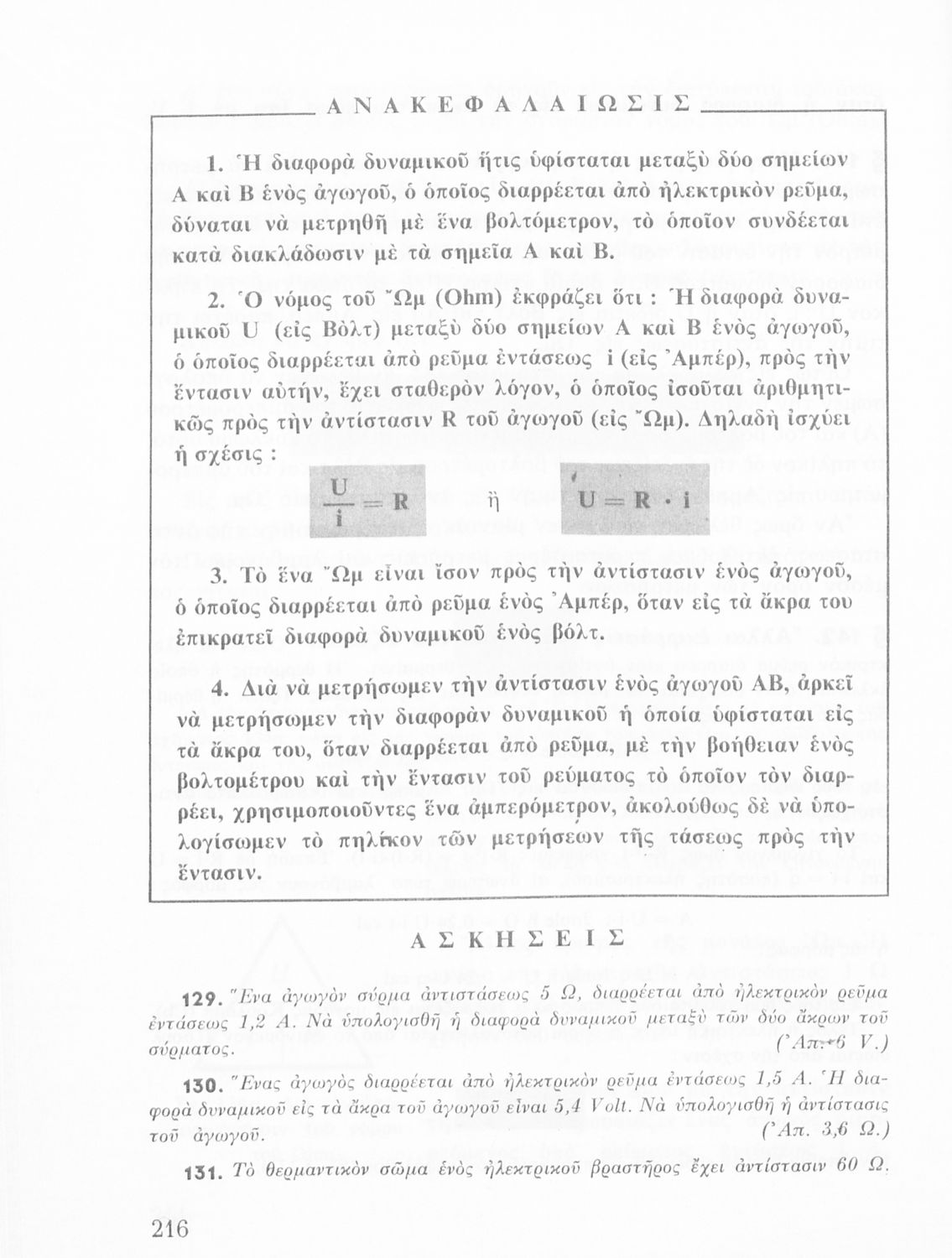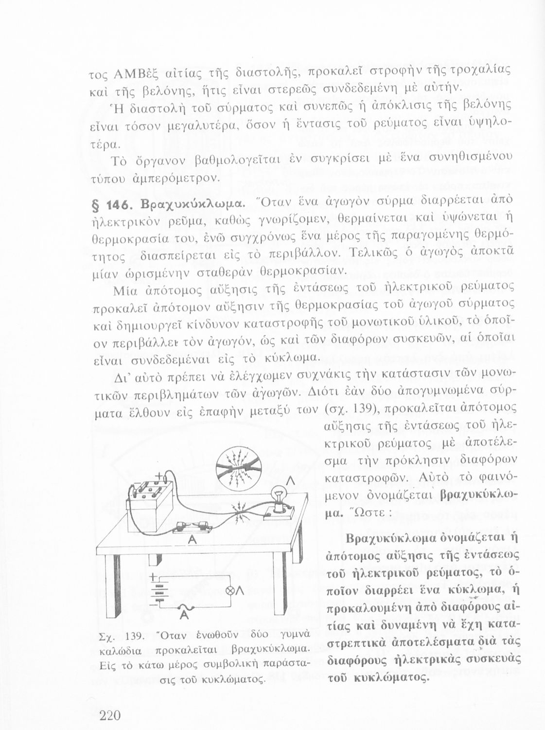Βαθμίδα εκπαίδευσης: Δευτεροβάθμια Τάξη: Γ' Γυμνασίου Μάθημα: Φυσική Γλώσσα: Απλή καθαρεύουσα Παρουσίαση περιεχομένου: Σχολικό εγχειρίδιο Φυσικής της Γ' Γυμνασίου. Το βιβλίο προσφέρει μια γενική εικόνα των διαφόρων πεδίων της επιστήμης της Φυσικής. Αρχίζοντας με ζητήματα της μηχανικής, τα πρώτα τέσσερα κεφάλαια ασχολούνται με θέματα κίνησης των σωμάτων, το ρόλο της ενέργειας και των δυνάμεων οι οποίες αναπτύσσονται κατά τη διάρκεια της κίνησης και κρούσης των αντικειμένων. Στη συνέχεια περνάει στη θεματική του ηλεκτρισμού, των κυκλωμάτων, του εναλλασσόμενου ρεύματος και της ηλεκτρομαγνητικής θεωρίας. Στην τρίτη ενότητα, το βιβλίο ασχολείται με το ρόλο της θερμότητας και τις μεταβολές που επιφέρει στις ιδιότητες των αερίων. Στην τέταρτη ενότητα το βιβλίο παρουσιάζει ζητήματα ταλαντώσεων και μετάδοσης κυμάτων. Το βιβλίο τελειώνει παρουσιάζοντας την ειδική θεωρία της Σχετικότητας και τον μικρόκοσμο της Κβαντικής Φυσικής |